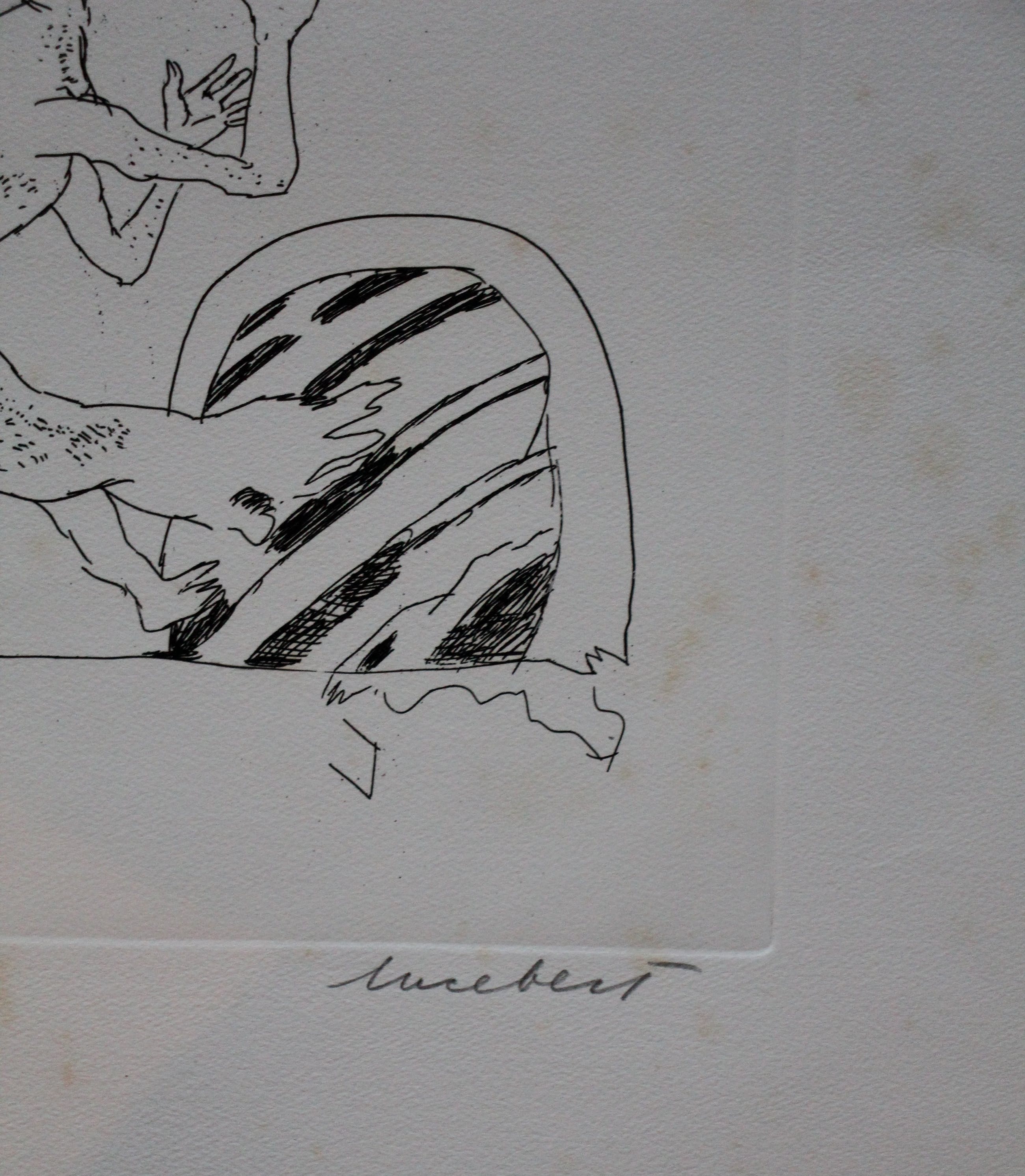 Ets van Lucebert. Nummer: 61/190. Afmetingen werk: H50 x b65cm. Afmetingen voorstelling: H40.5 x b49cm. Het werk is lrechts onderin gesigneerd, met potlood, door de kunstenaar. De authenticiteit van dit werk wordt volledig gegarandeerd. Een certificaat van echtheid kan, op aanvraag, worden gemaild.