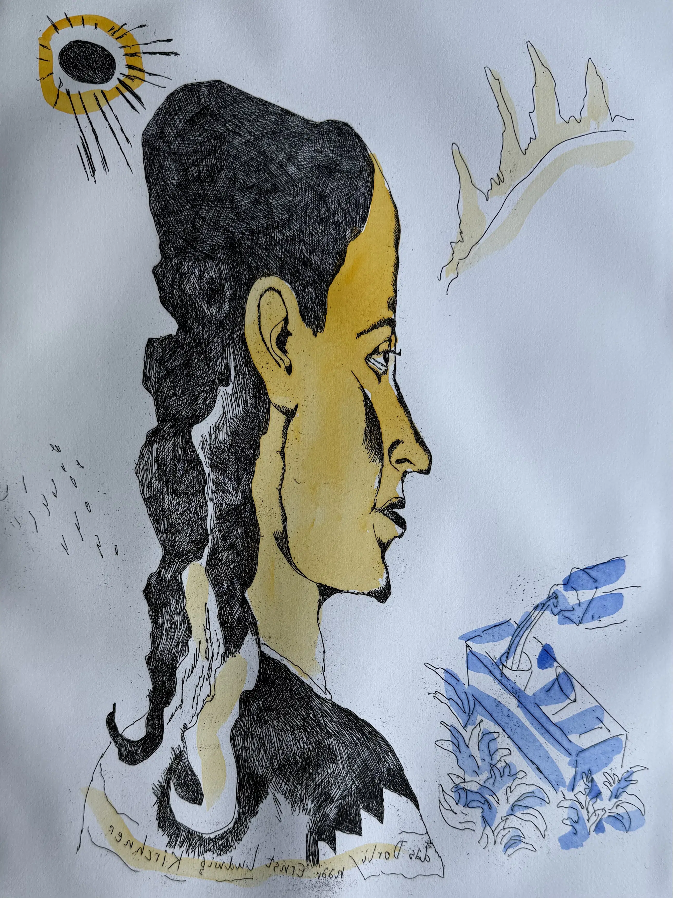 Lucebert - Ets met aquarel | 'Das Dorli, naar Ernst Ludwig Kirchner' | 1993