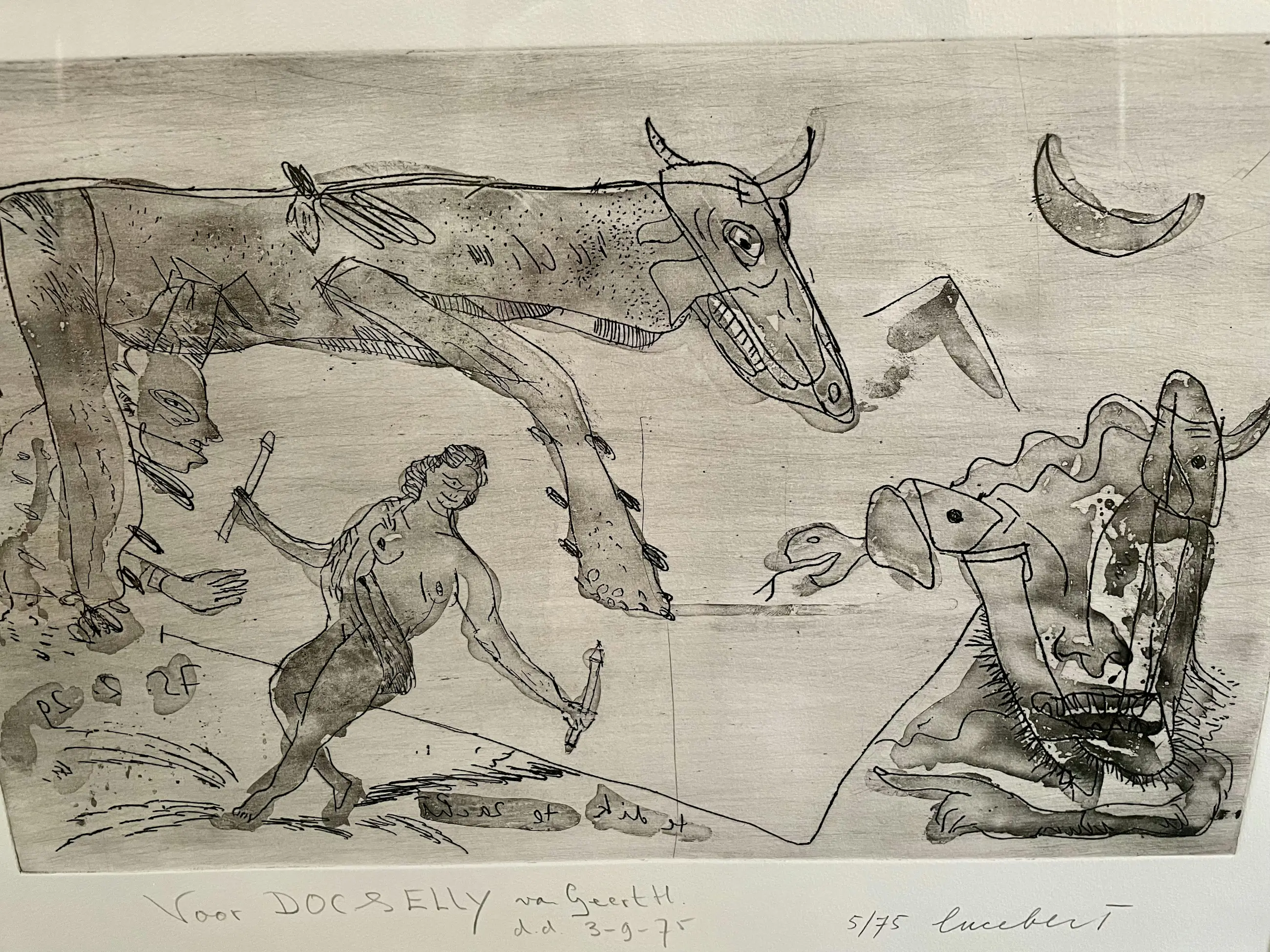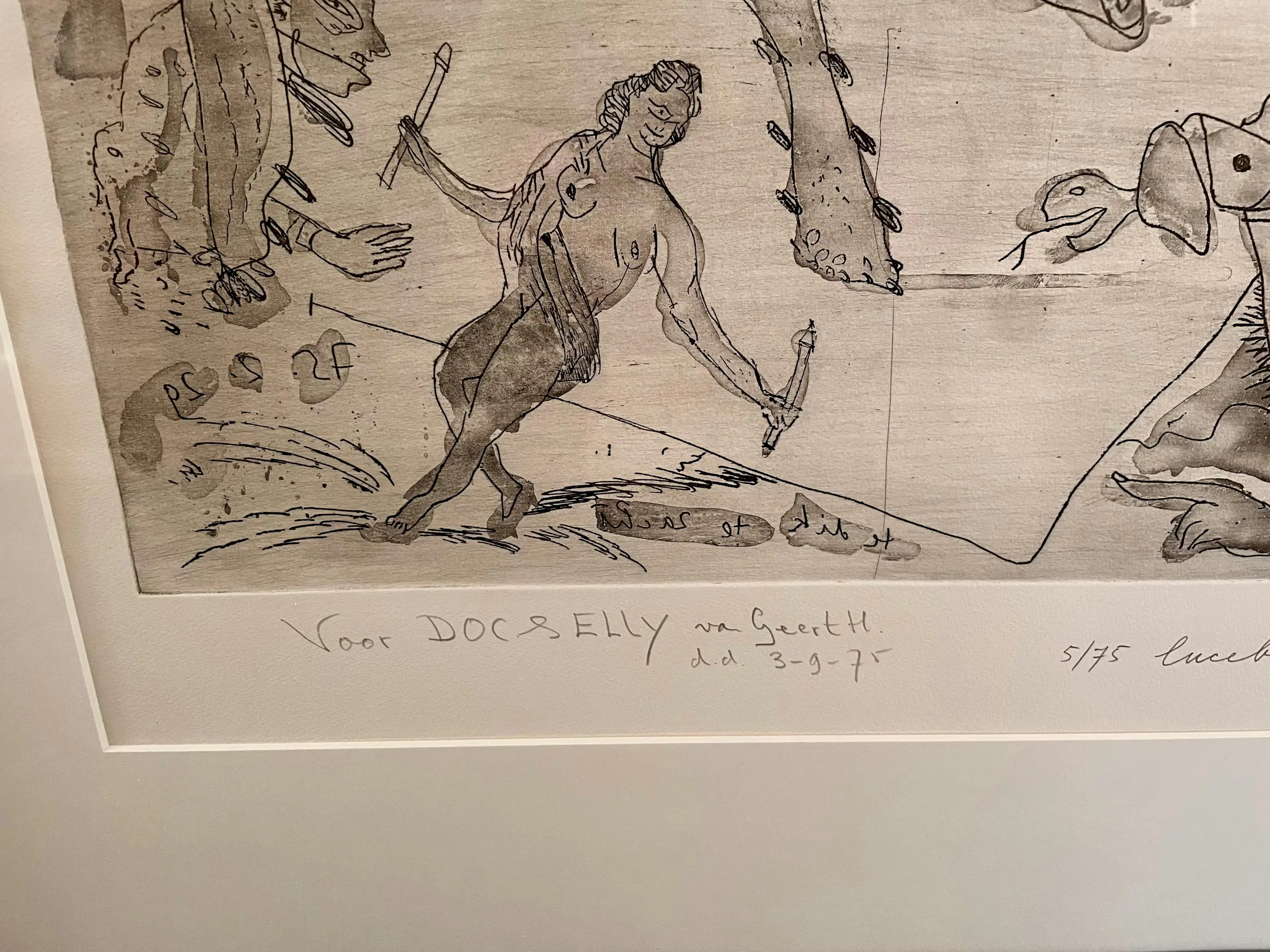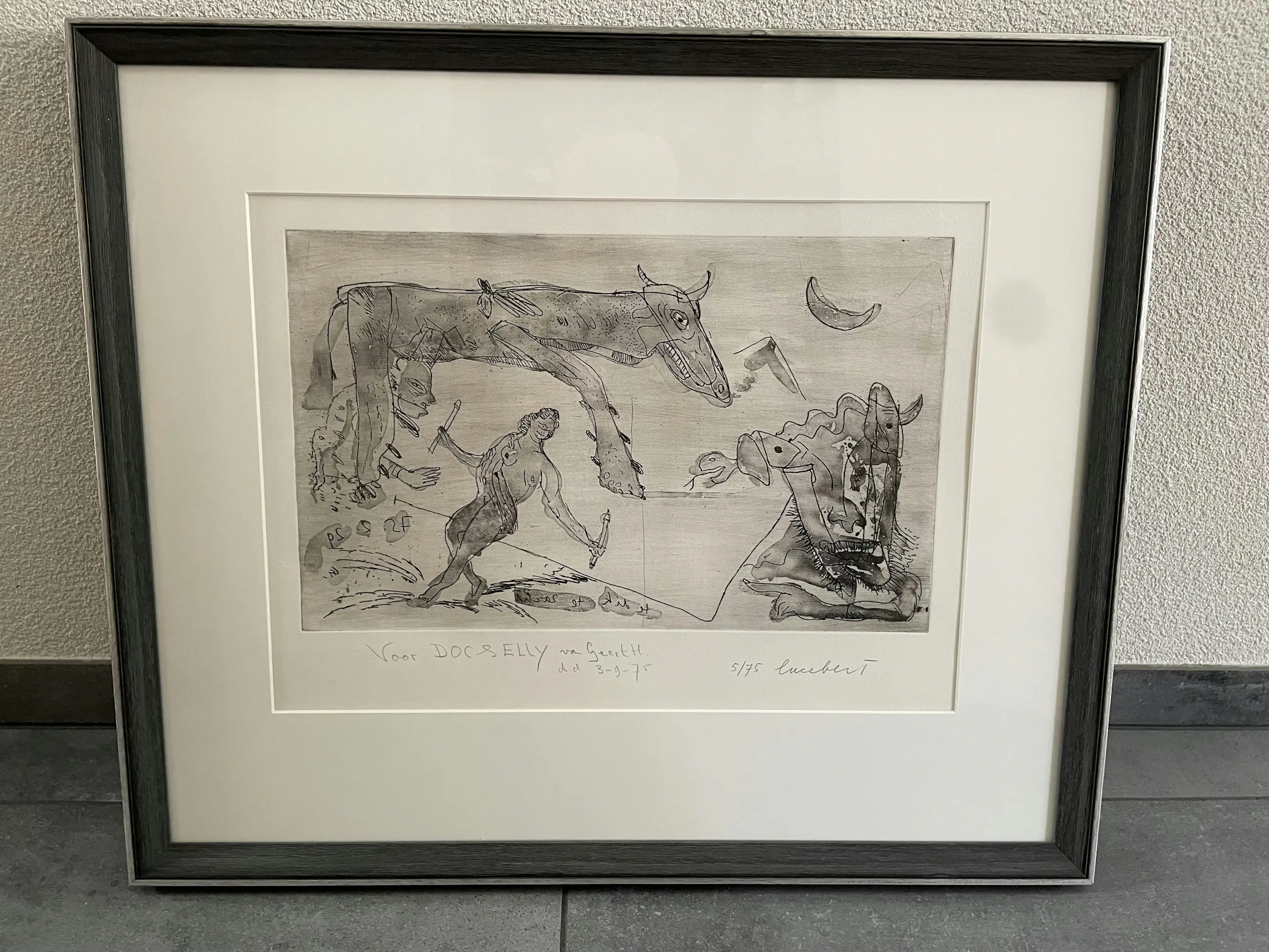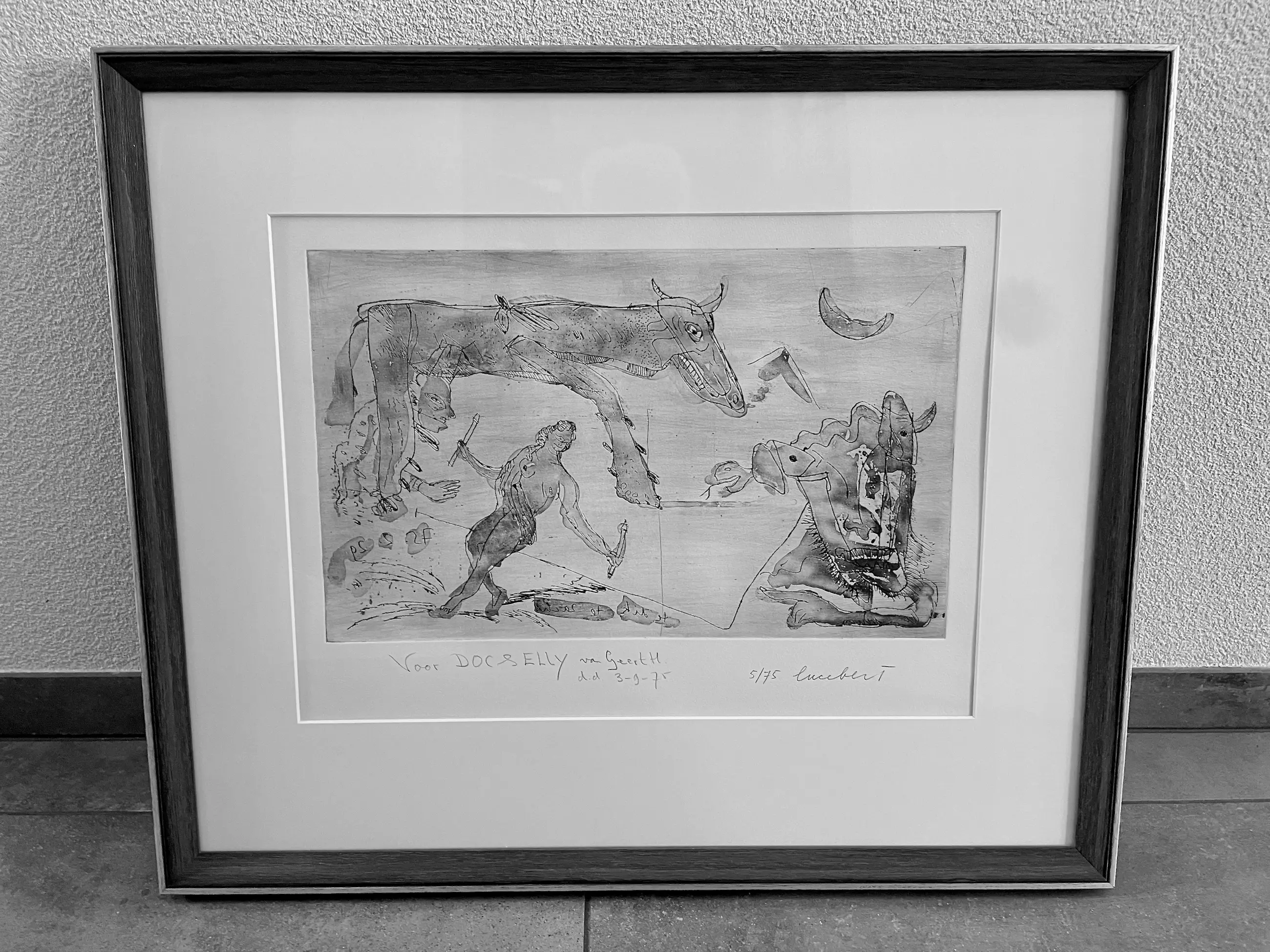Prachtig werk van Lucebert - Dit keer een fraaie ets. De ets is geheel nieuw ingelijst door Lijstenmakerij Daleman uit Leiden. Feitelijk is het werk dus in nieuwstaat.
