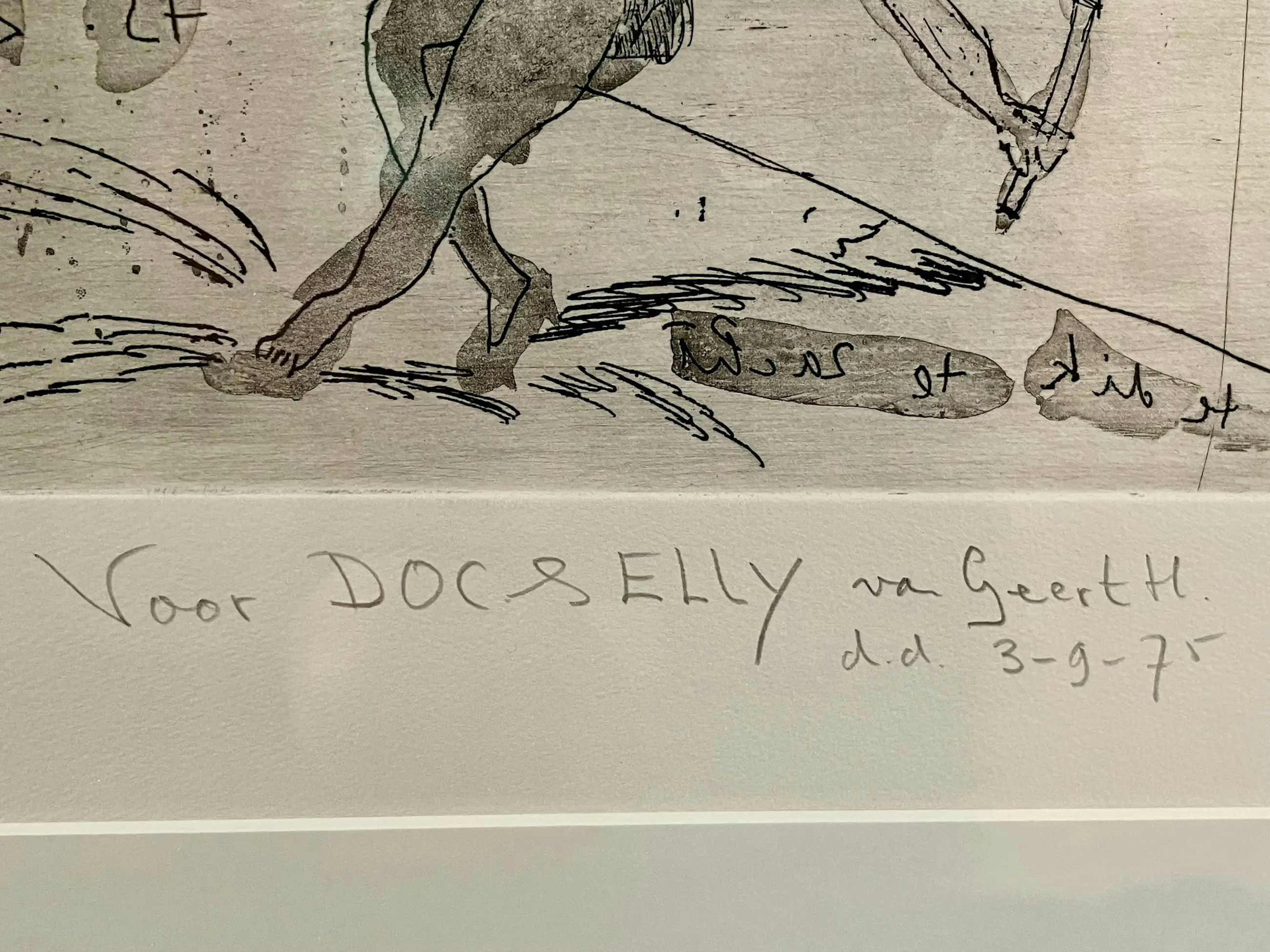 Jaartal: 1975 Techniek: Ets Drager: Papier Stijl: Abstract Onderwerp: Figuren Ingelijst: Ingelijst Afmetingen: 25 x 41 cm (h x b) Incl. lijst: 57 x 73 cm (h x b) Gesigneerd: Handgesigneerd Oplage: 5/75