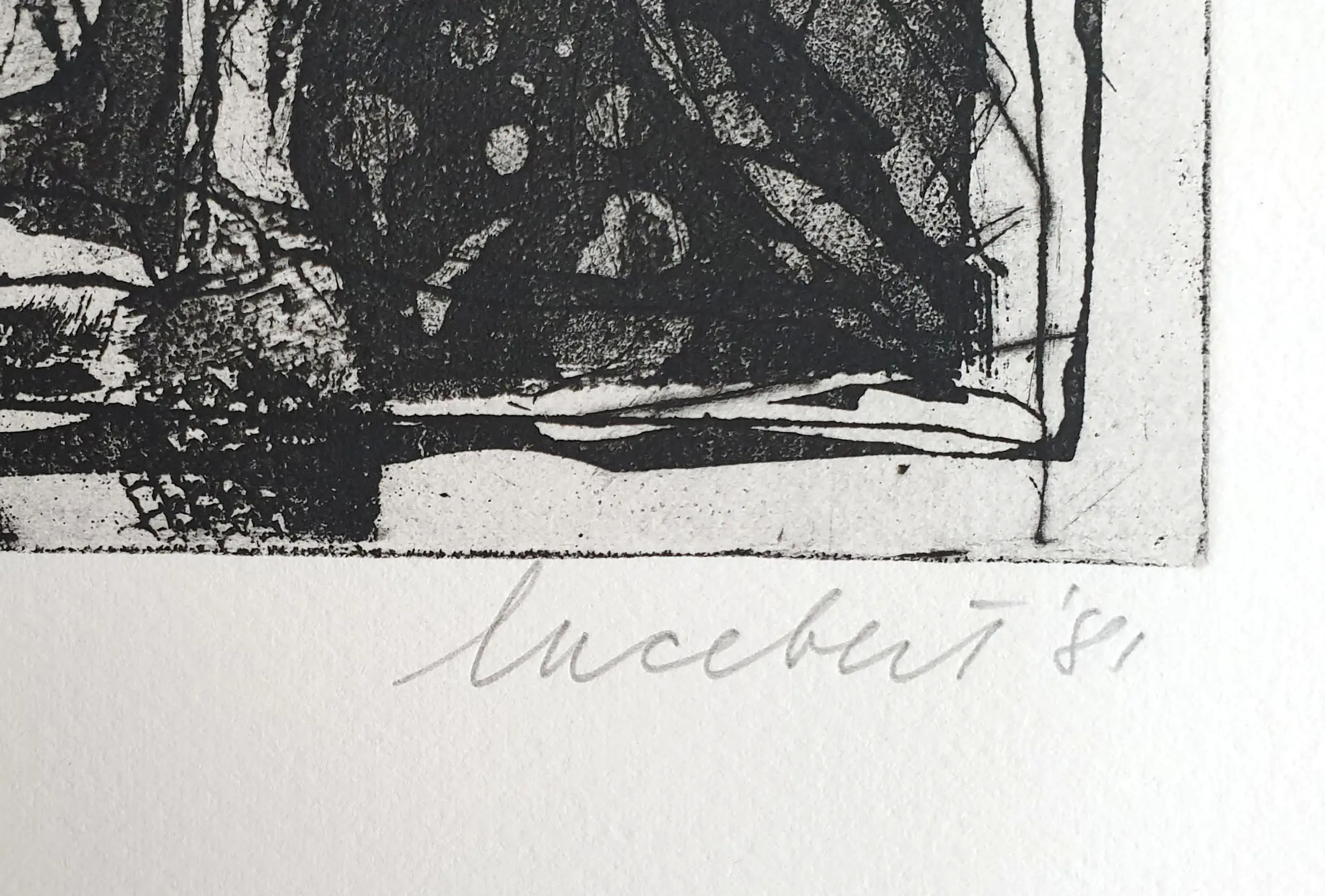 Ets van Lucebert met de titel: 'Paradijs' uit 1981. Het werk is rechtsonder met de hand gesigneerd door de kunstenaar.