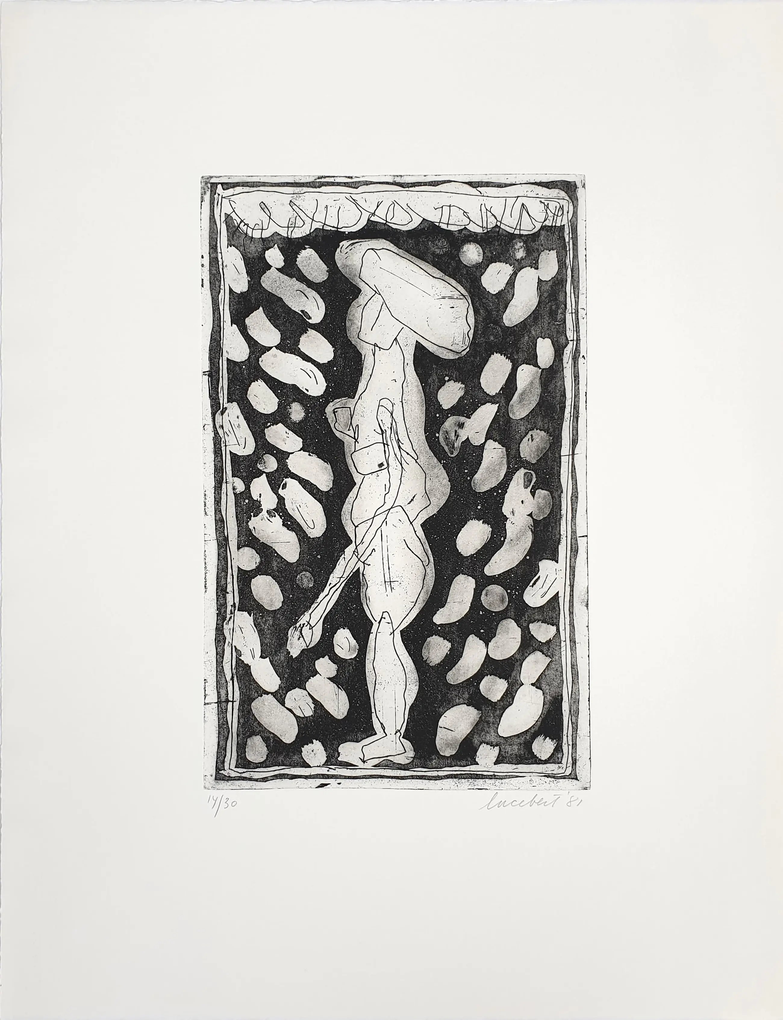 Ets van Lucebert met de titel: 'Paradijs' uit 1981. Het werk is rechtsonder met de hand gesigneerd door de kunstenaar.