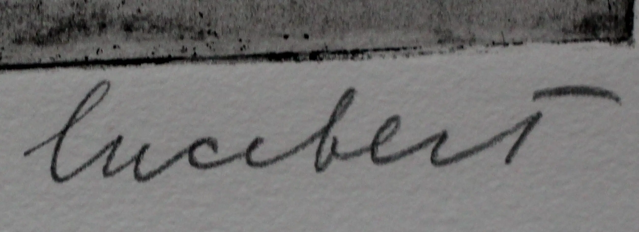 Wat plakresten, bovenaan op de witte rand, van een vorige inlijsting. Goed ingelijst valt dit in de lijst/onder de passe-partout.