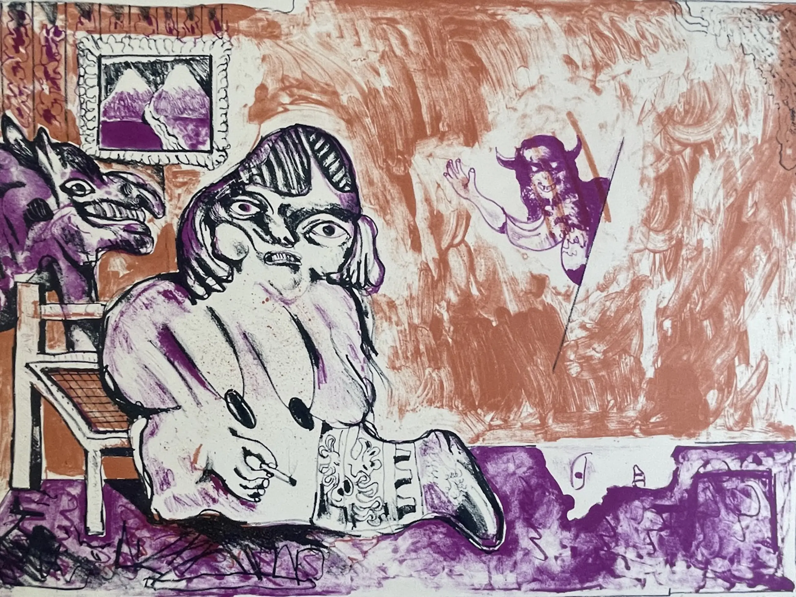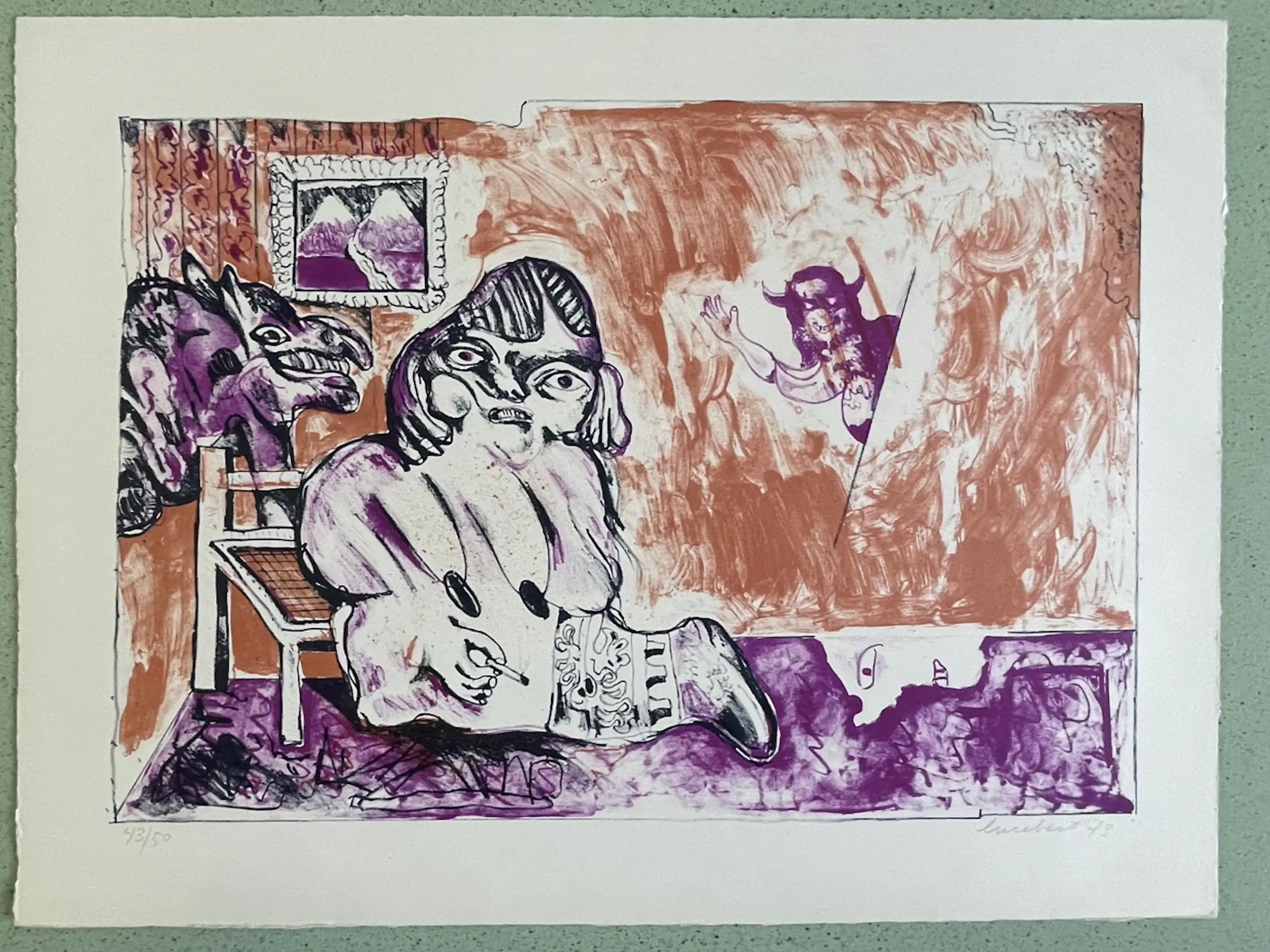 Litho van Lucebert. Titel: Faust en Gretchen. Jaar: 1973 Nummer 43 van 50
