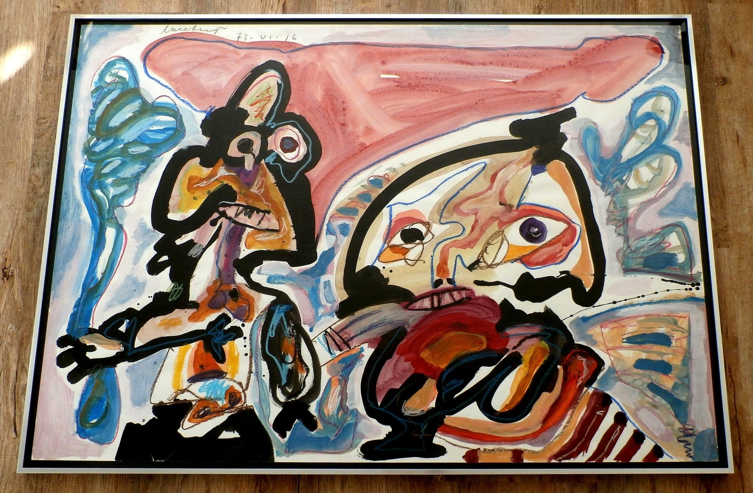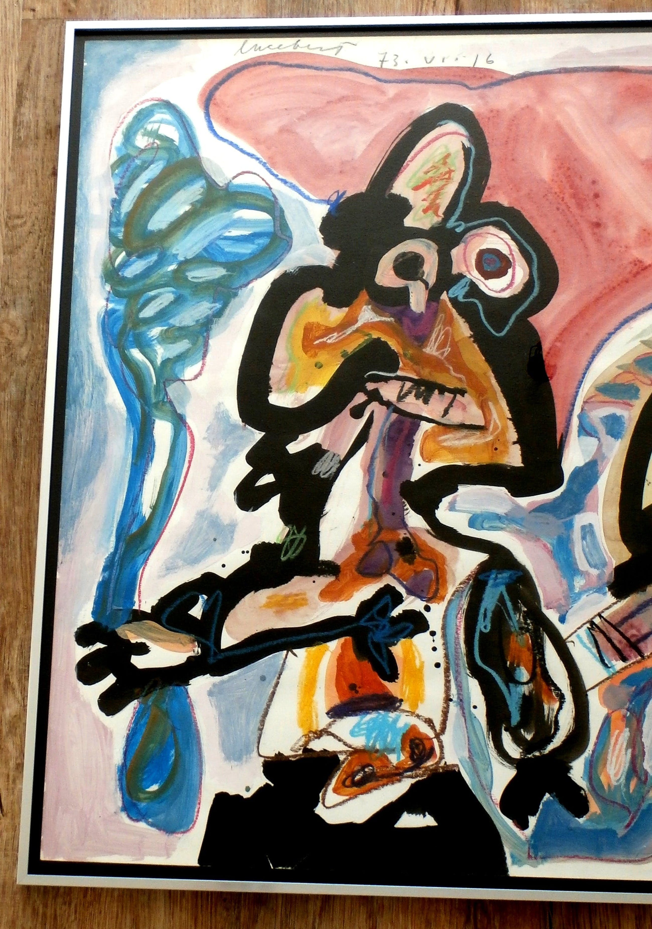 Top werk van Lucebert. Prachtig heldere kleuren voor een werk van 45 jaar oud! Een dergelijk, mooi, groot werk als dit komt niet vaak op de markt. Techniek: gemengde techniek op papier. Het werk is linksboven gesigneerd en gedateerd ('73. VI. 16' ) door Lucebert.