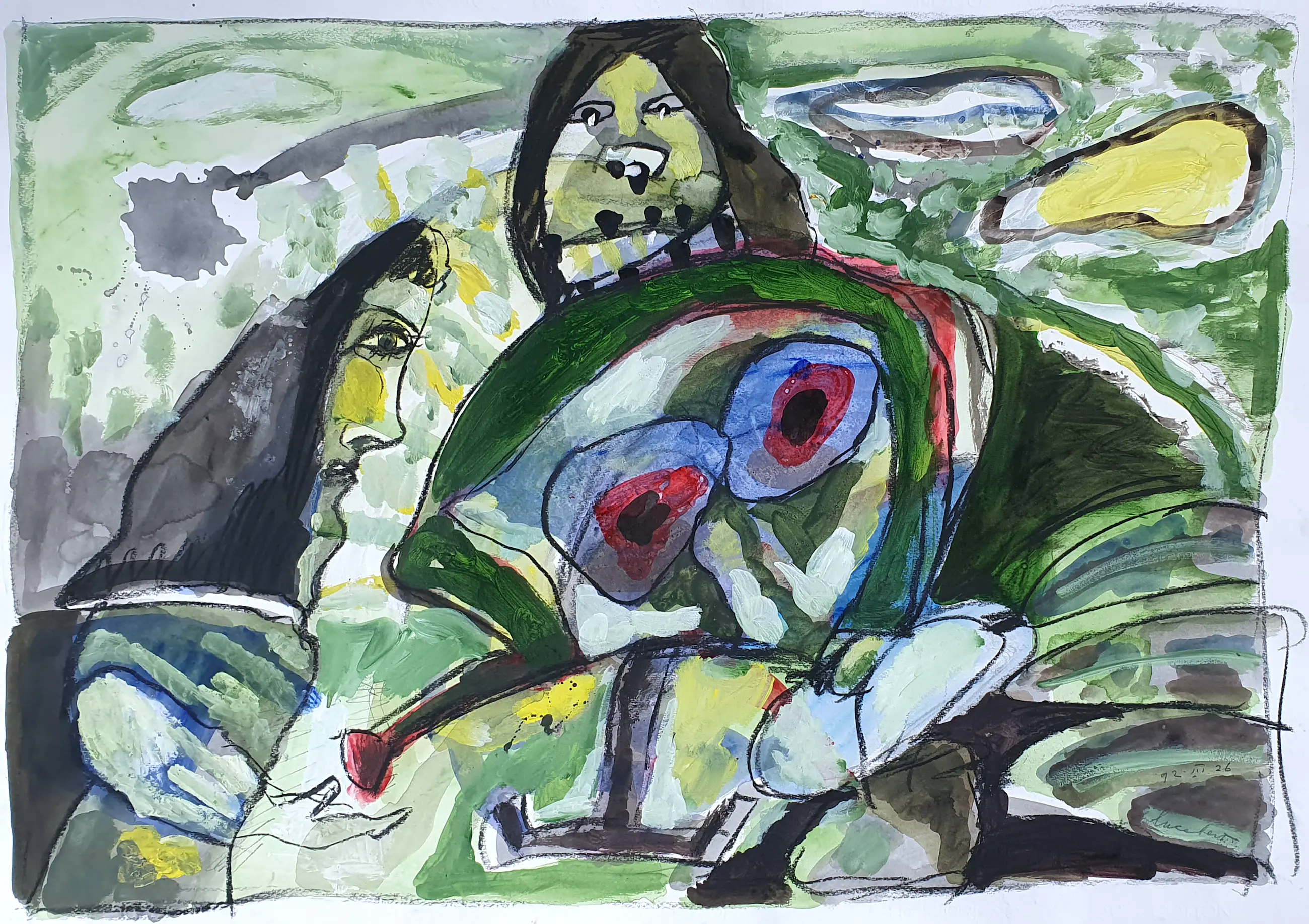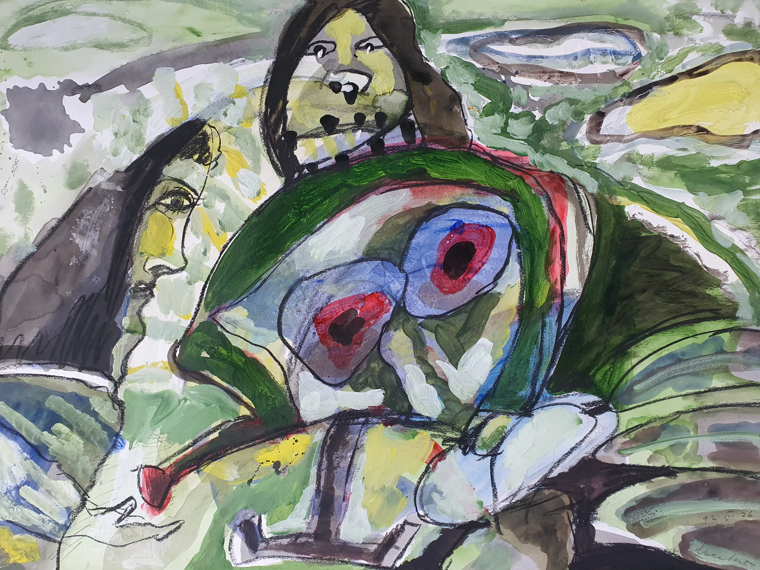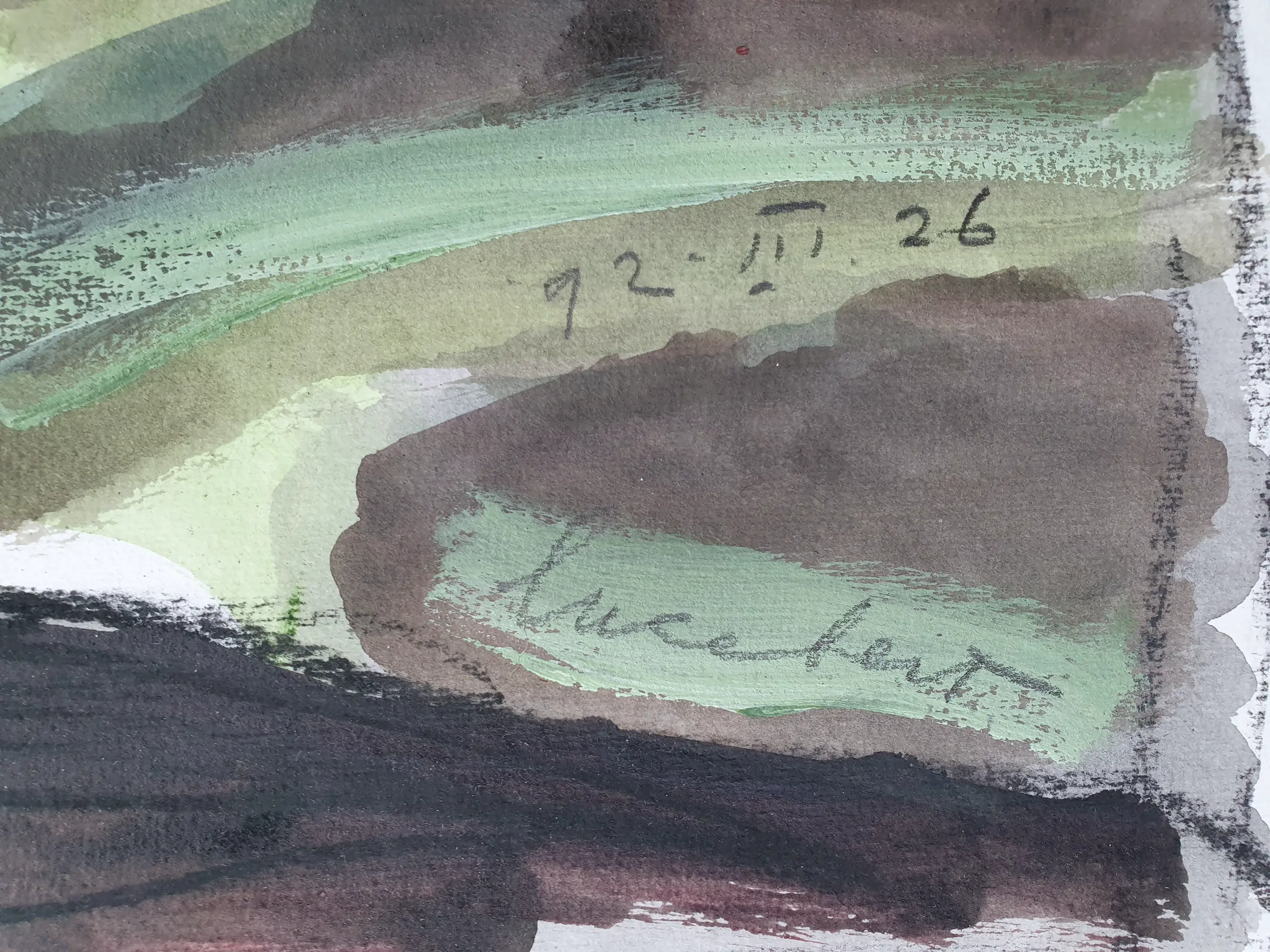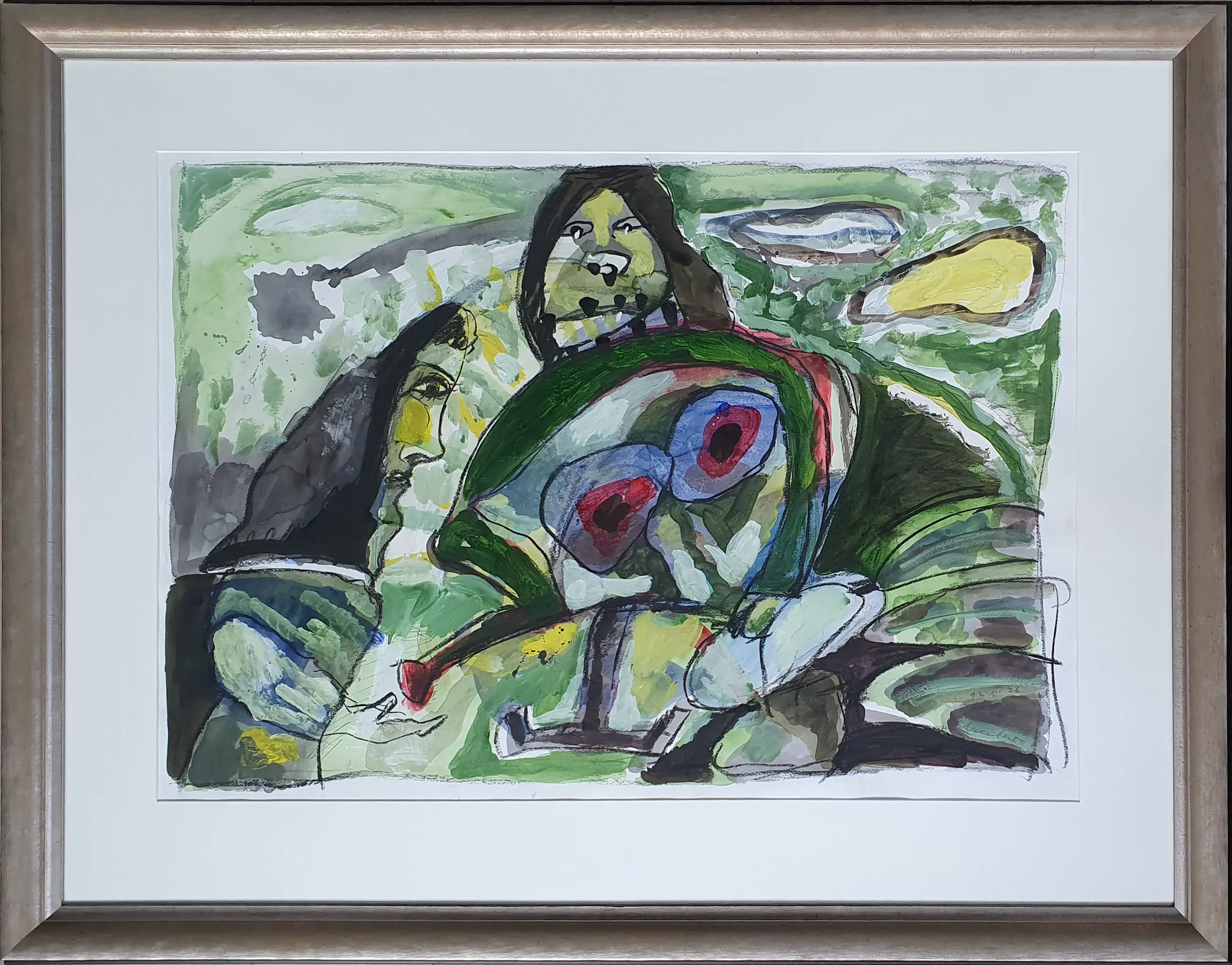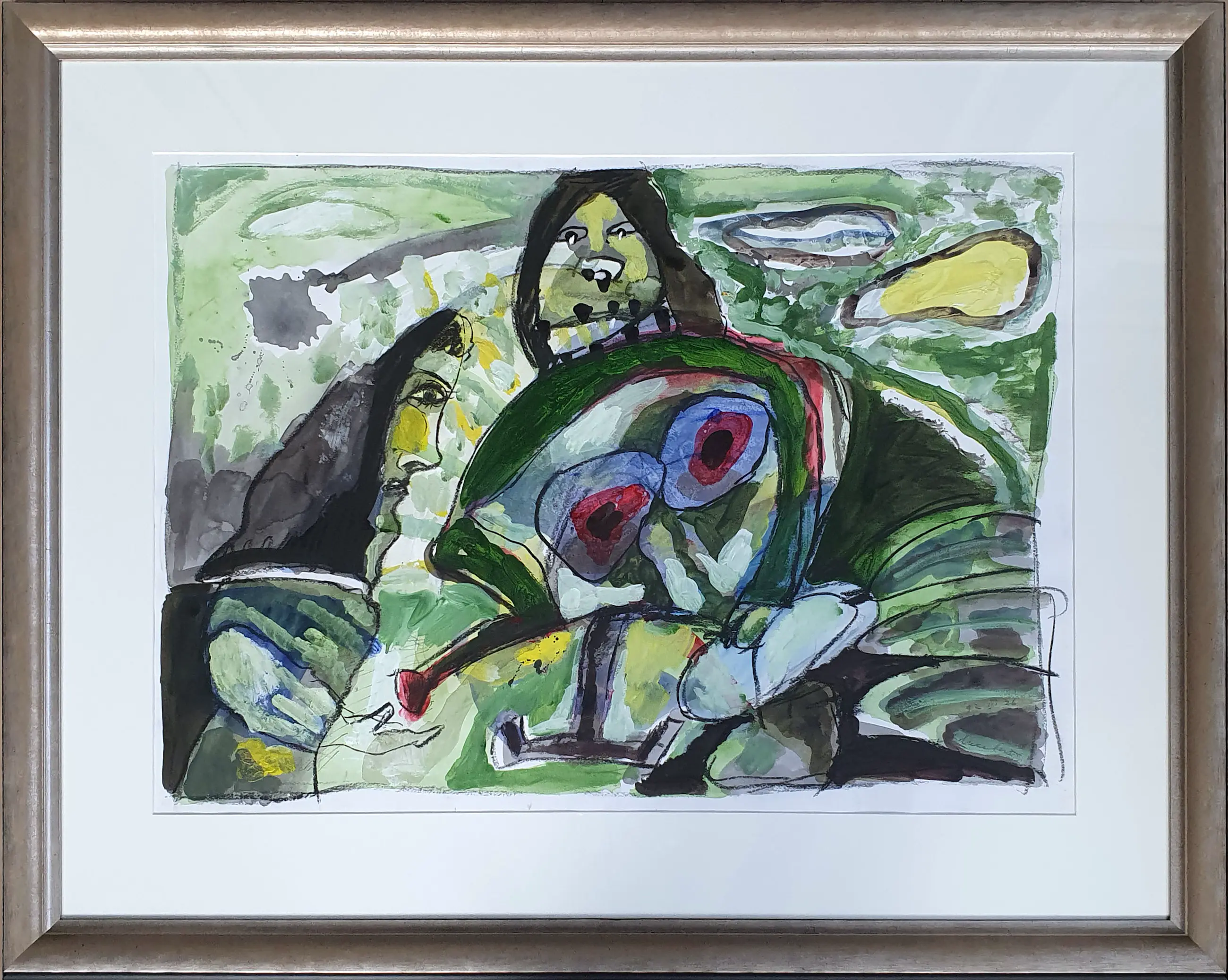 Prachtige gemengde techniek op papier van Lucebert. Het werk is rechtsonder met de hand gesigneerd door de kunstenaar.