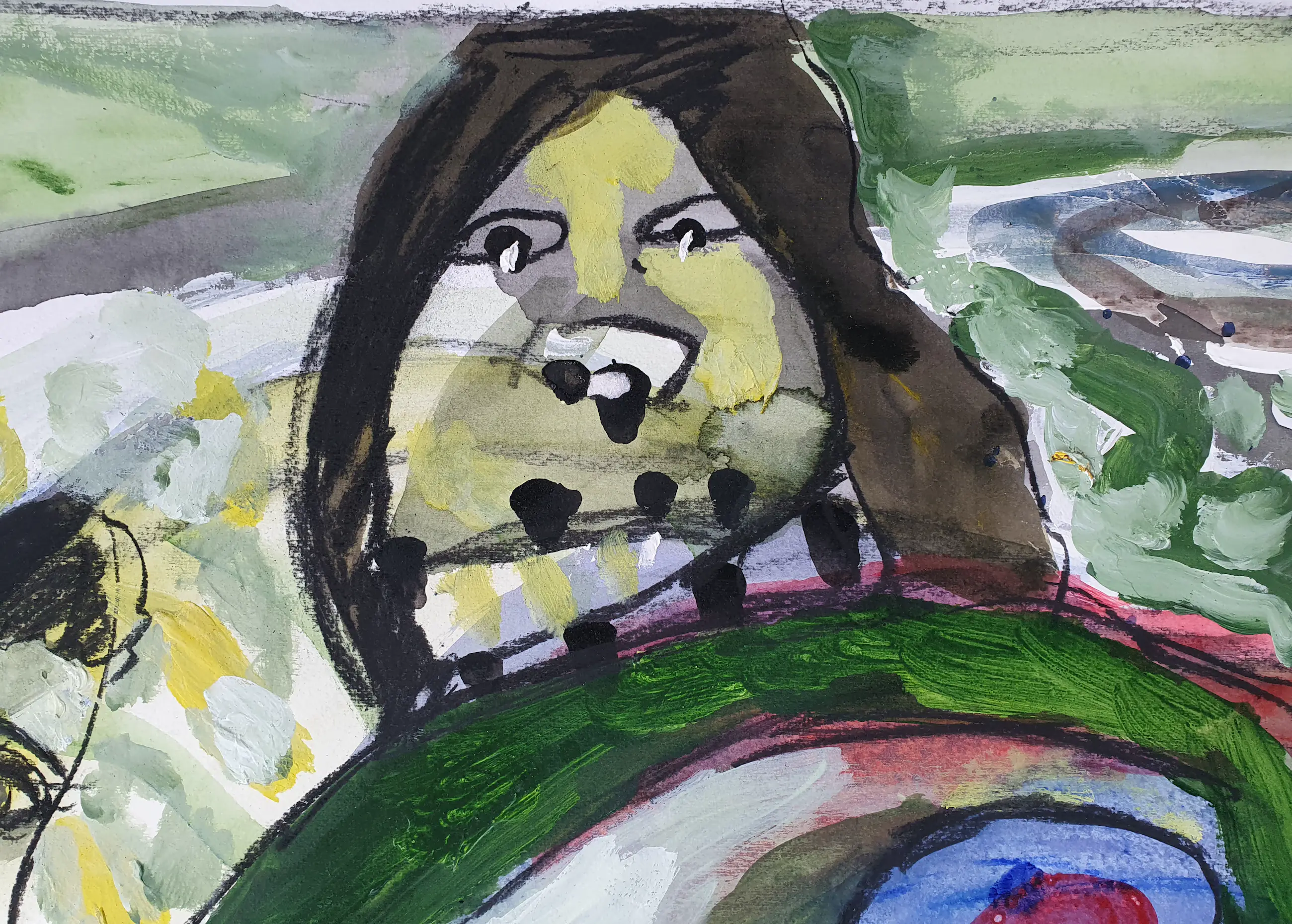 De foto's van het werk zijn door het glas heen genomen. Er kunnen wat weerspiegelingen zijn.