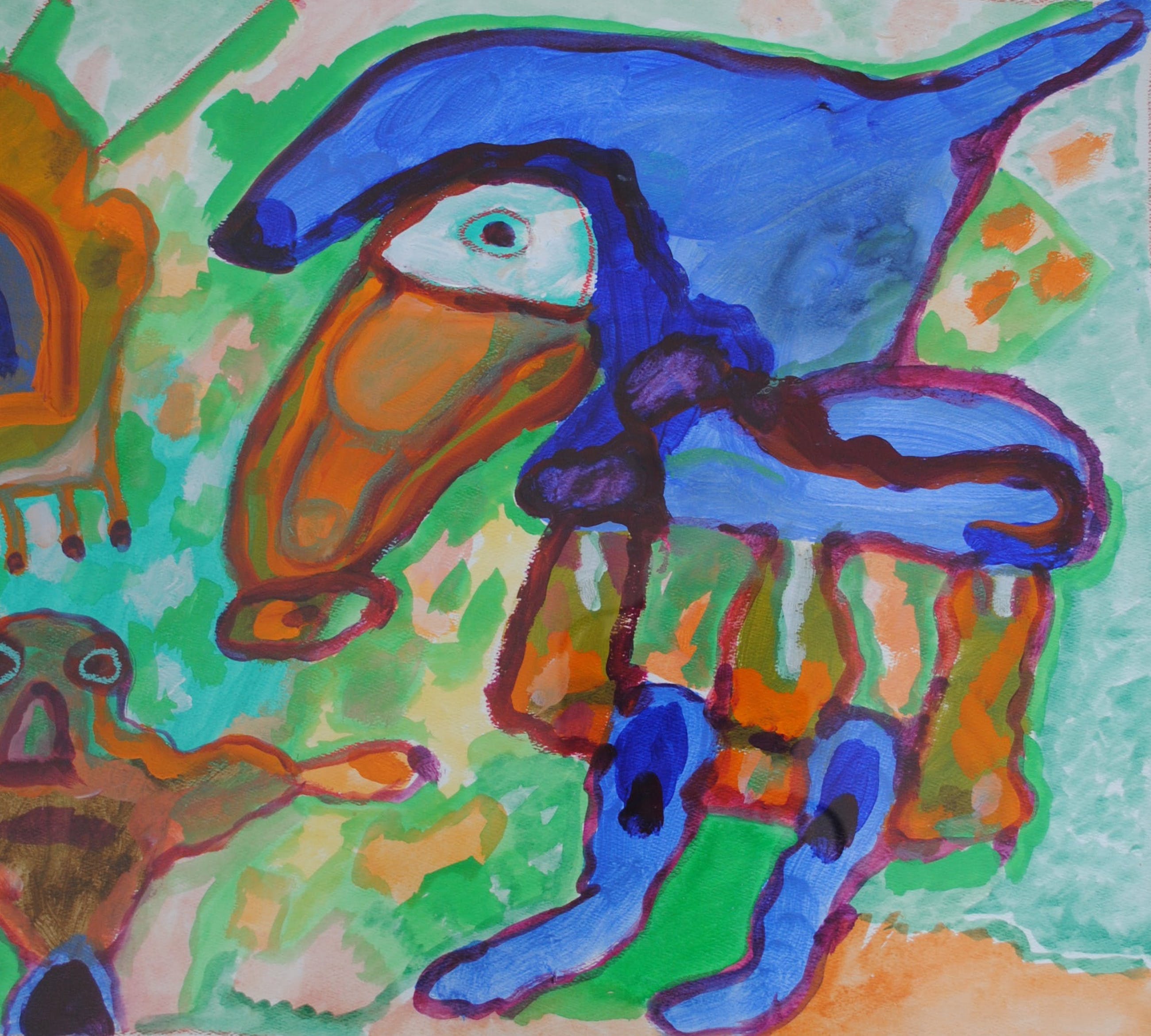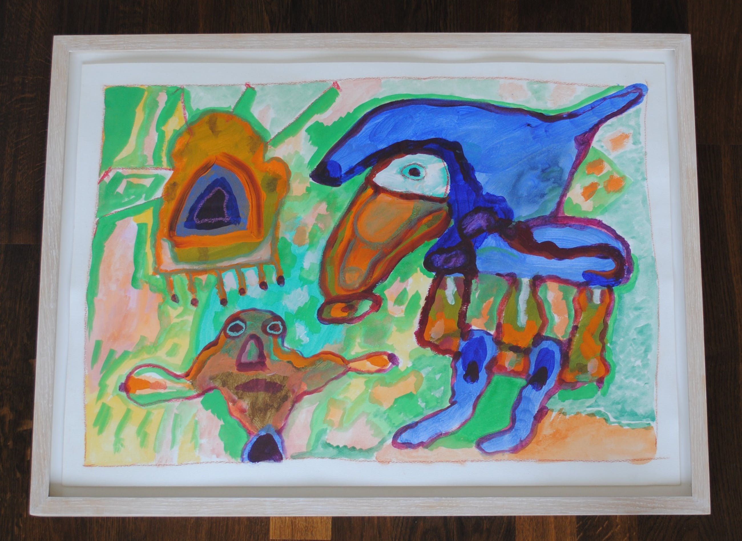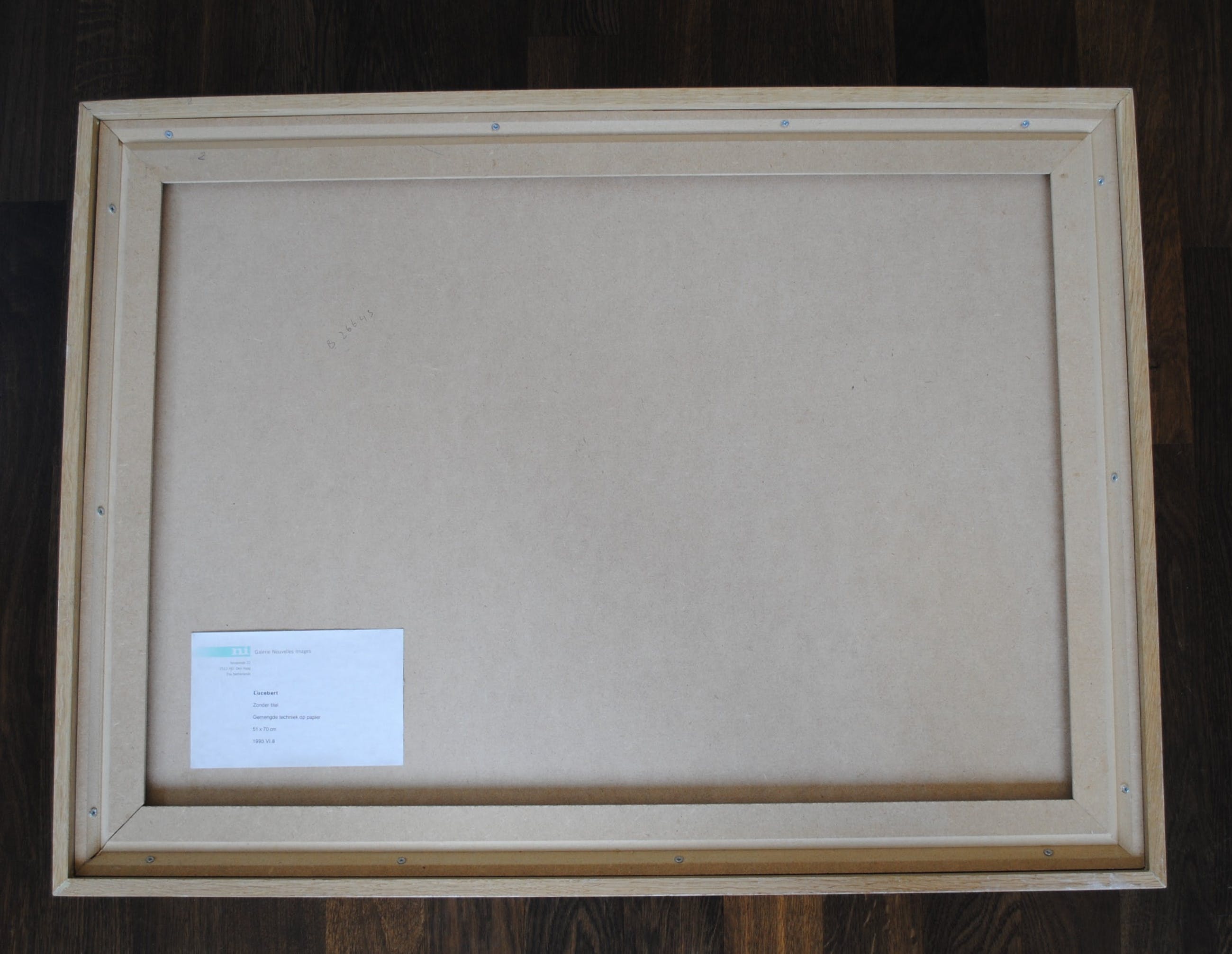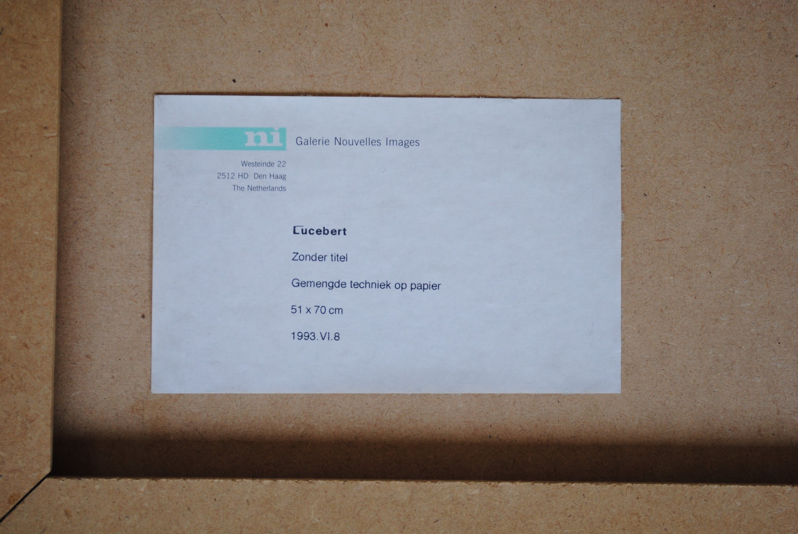 Mooi werk van Lucebert van 1993.VI.8. Gemengde techniek op papier. Afmeting gouache: 51 x 70 cm. Afmeting lijst: 56,5 x 76 cm. Professioneel ingelijst in een mooie houten, wit gepigmenteerde lijst. De dikte van de lijst is 4,5 cm. Conditie: in perfecte staat.