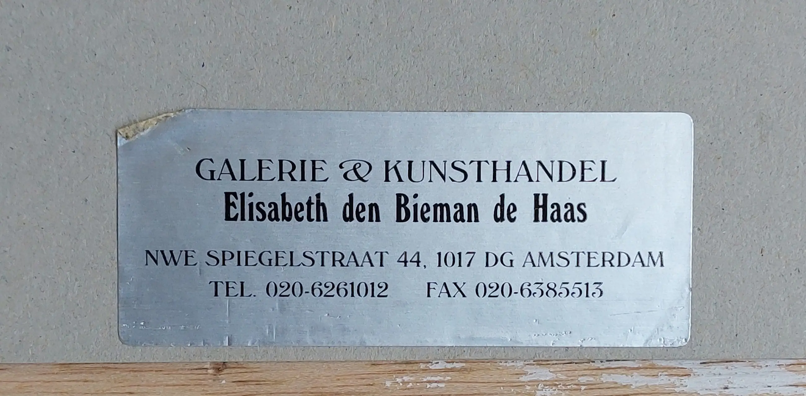 Titel : links beneden Provenance Galerie Bieman de Haas Spiegelstraat Adam
