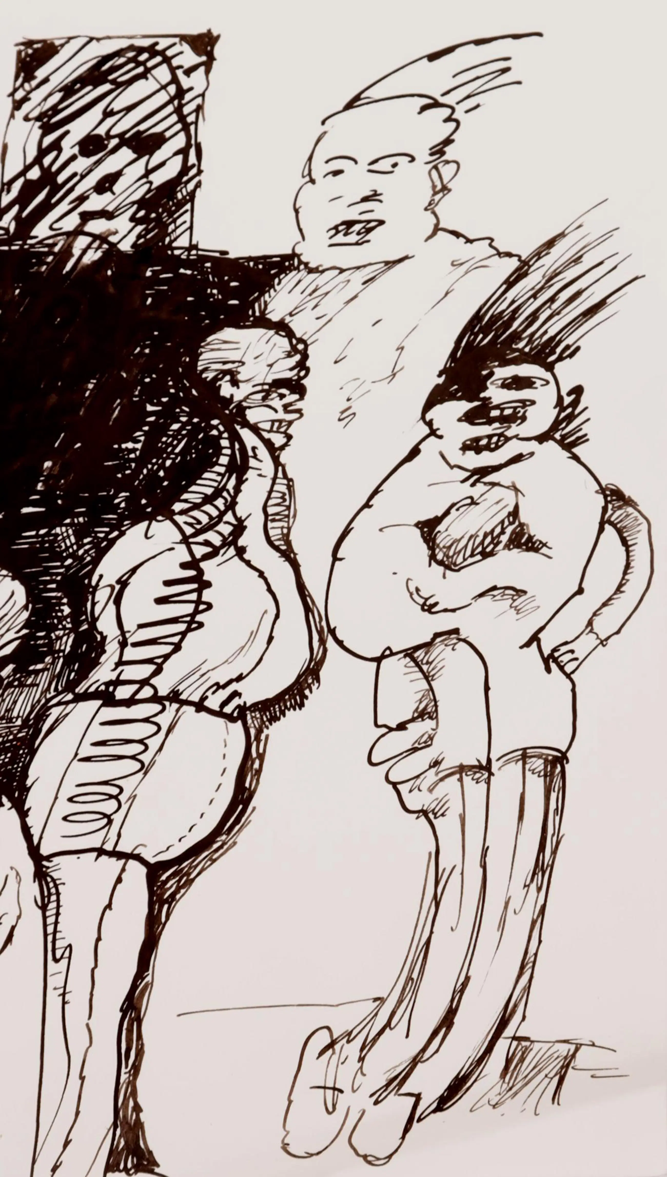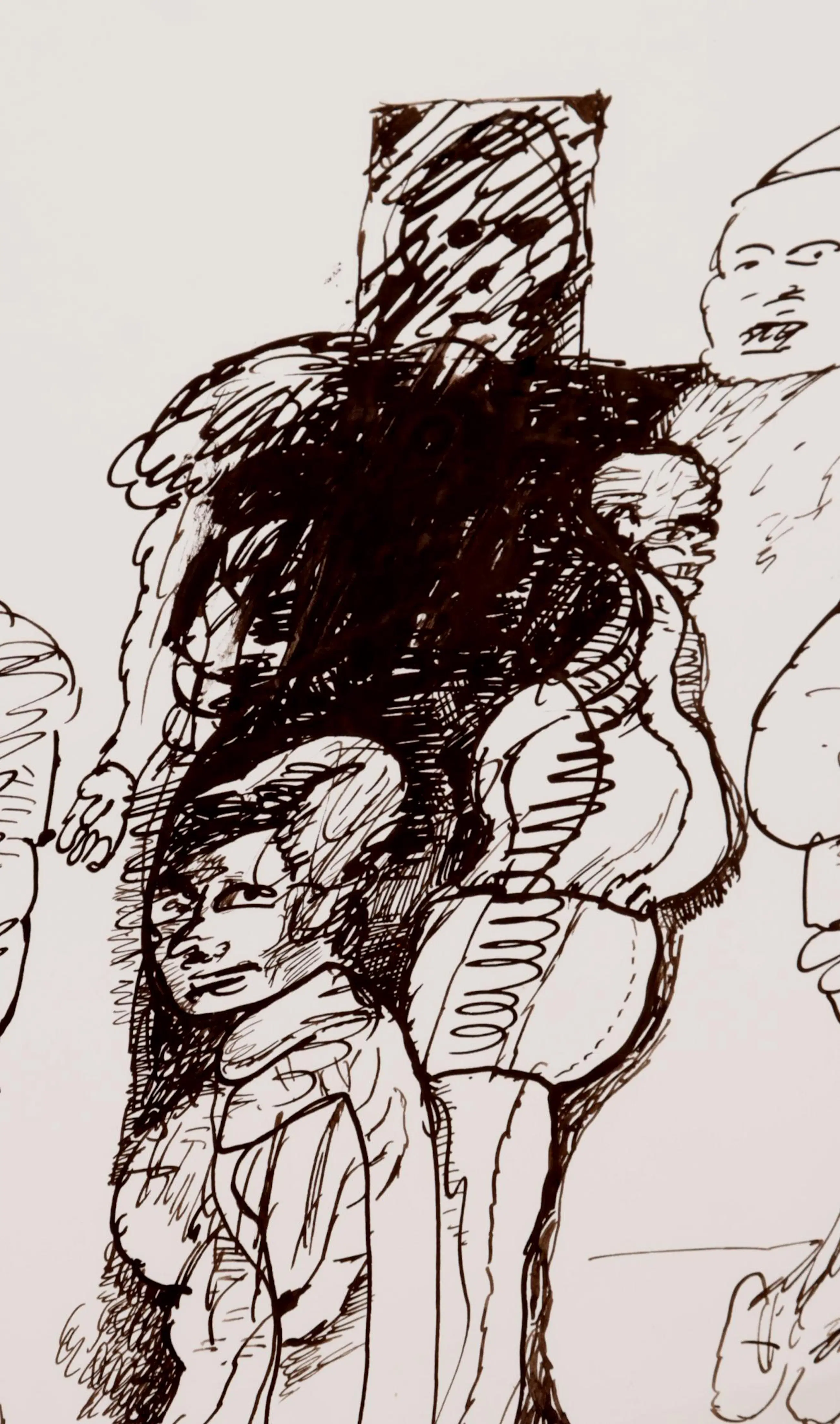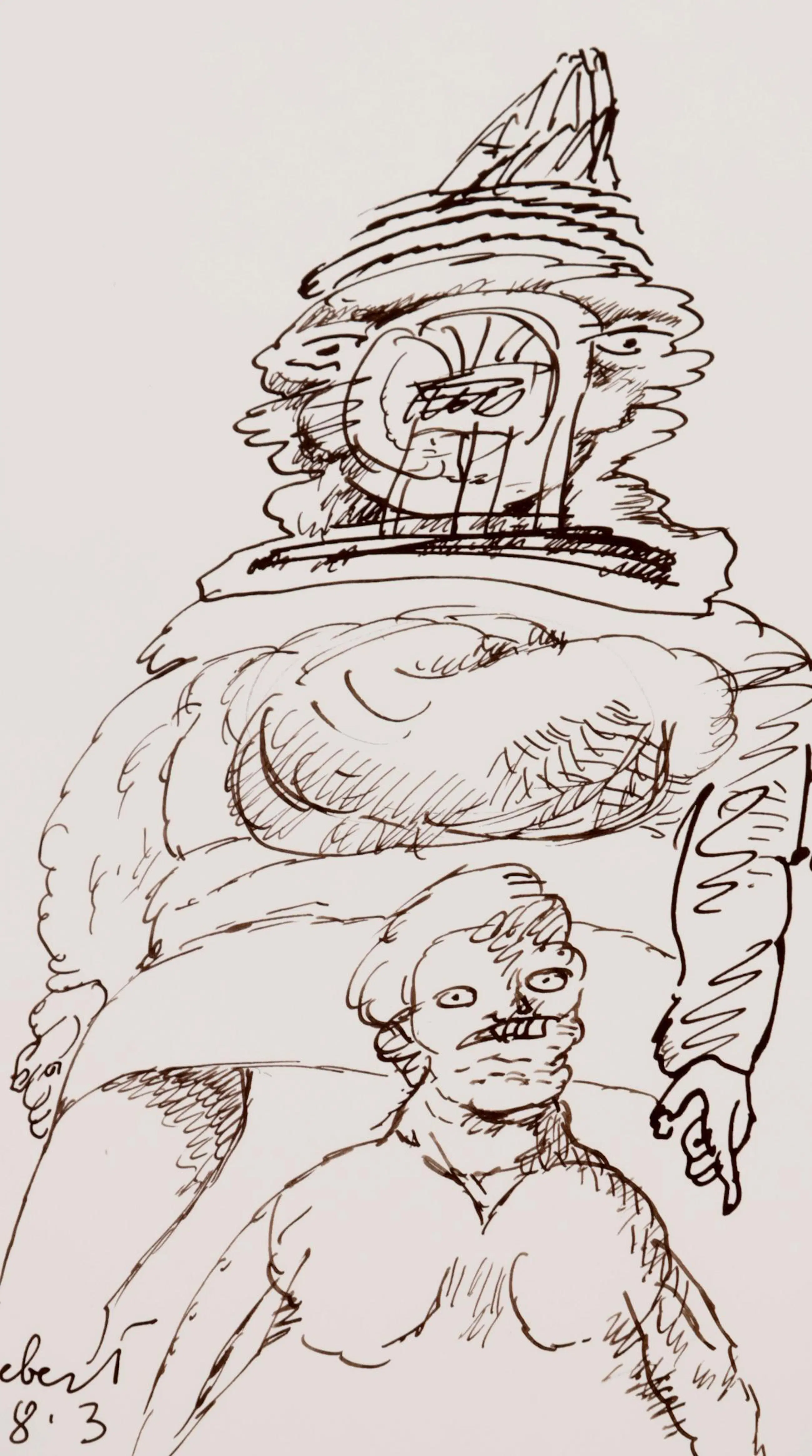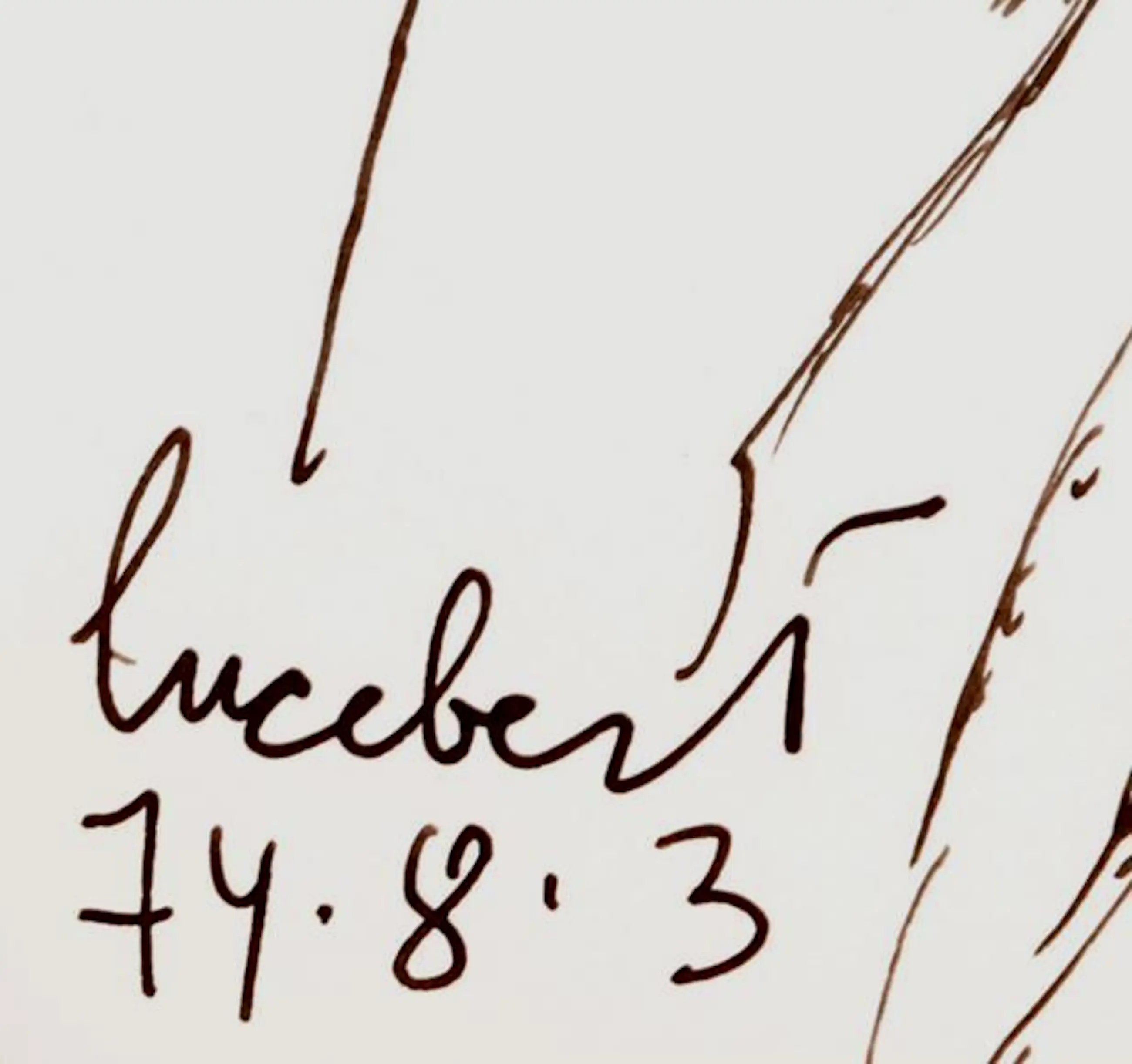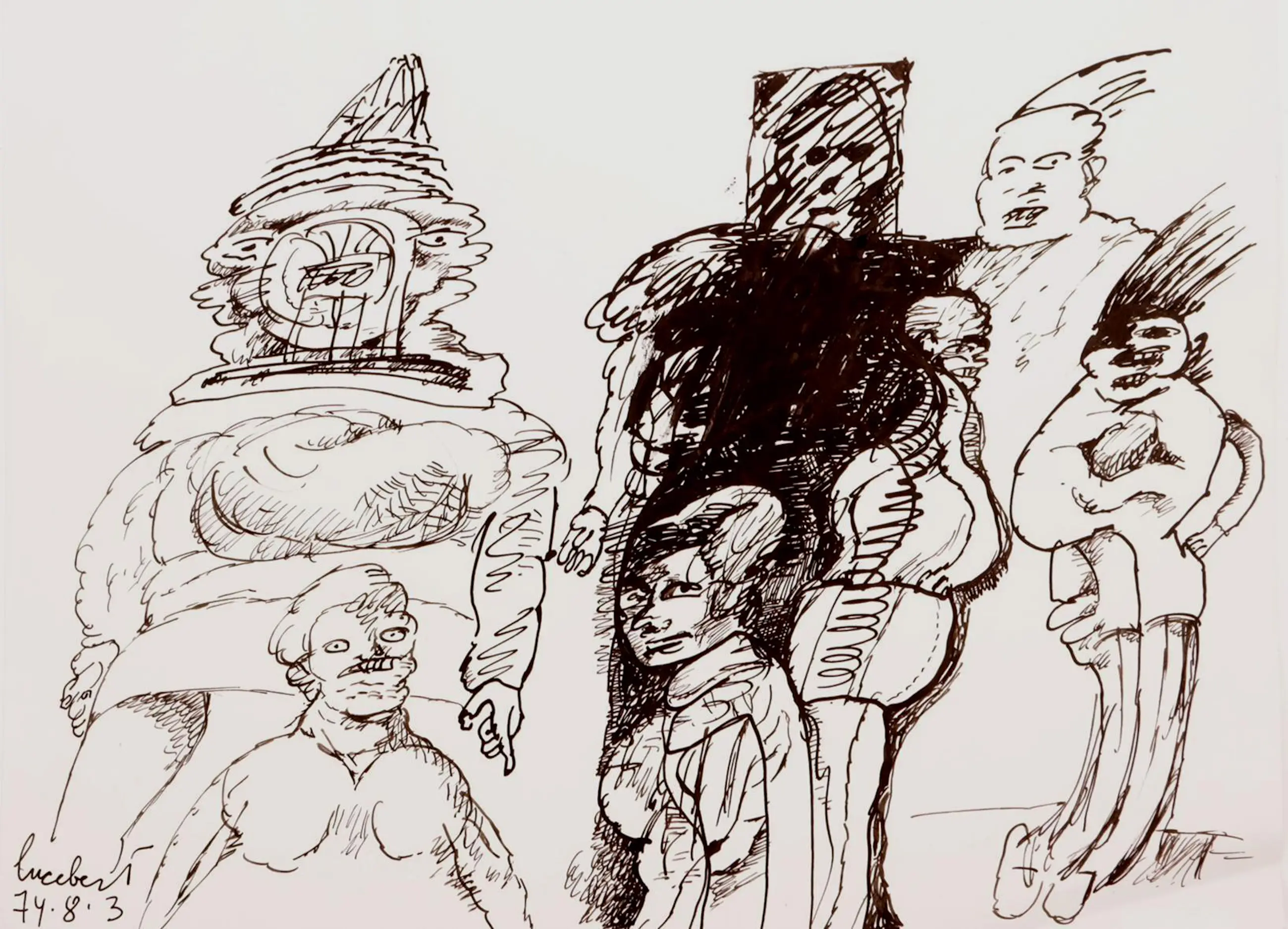 Inkttekening, van Lucebert. Voorstelling van diverse personen. Gedateerd: 74.8.3. Afmetingen blad: H27 x b21cm. Afmetingen voorstelling: H25 x b20cm. Het werk is links onderaan gesigneerd, door de kunstenaar. De authenticiteit van dit werk wordt volledig gegarandeerd. Een certificaat kan, op aanvraag, worden gemaild.
