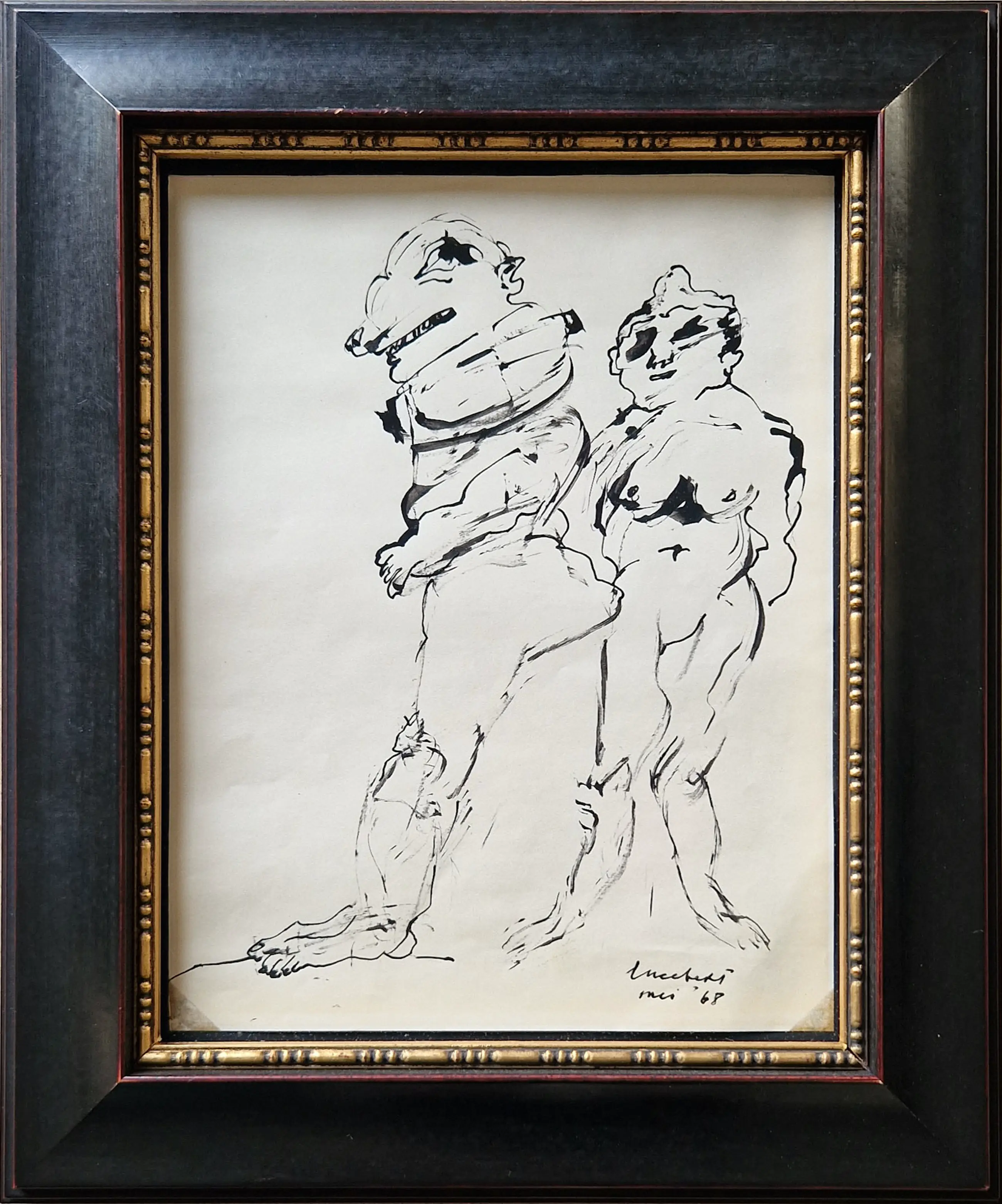Fraai ingelijste inkttekening van Lucebert uit 1968. Het werk is rechtsonder met de hand gesigneerd door de kunstenaar.