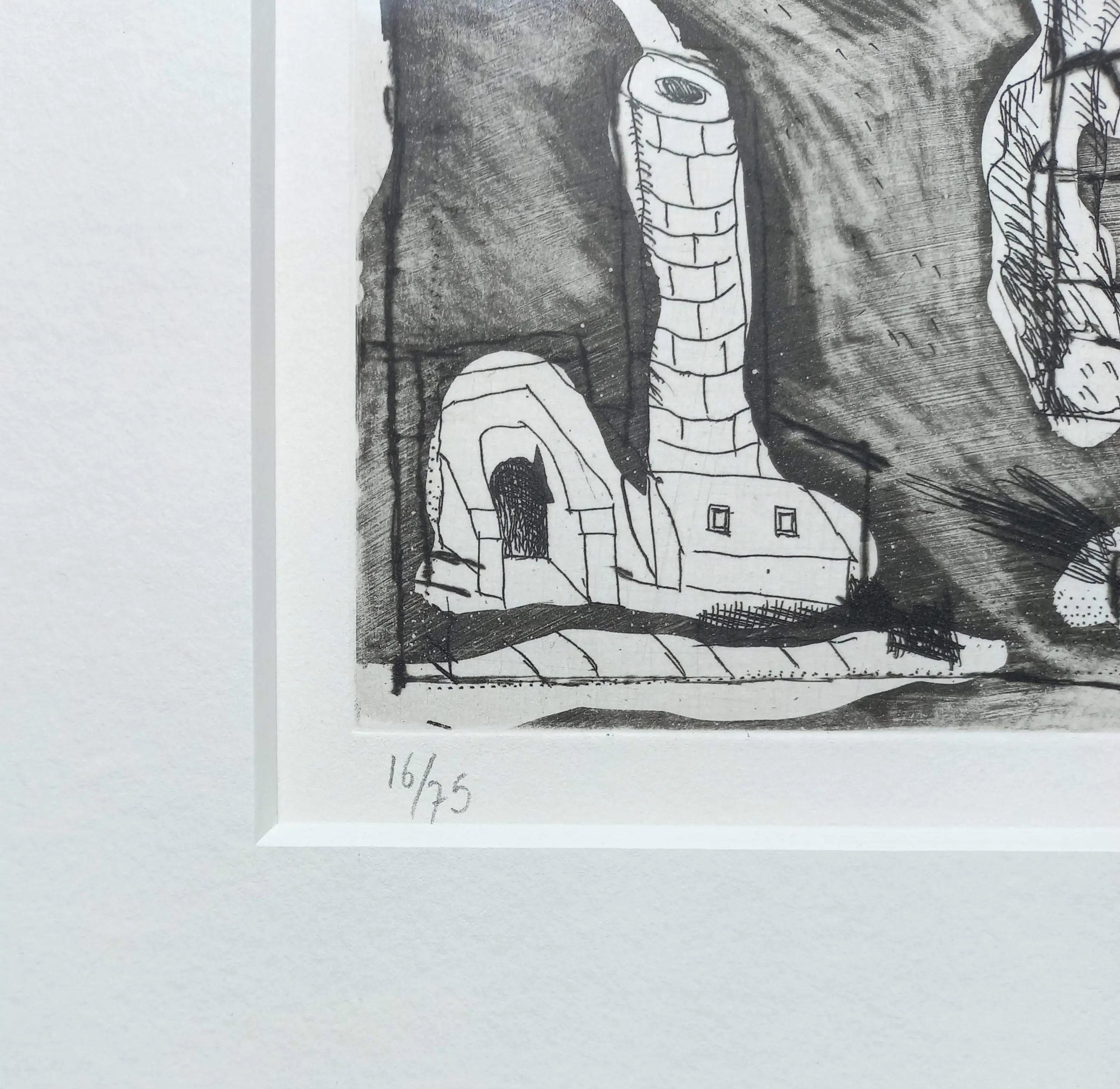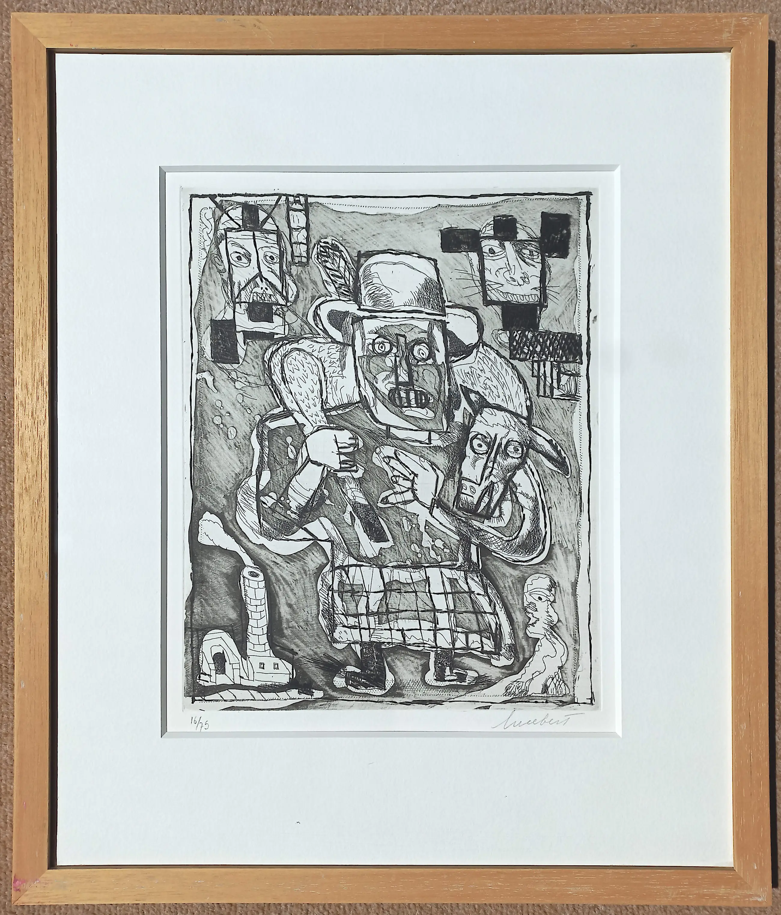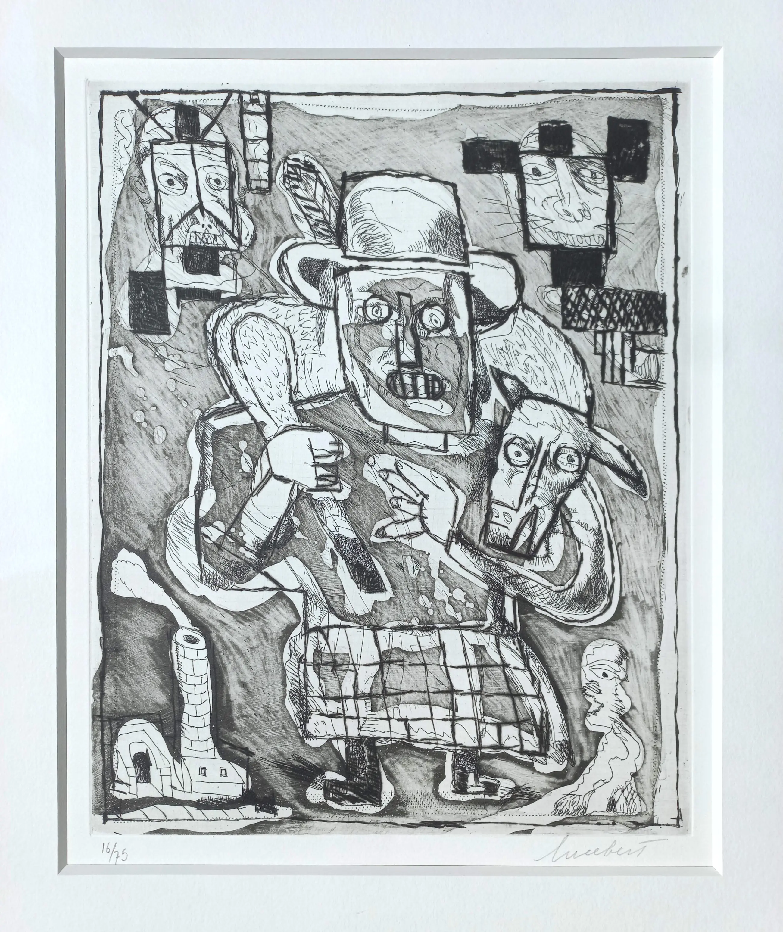 Mooi, karakteristiek werk van Lucebert. Ets op geschept papier, met potlood gesigneerd en genummerd (16/75). In solide houten lijst, achter glas en met smetteloos, zuurvrij passe-partout. In zeer goede conditie. Staat niet in het veelgebruikte naslagwerk “Lucebert in het Stedelijk” en aan de conditie te zien (smetteloos) stamt de ets uit zijn laatste werkzame jaren.