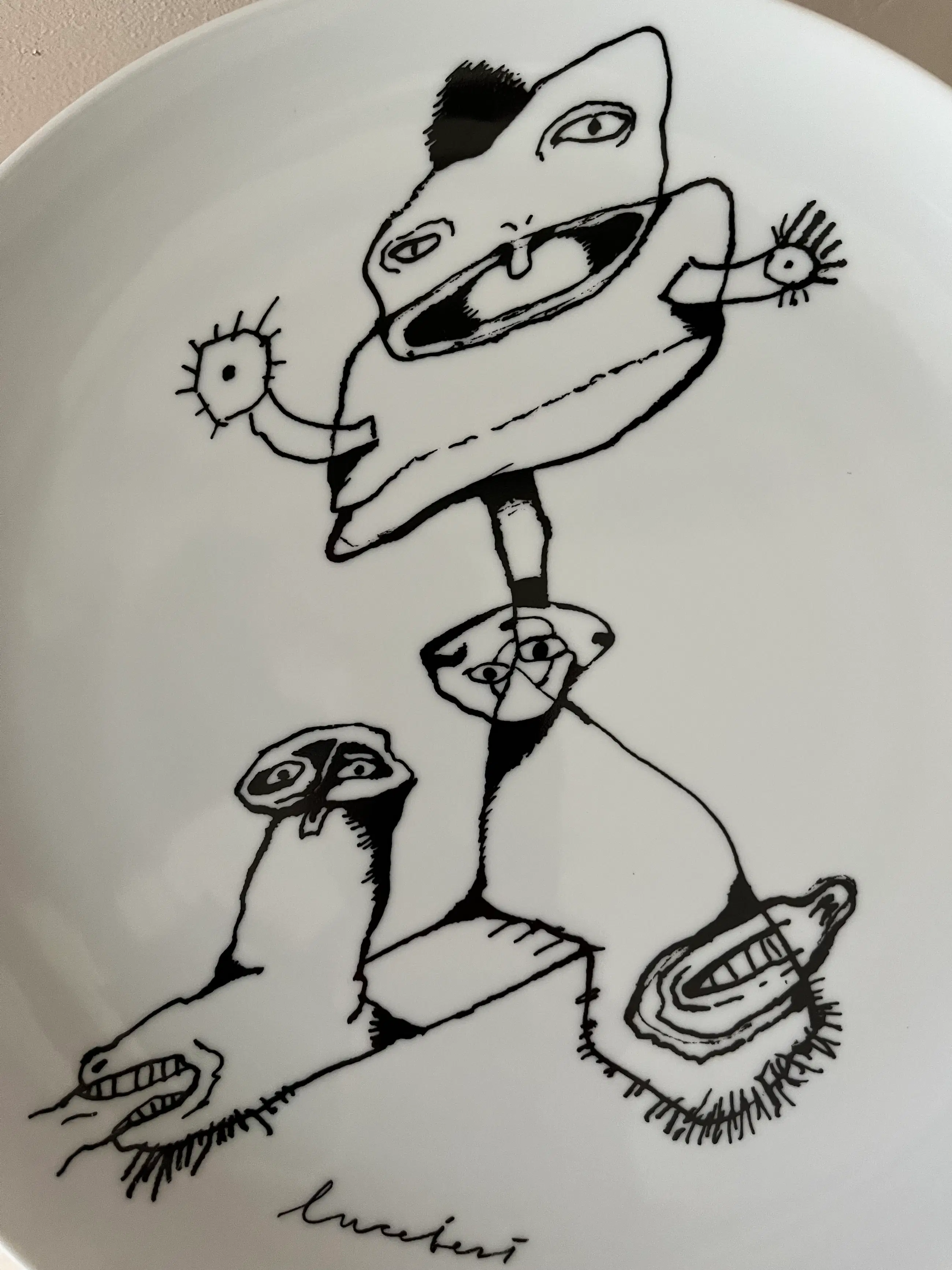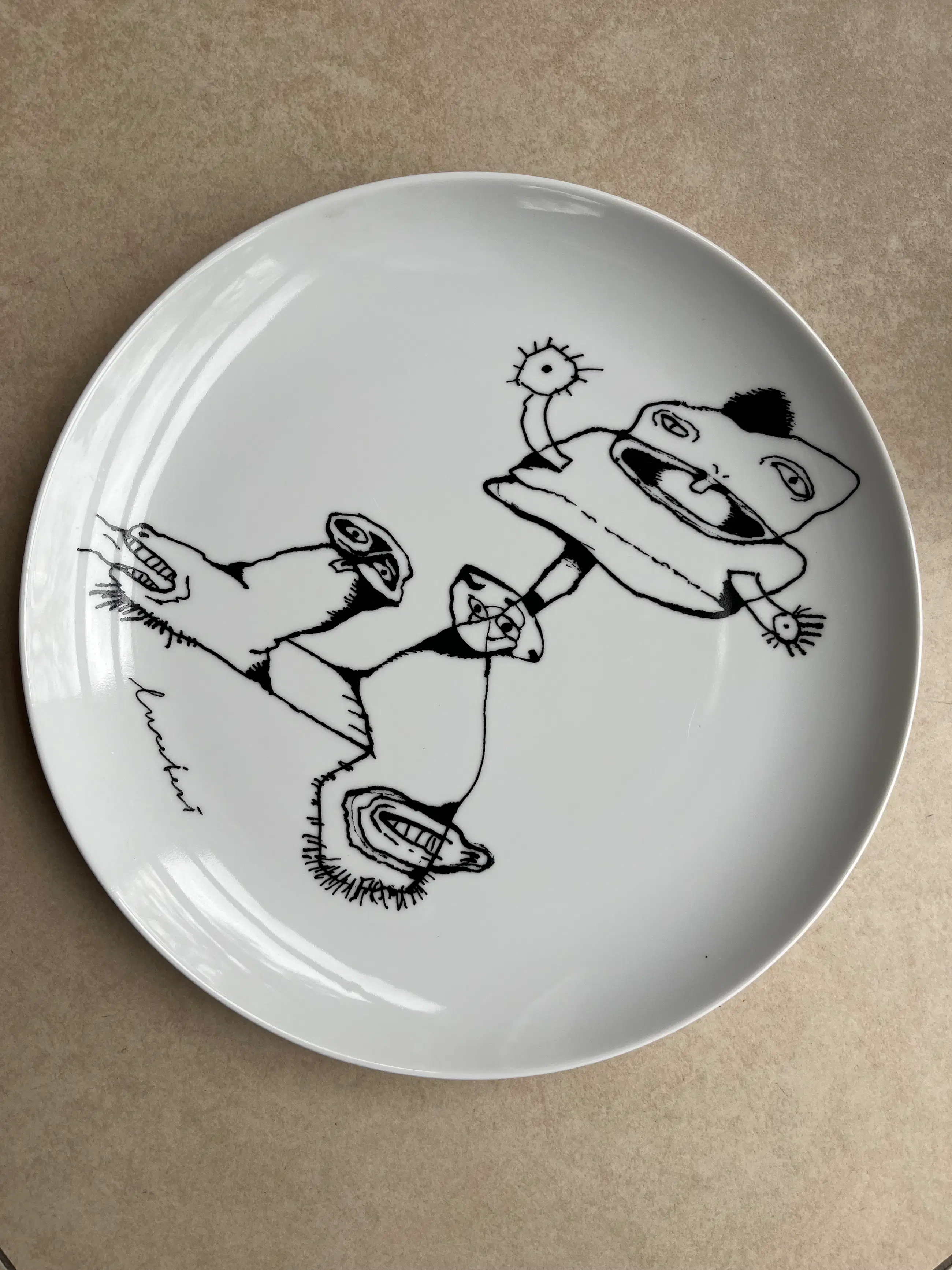 Zeer fraaie uitgave van Schoonhoven Keramiek, waarbij men de beroemde litho Jandl en Roth van Lucebert heeft overgezet op een keramieken bord.