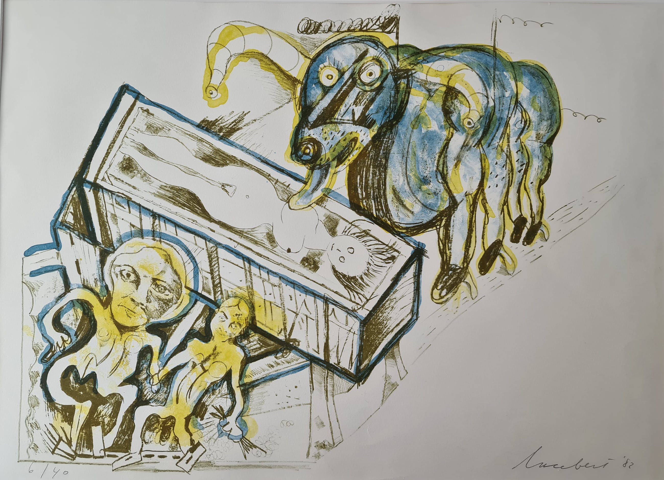 prachtig werk van Lucebert, Dit werk wordt zeer zelden aangeboden en is zover ik heb kunnen zien niet eerder verkocht via kunstveiling.nl