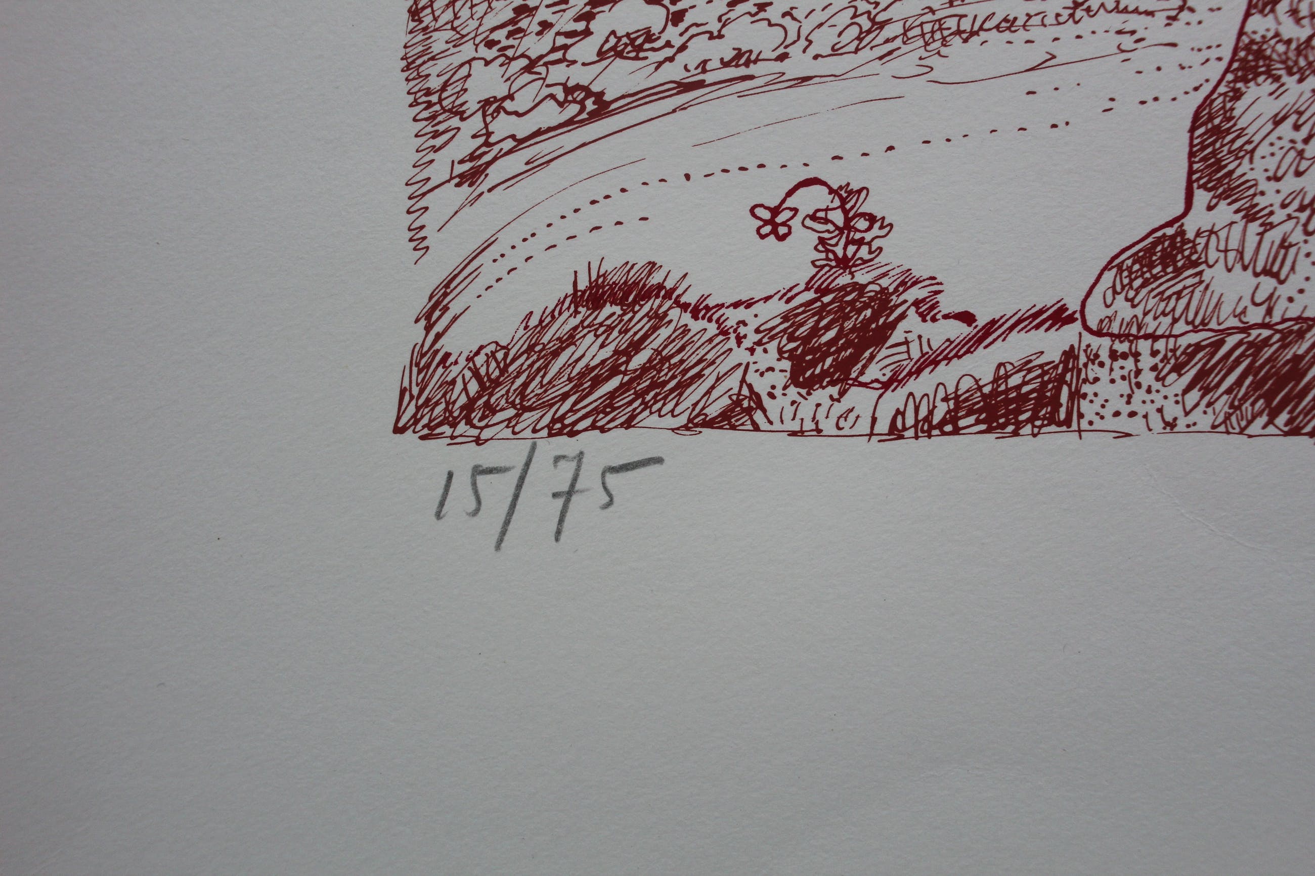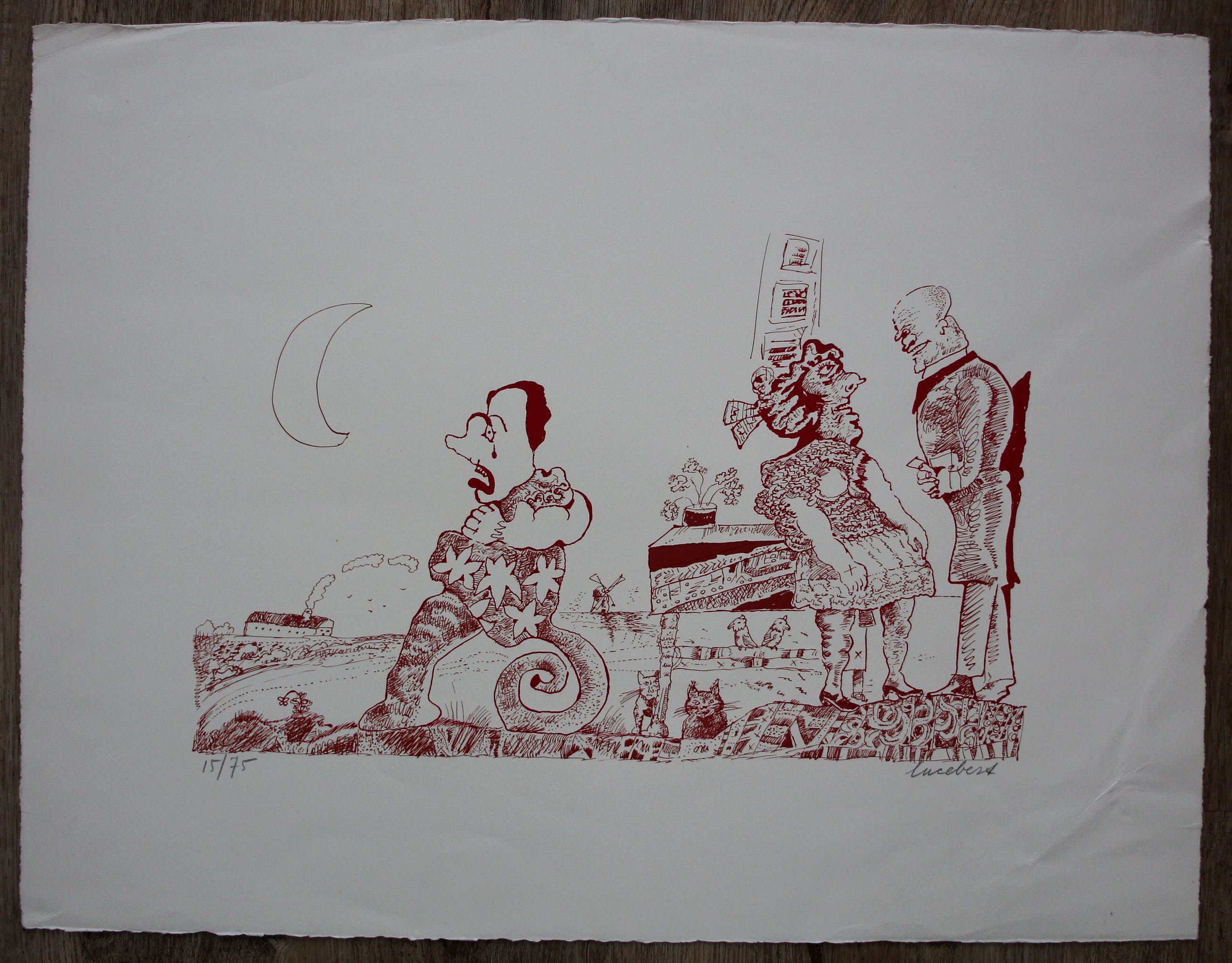 Litho van Lucebert. Nummer : 15/75. Het werk is rechtsonder, met potlood, gesigneerd door de kunstenaar.