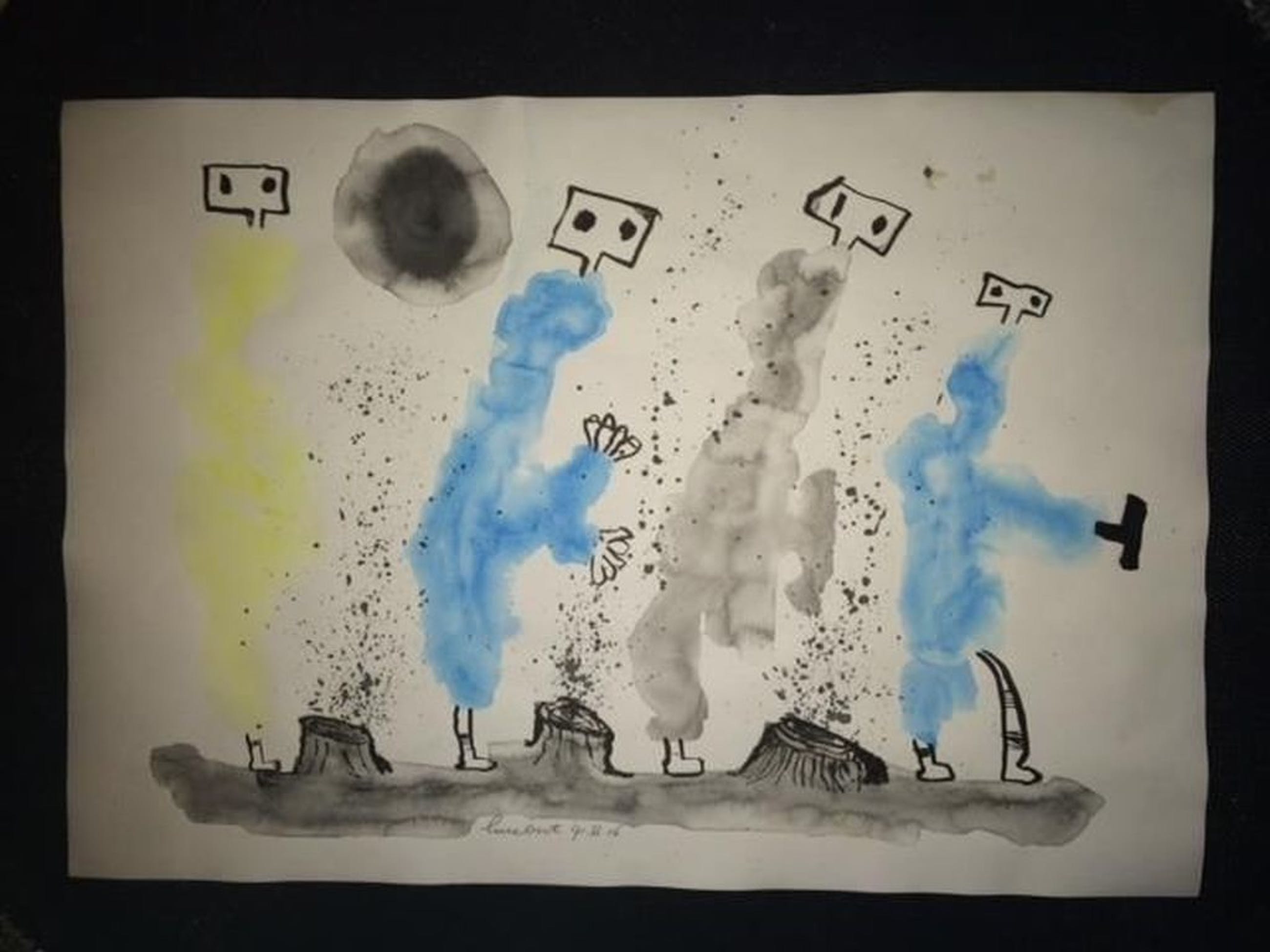 Aquarel van Lucebert uit 1991. Handgesigneerd en gedateerd. Afm. 50x35cm. 2 kleine vlekjes bovenaan.