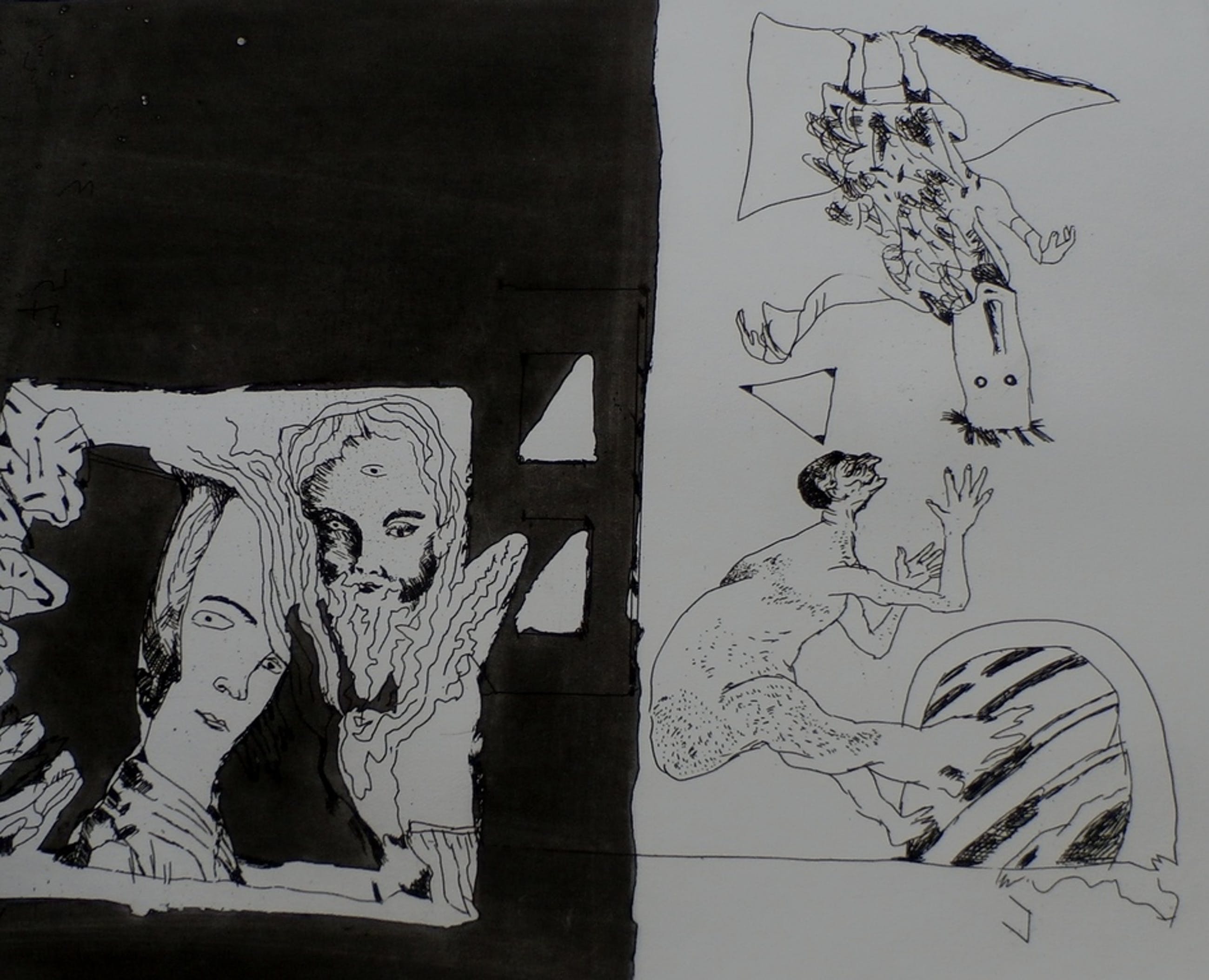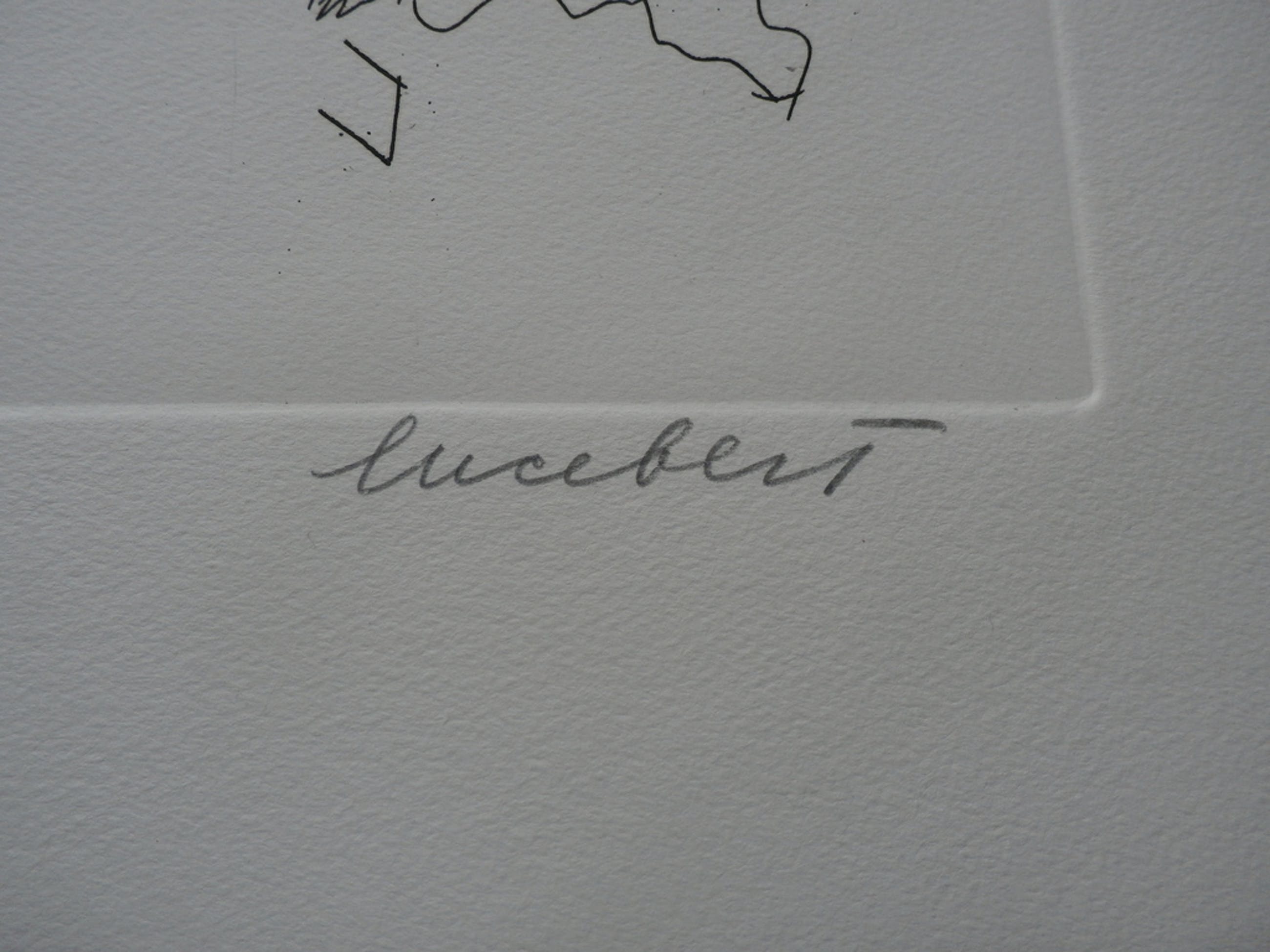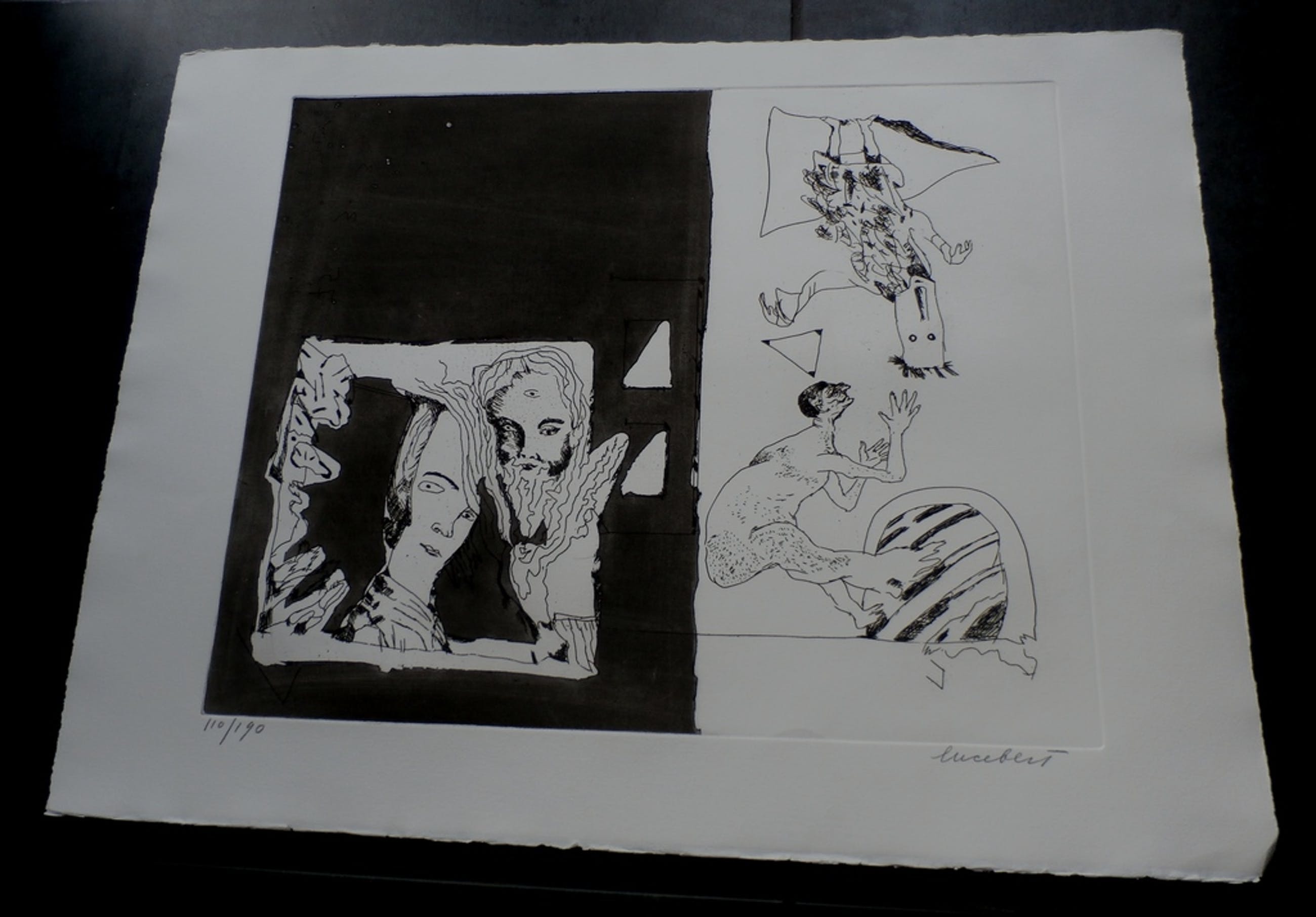 Lucebert - ets: Derde gezicht; jaar: 1975. nummer: 110/190; het werk is rechtsonder door de kunstenaar, met potlood, gesigneerd; voorstelling: h40,5 x b49 cm; afm. blad: h51 x b65,5 cm; uitgegeven door Prent 190.