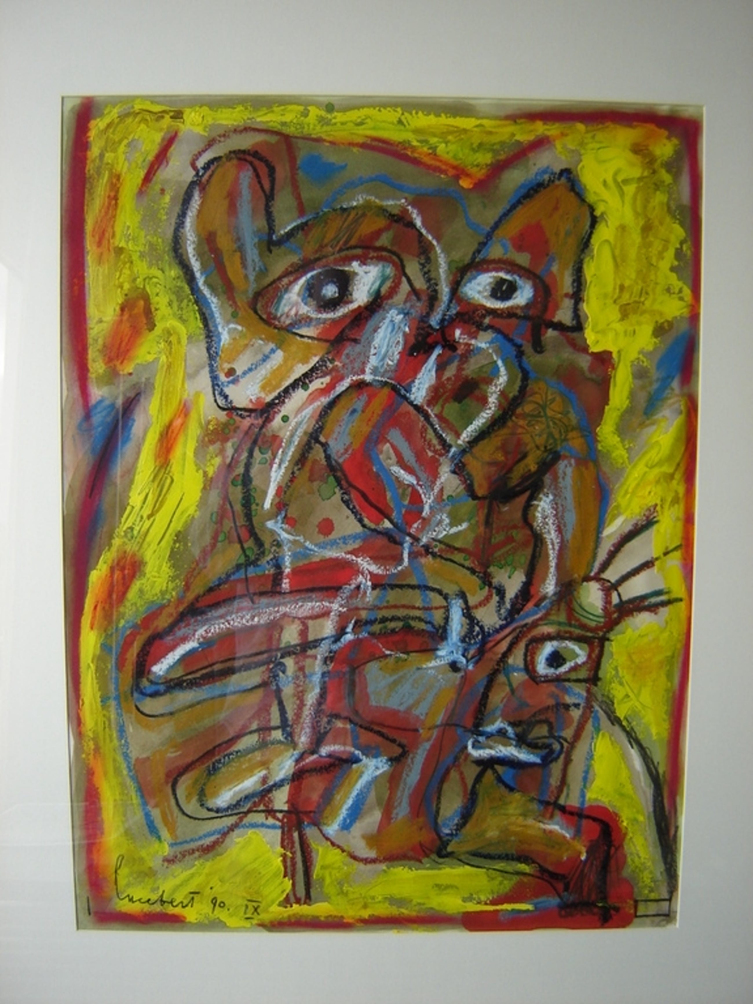 Gemengde techniek van Lucebert. Origineel werk, destijds, ingelijst, gekocht bij Galerie Espace van Eva Bendien aan de Keizersgracht 548 in Amsterdam. Afmeting van het werk is 45,5 bij 61 cm. Afmeting van de lijst is 63 bij 82 cm. Galeriestempel achterop de lijst. Getaxeerd door Apresa voor 10.000 euro. Taxatierapport ter inzage. Originele aankoopbon aanwezig. Linksonder gesigneerd en gedateerd September 1990. Gratis thuisbezorging door geheel Nederland. Biedingen uitsluitend via Kunstveiling, dus niet via email.
