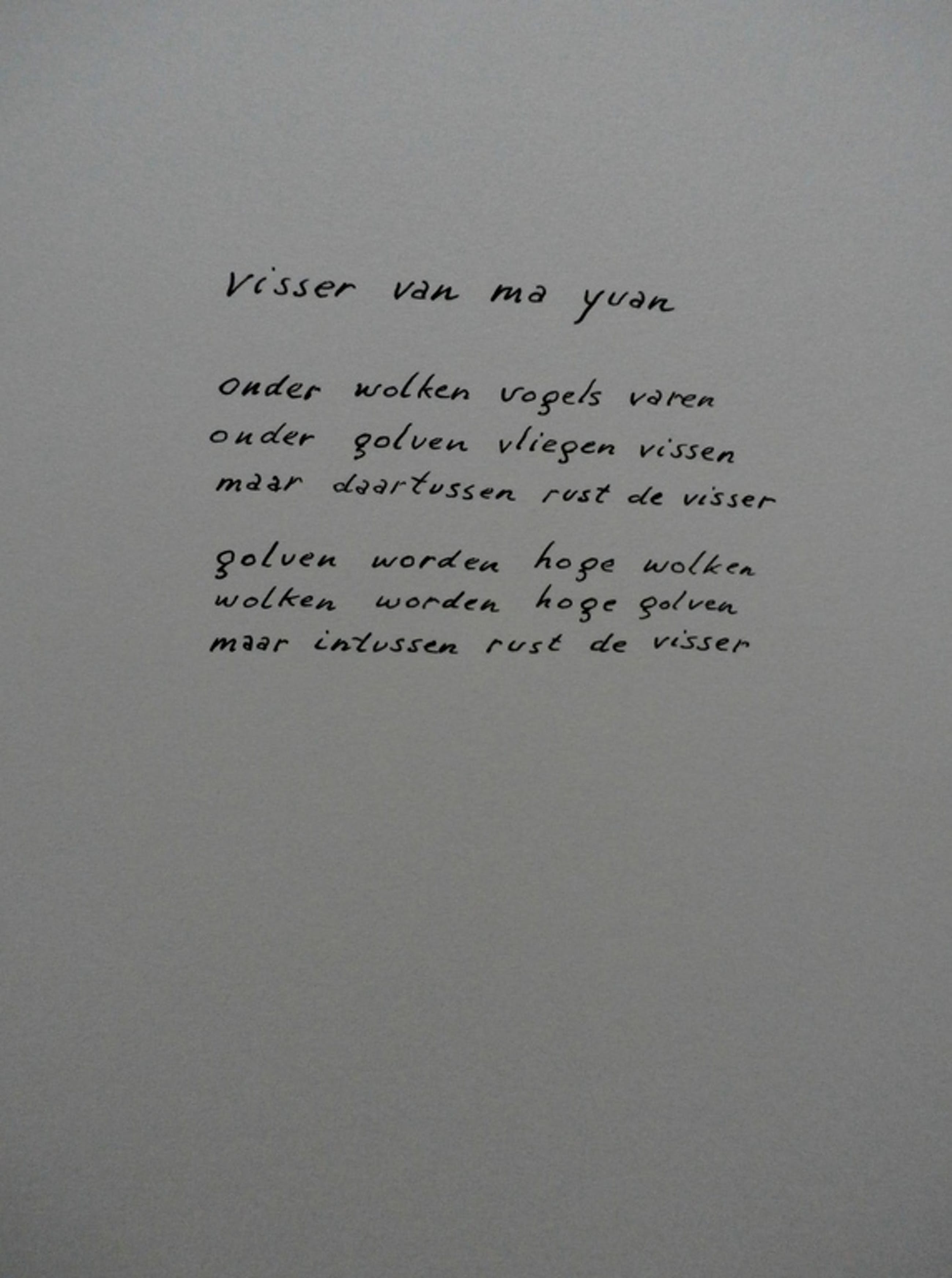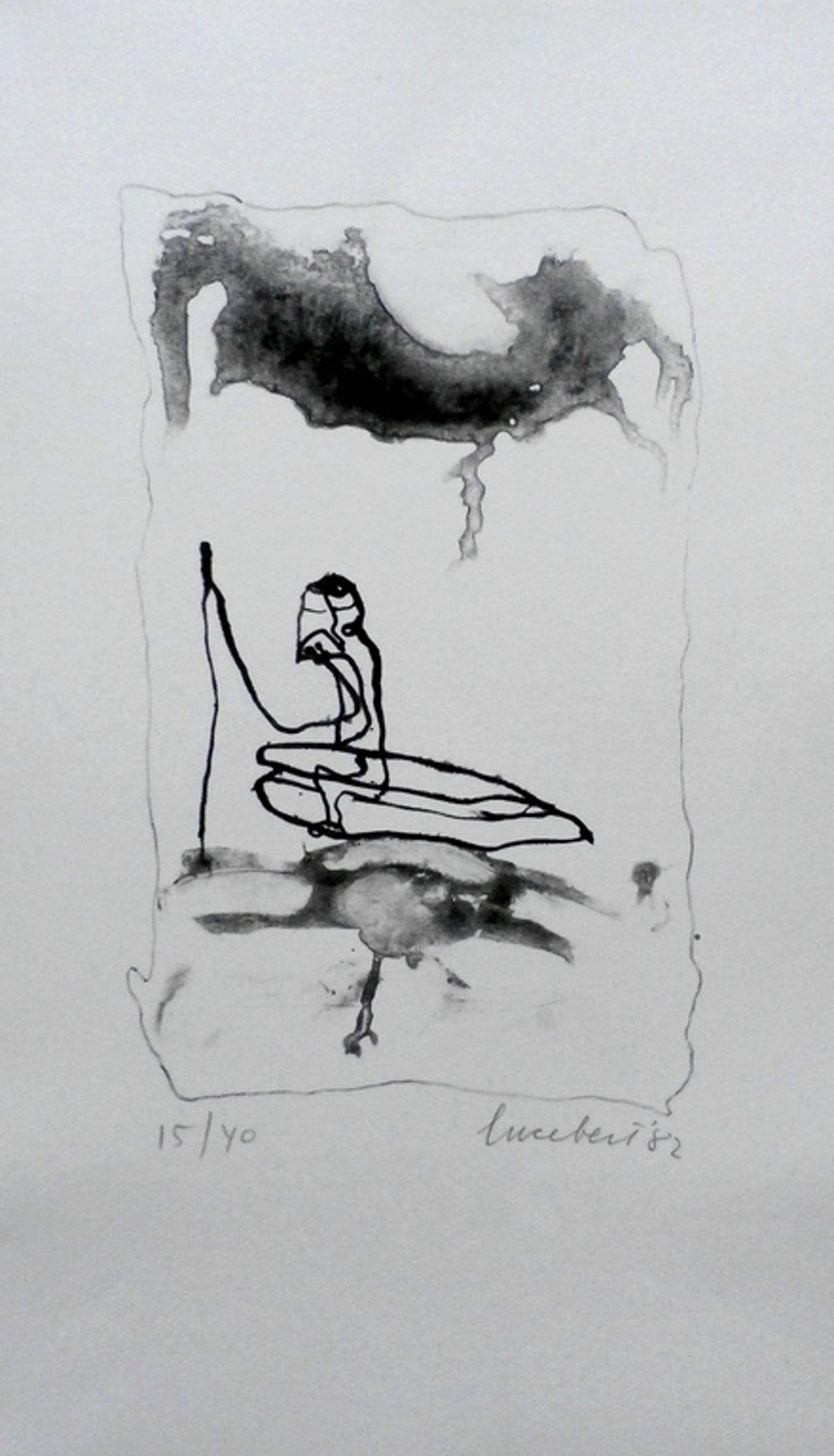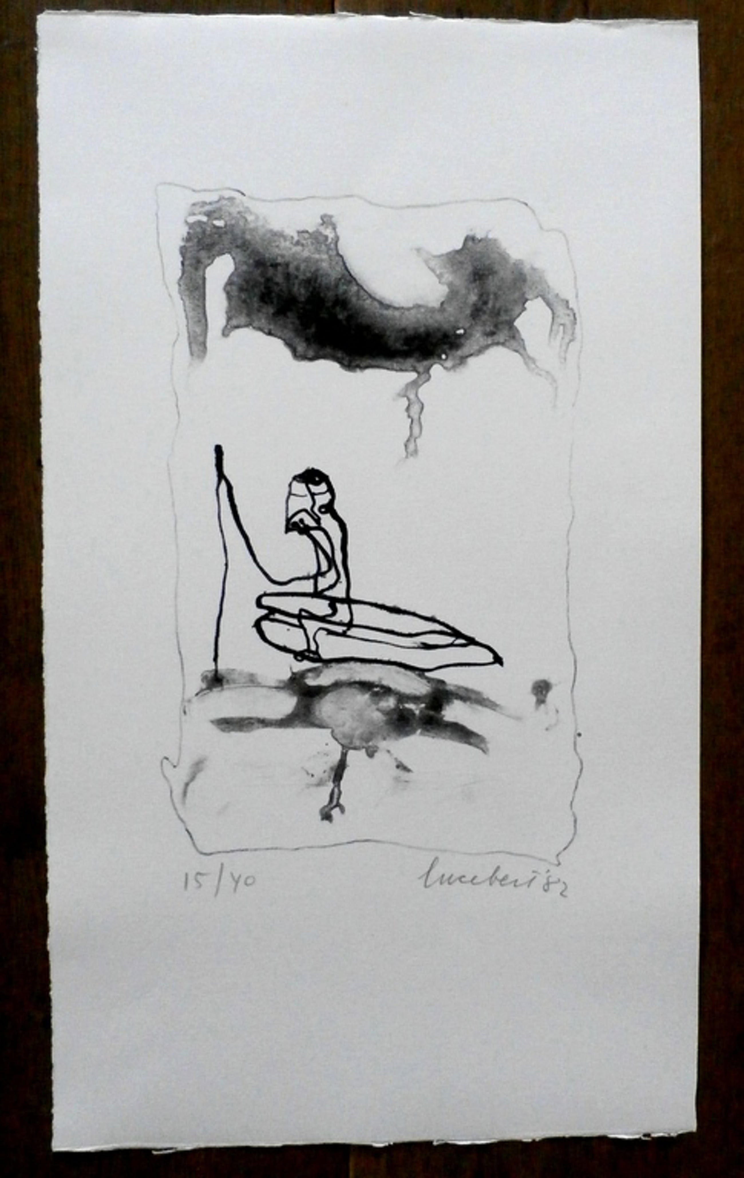 Lucebert - Litho met gedicht: Visser van Ma Yuan. jaar: 1982; nummer: 15/40; het werk is rechtsonder door de kunstenaar, met potlood, gesigneerd; afm. voorstelling: h30 x b19 cm; afm. blad: h51 x b30 cm. Uitgave: Printshop, Amsterdam.Papier: Hahnenmüle butten 300 gr.