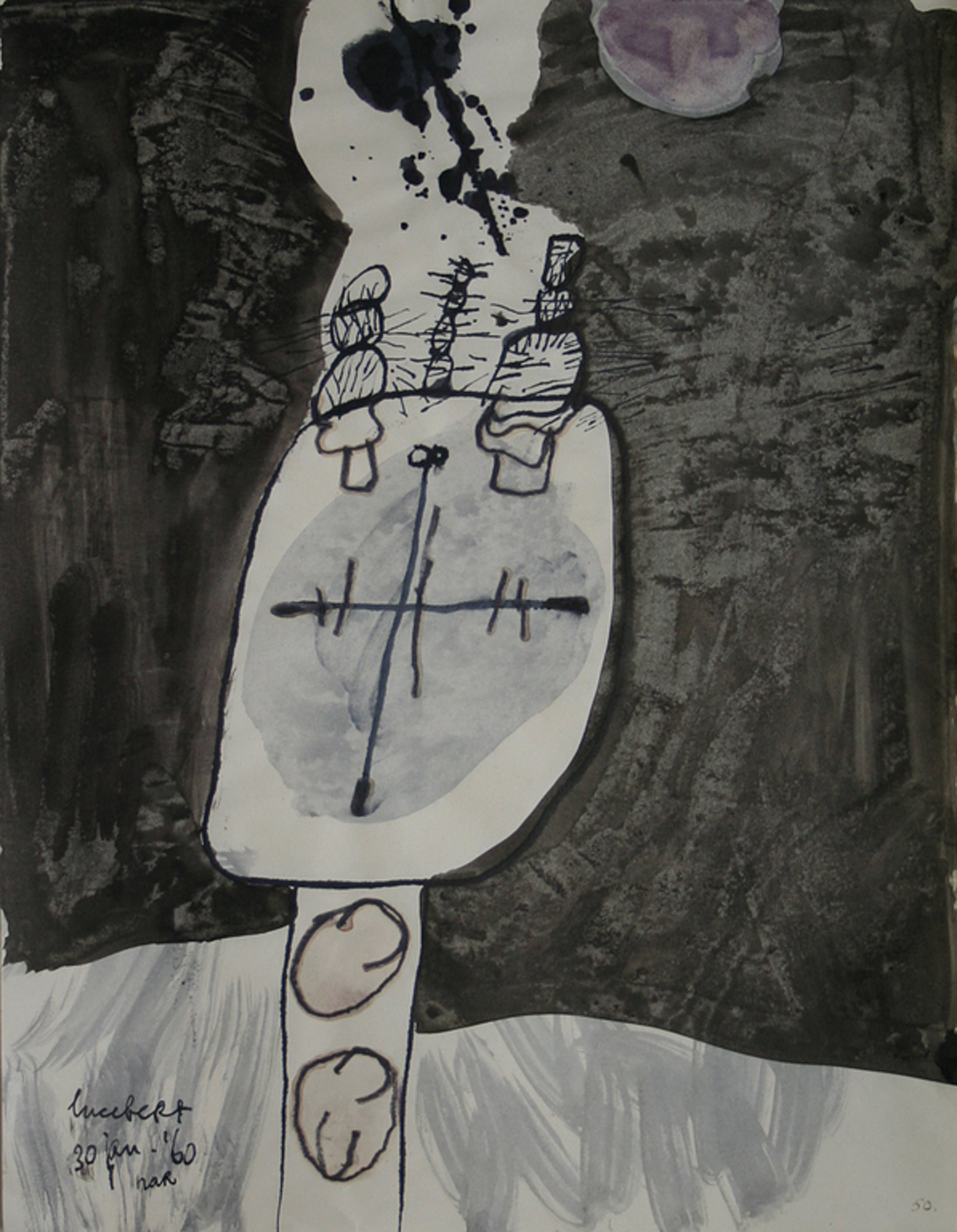 Vroege tekening/aquarel van Lucebert uit 1960. Gesigneerd, met titel en datum. Afmeting: 27x21 cm. In prima conditie.
