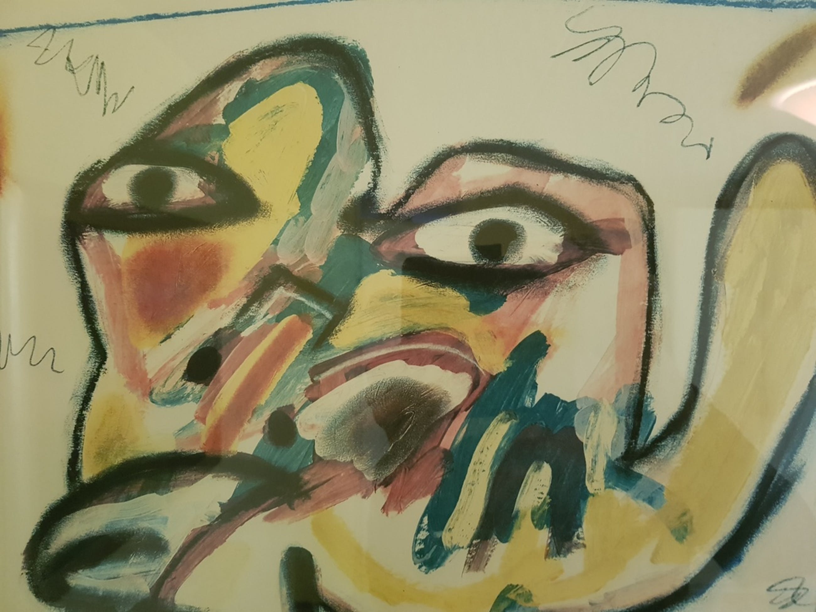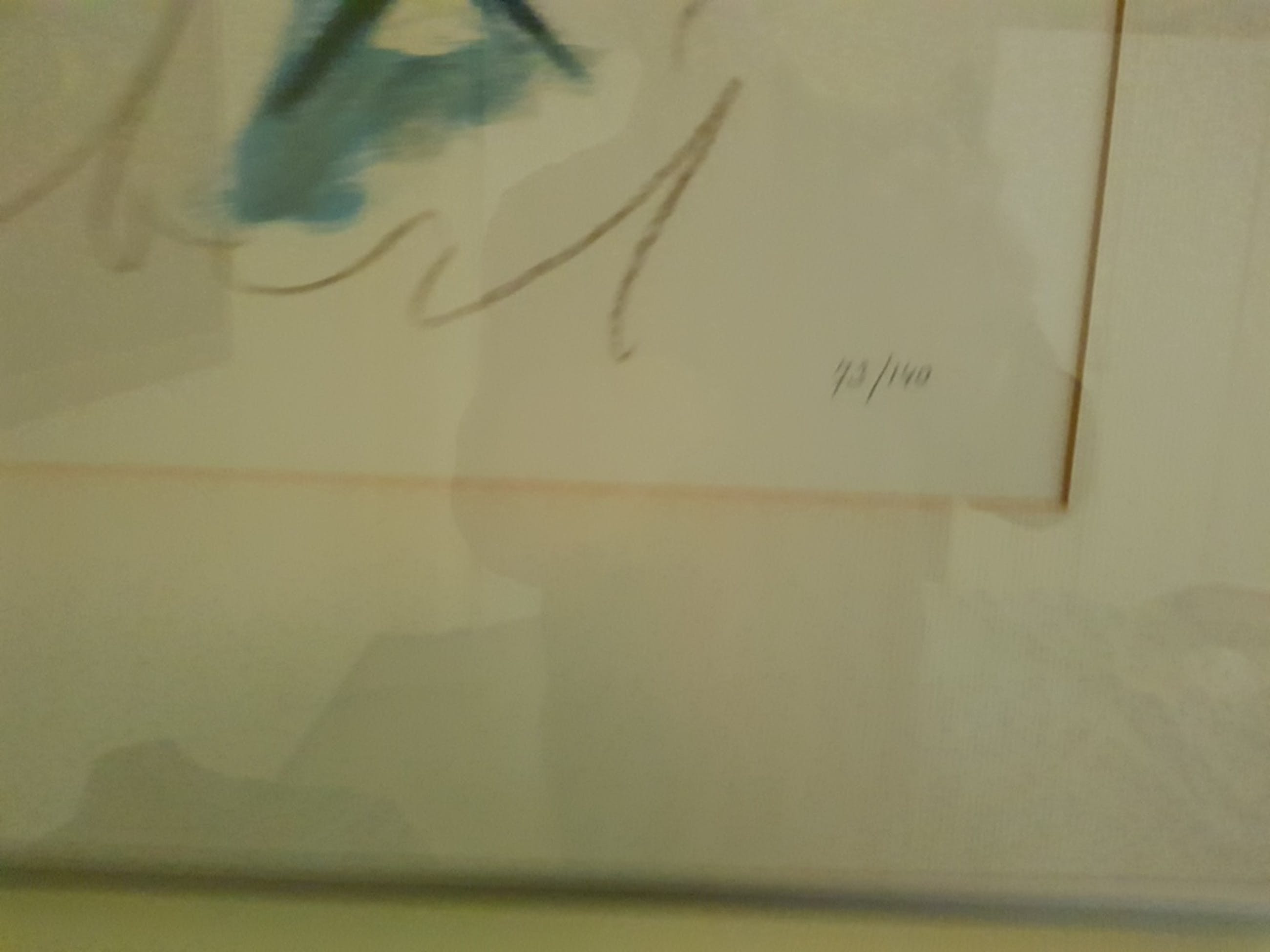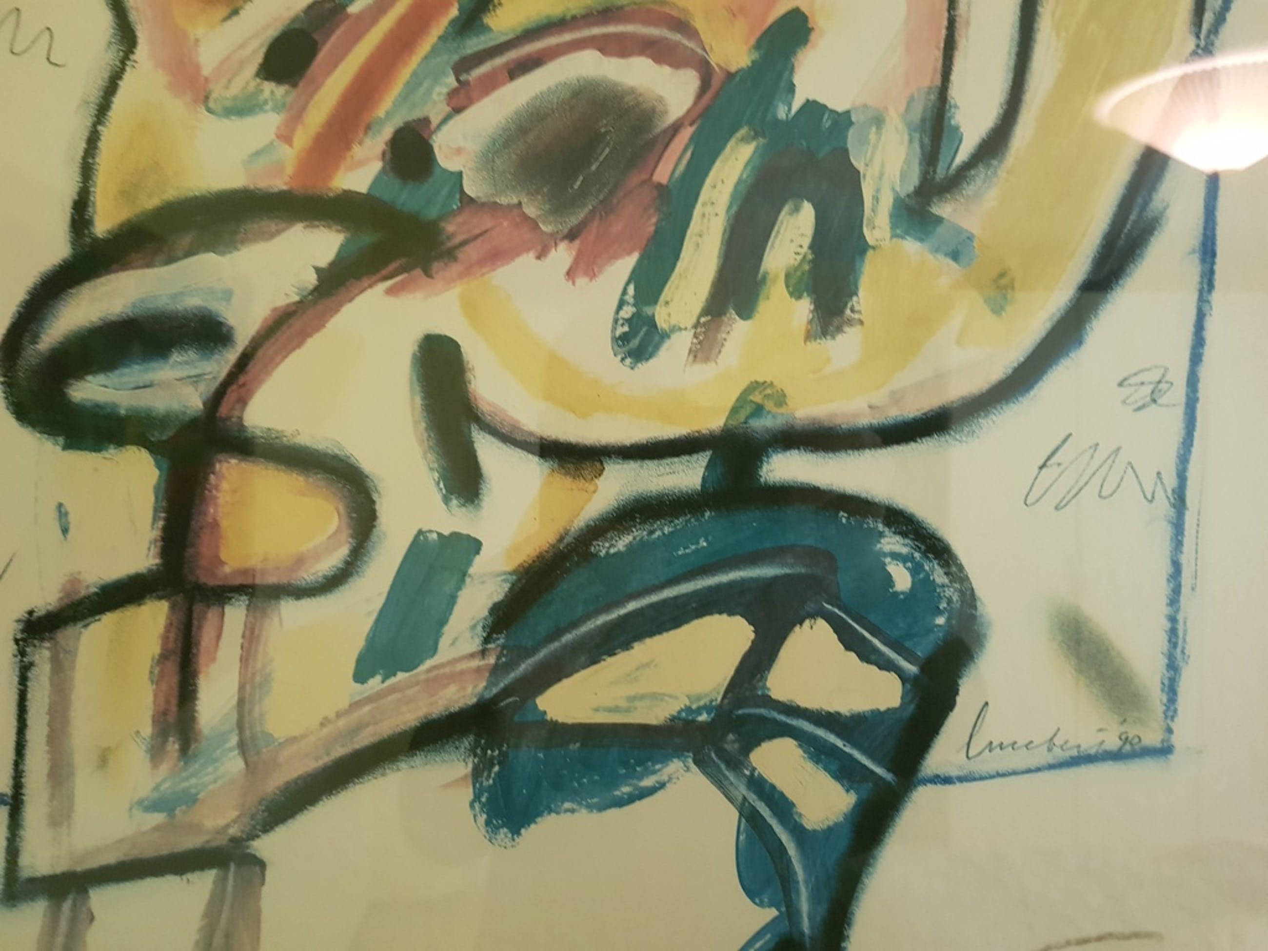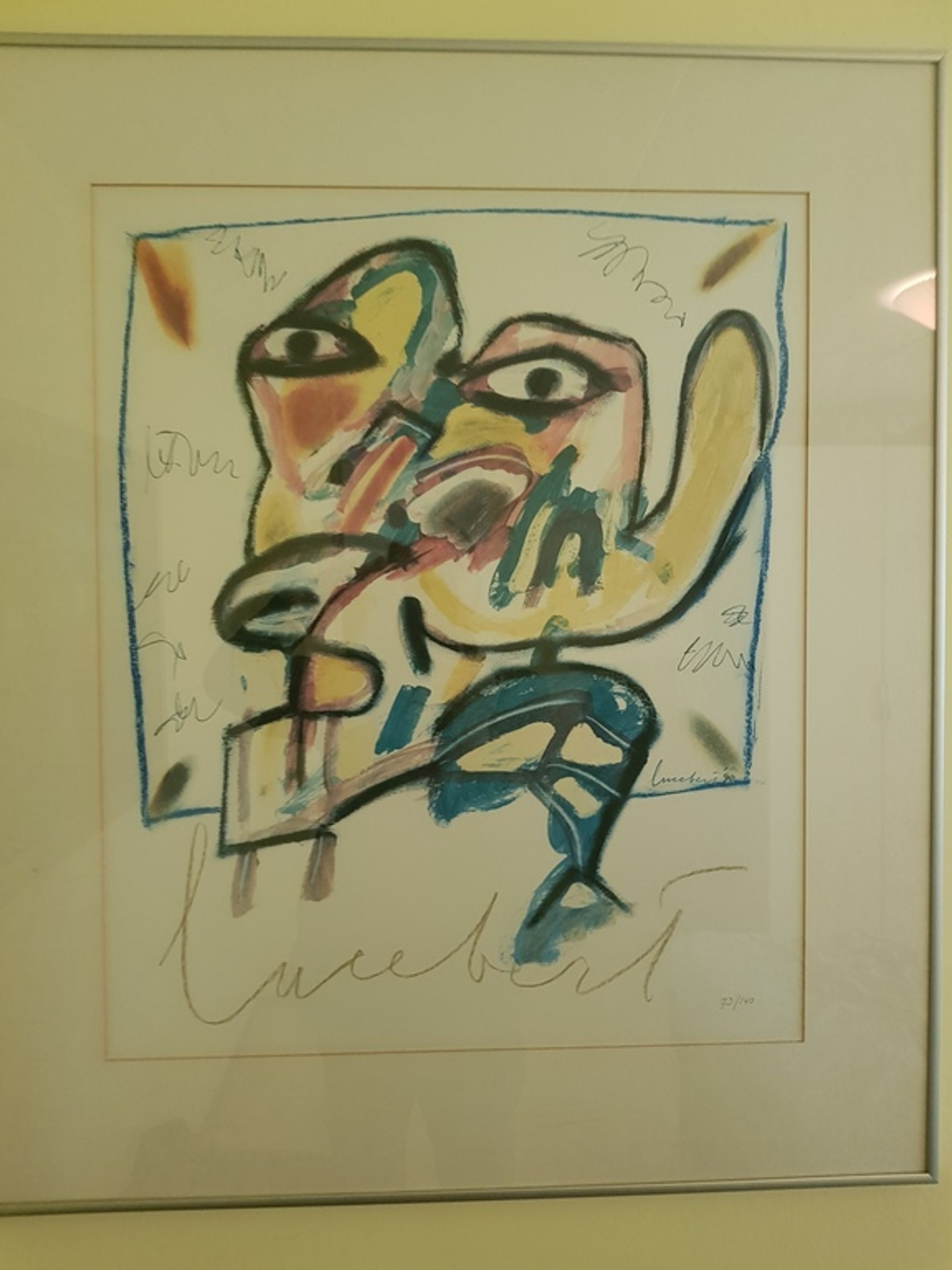 Ingelijst achter passe-partout en glas. Mooie heldere getinte kleuren. Sorry de foto komt zonder flits wat geel over, uiteraard een witte lichte heldere zeefdruk Lucebert (uitspraak: loetsjbert, pseudoniem van Lubertus Jacobus Swaanswijk (Amsterdam, 15 september 1924 Alkmaar, 10 mei 1994) was een Nederlands dichter en schilder. Als dichter werd hij gezien als de voorman van de beweging van de Vijftigers, een progressieve groep dichters die na de Tweede Wereldoorlog begon te experimenteren met vorm en inhoud. Als schilder was hij nauw betrokken bij de Amsterdams poot van de experimentele Cobra-groep.