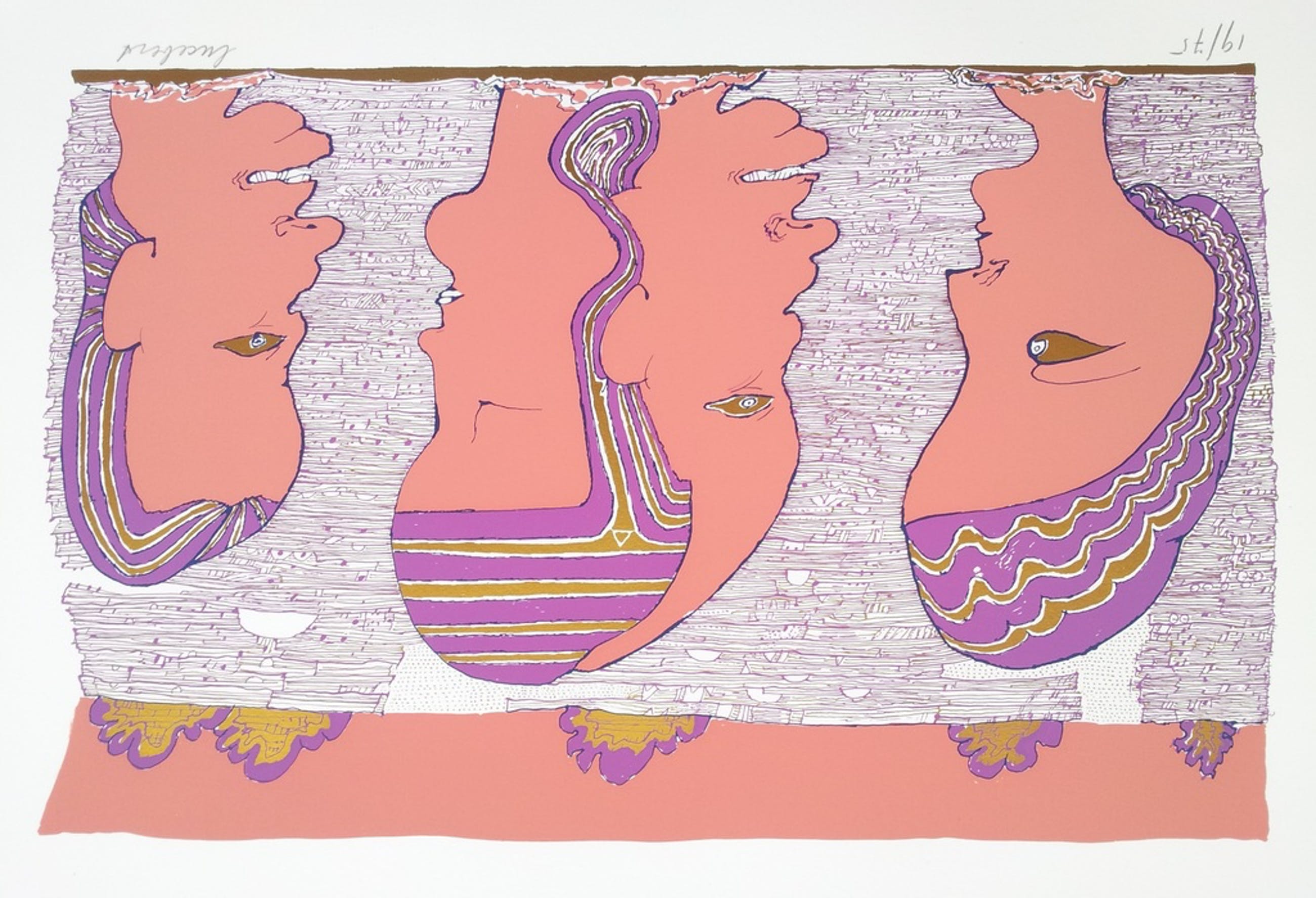 Prachtige zeefdruk uit de portfolio Buhnescreens, uit 1971.