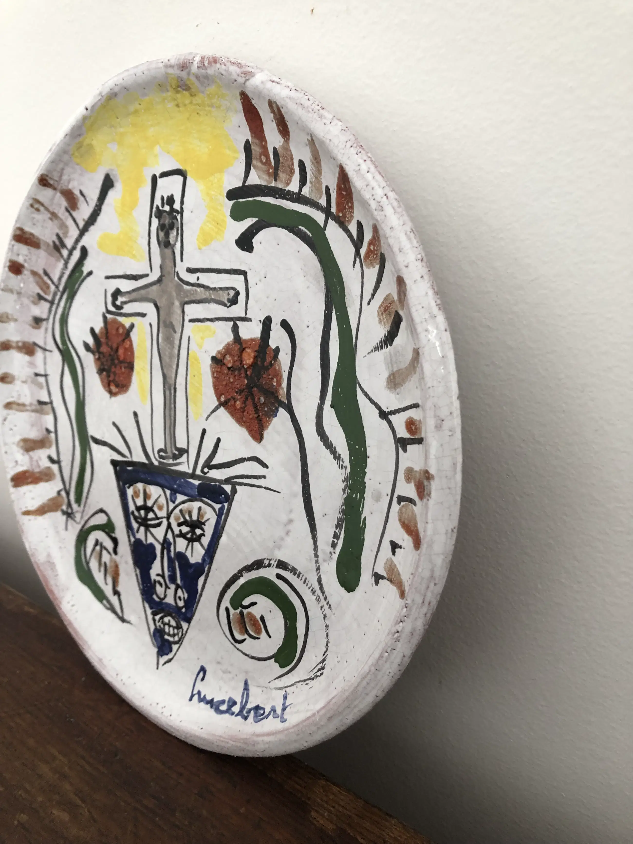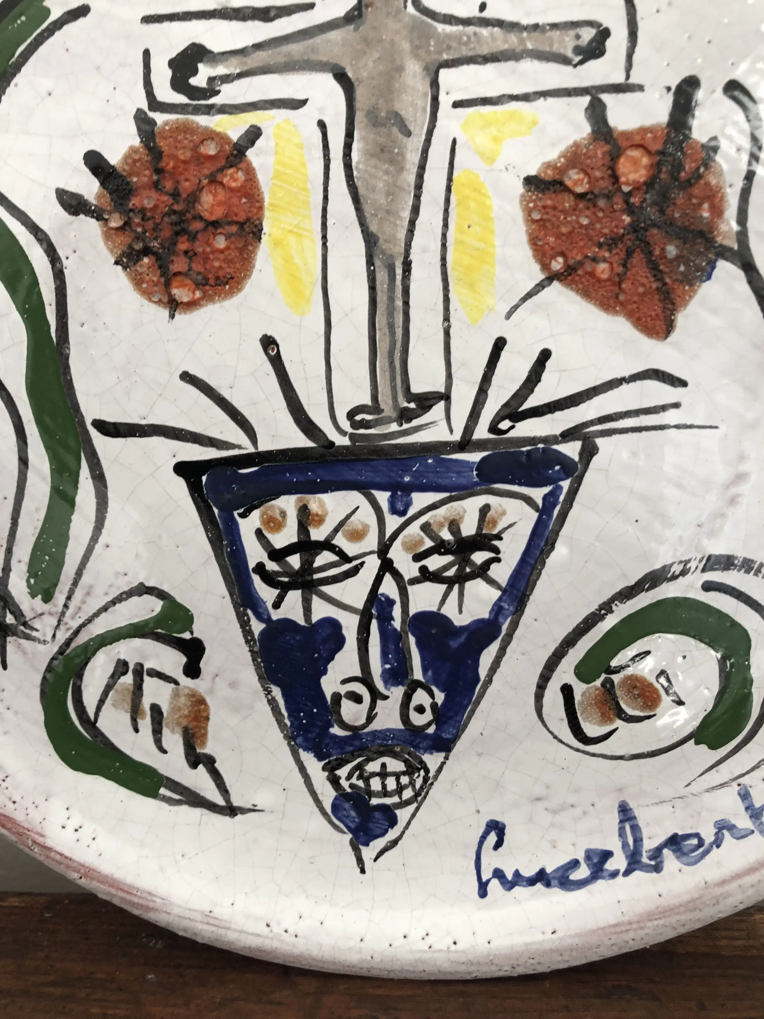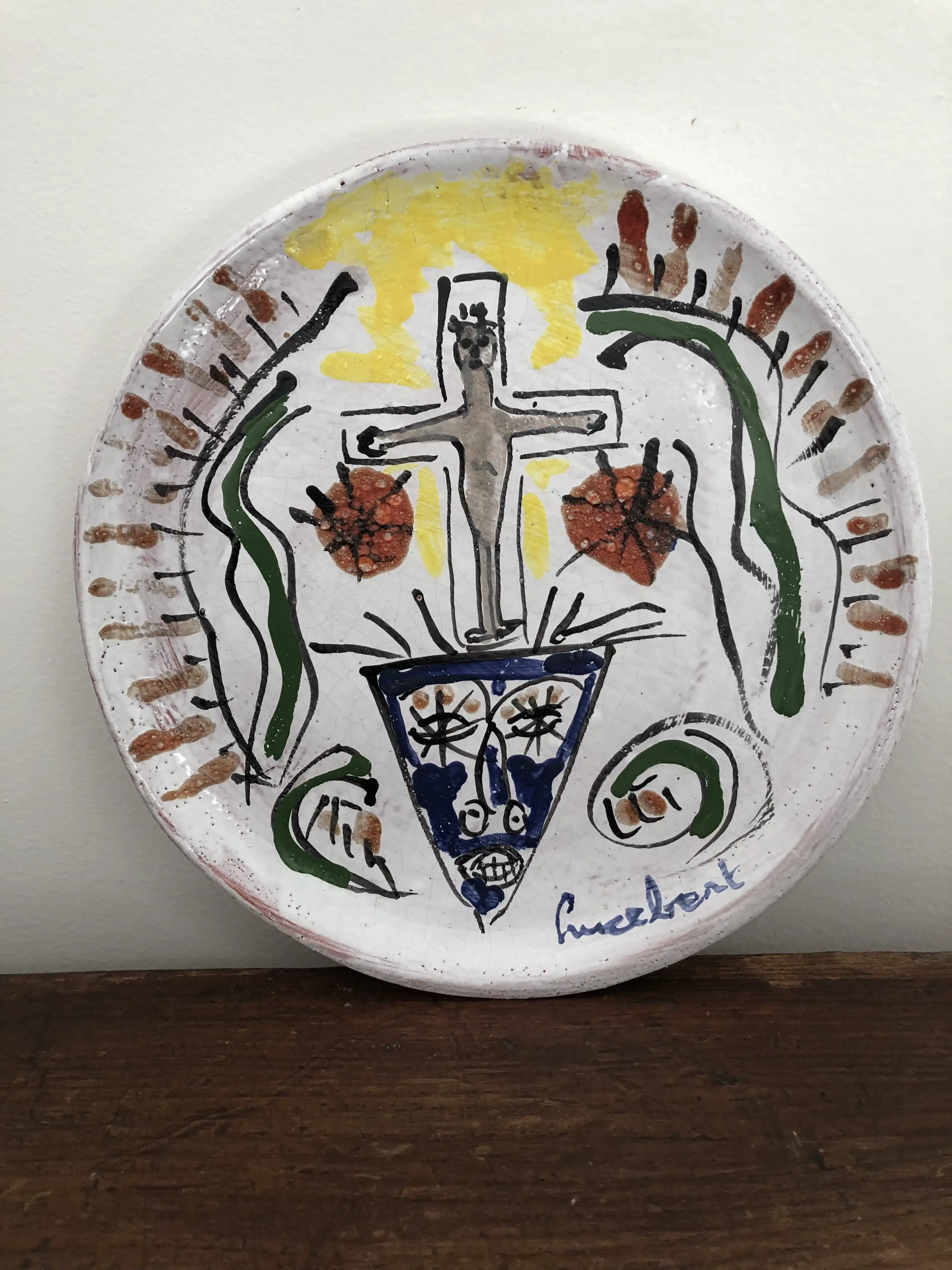 Lucebert (Lubertus Jacobus Swaanswijk) dichter, schilder, keramist. Hij bezoekt In 1938 een korte periode de kunstnijverheidsschool Quellinus te Amsterdam. In 1949 neemt hij deel aan de eerste grote Cobra expositie in het Stedelijk Museum te Amsterdam. Aan het einde van de jaren vijftig heeft Lucebert een relatie met Frieda Koch, pottenbakster in atelier De Urn. Hier maakt Lucebert voor het eerst kennis met keramiek. Aan het einde van zijn leven, tussen 1990 en 1994 ontplooit Lucebert opnieuw keramische activiteiten in het atelier van de Droysen- Keramik Galerie van Kattrin Kuhn te Berlijn. Hier ontmoet hij onder ander A.R. Penck.