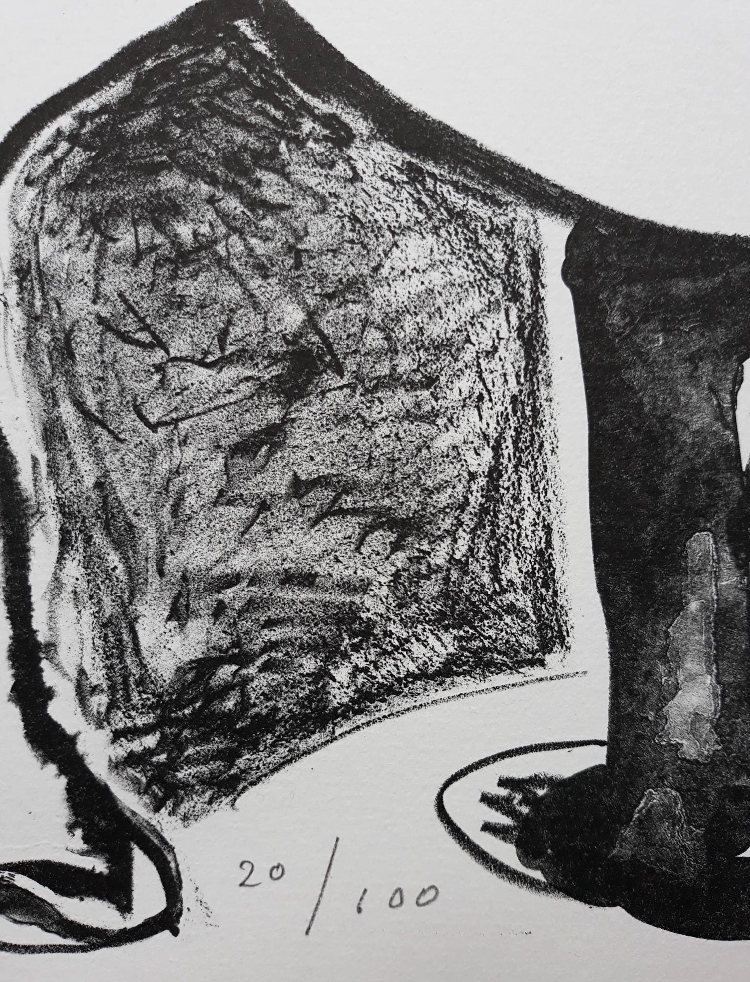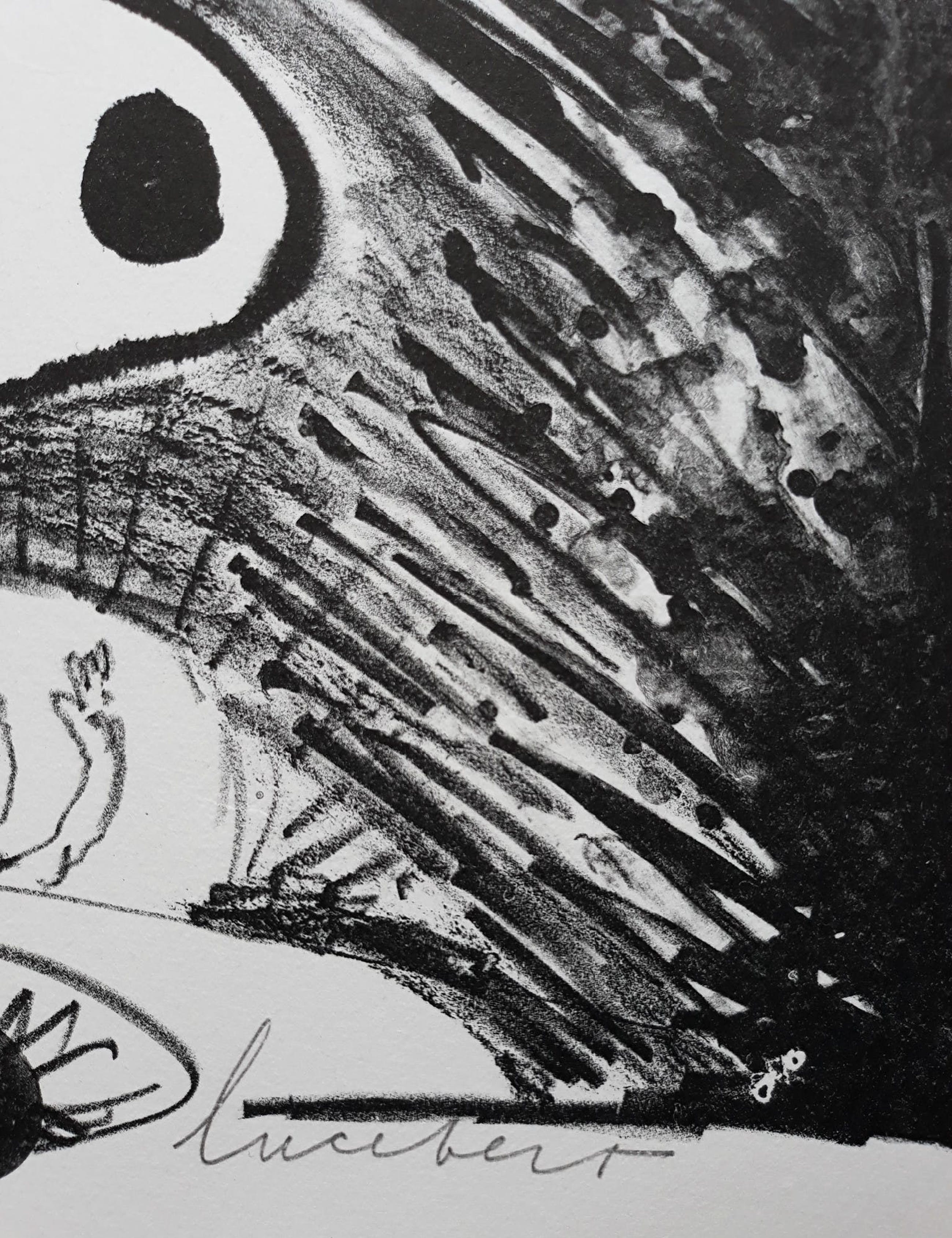 Karakteristiek werk van Lucebert. Litho op geschept papier, met potlood gesigneerd en genummerd (20/100). In zeer goede conditie.