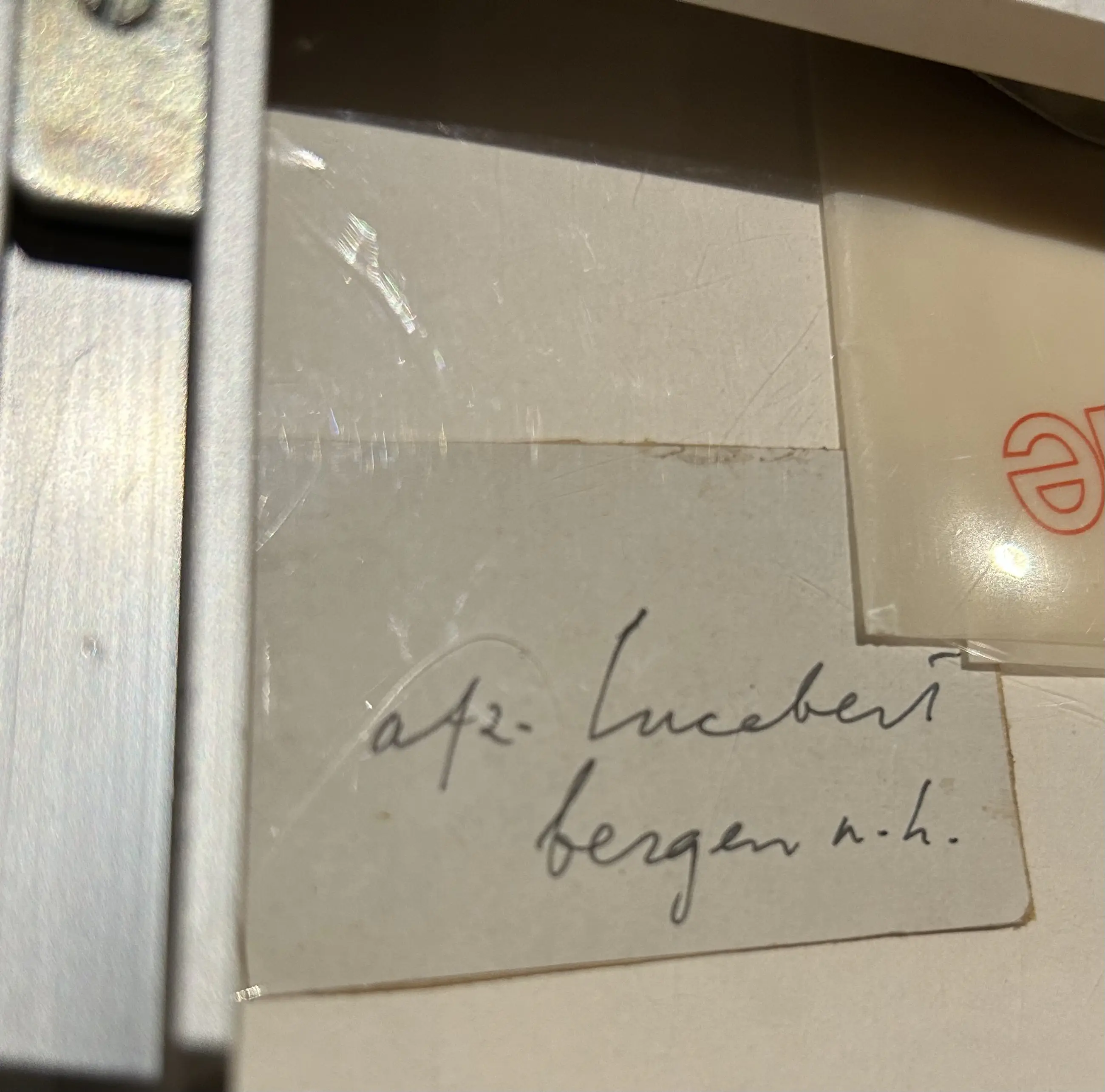 Prachtig in diepe metalen lijst geplaatst met glas aan de voorzijde en plexiglas aan de achterzijde zodat de herkomststickers (Sotheby’s) goed zichtbaar zijn.