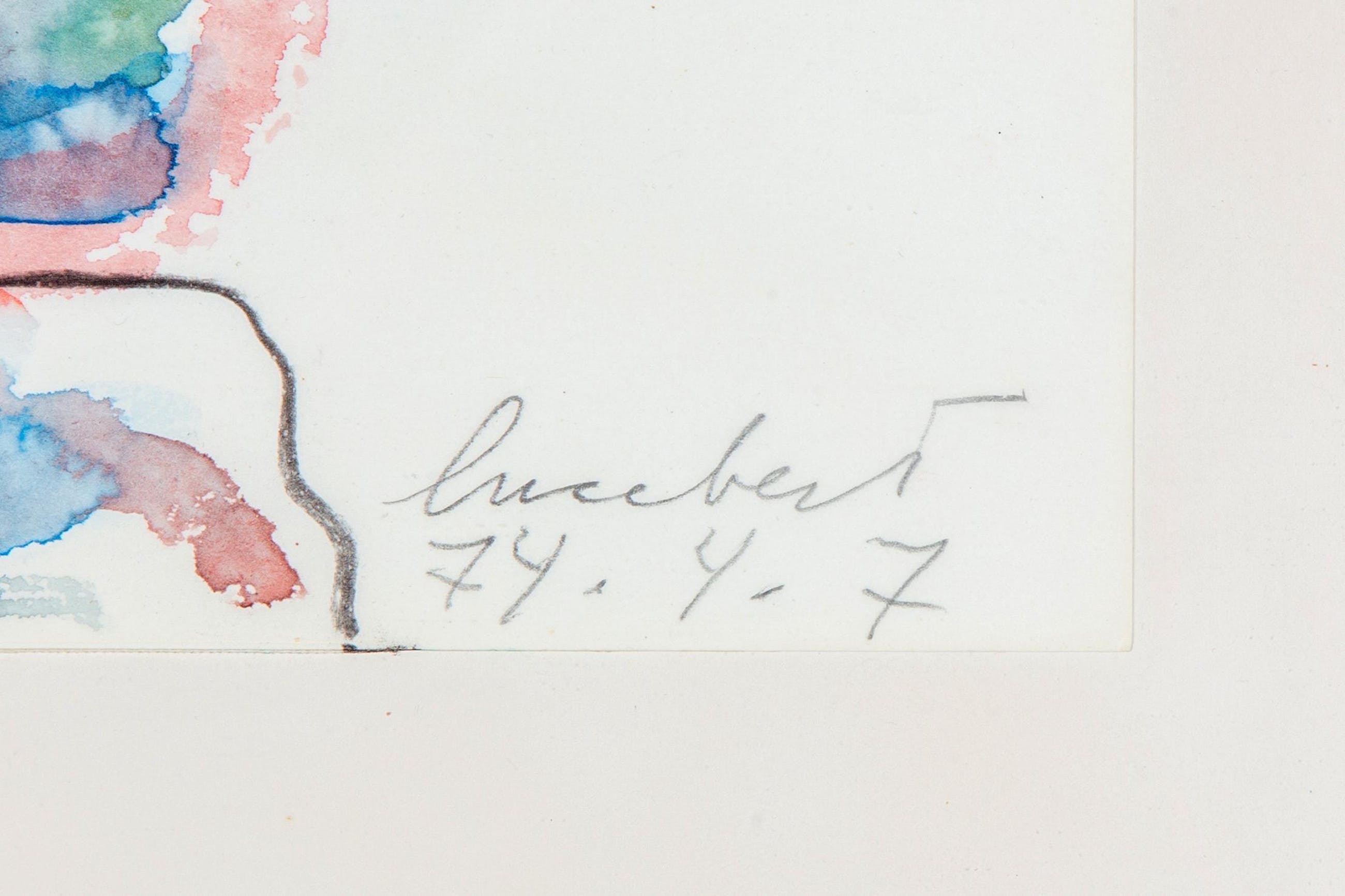 Prachtige gemengde techniek (houtskool, aquarel) op papier van Lucebert. Afmetingen voorstelling : H34,5 x b 47 cm. Gesigneerd en gedateerd "Lucebert" 74.4.7 (rechts onder). Jaar: 1974. Herkomst : Collectie Dommering, gekocht bij galerie Nouvelles Images te Den Haag (zie tekst onderaan deze kavel). De authenticiteit van het, aangeboden, werk wordt volledig gegarandeerd. Een certificaat van echtheid kan, op aanvraag, worden gemaild.