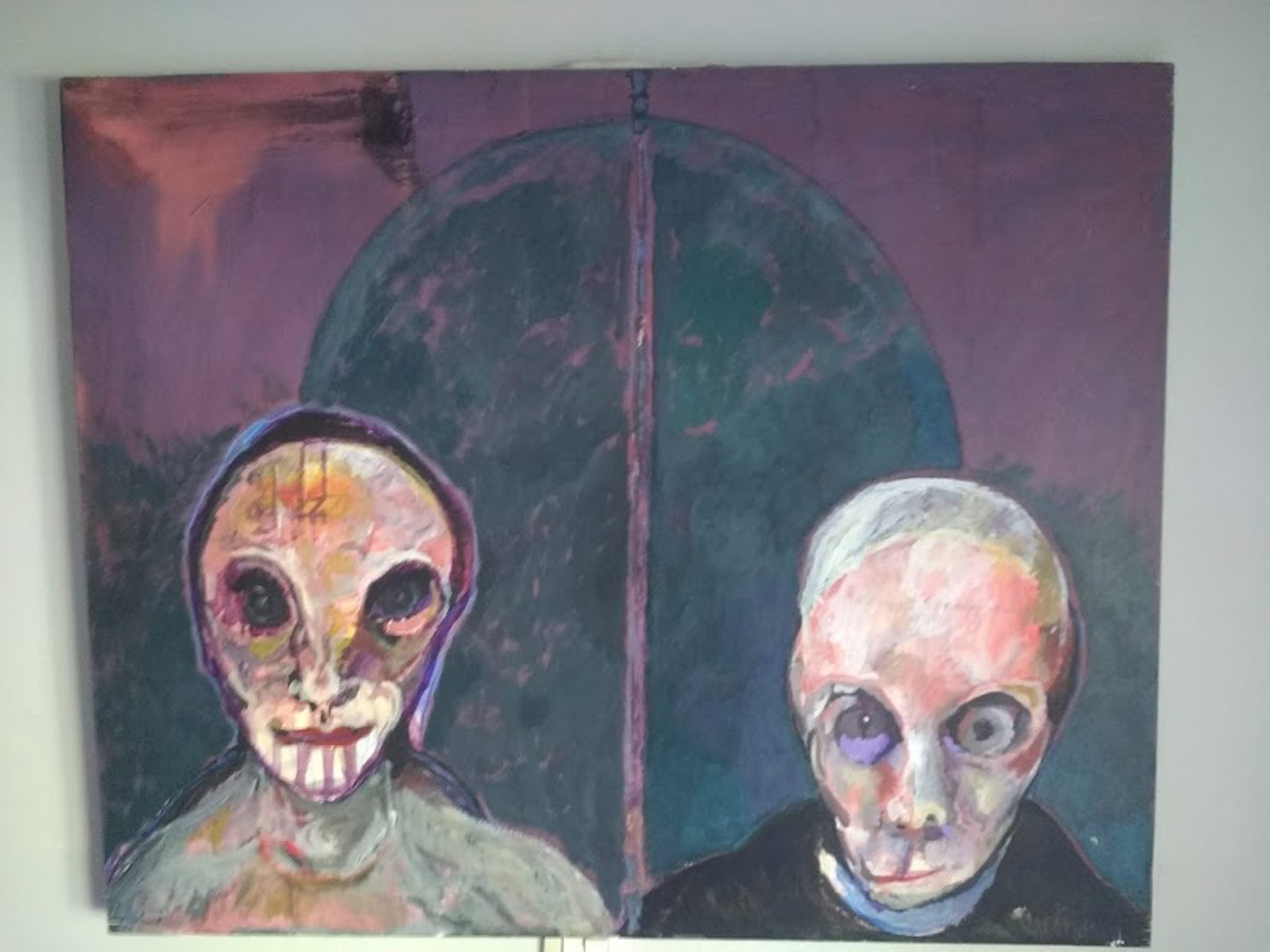 Origineel schilderij van LUCEBERT Olie op linnen Handgesigneerd links onderaan en gedateerd '80 (1980) Opgespannen op stevig houten raam, kan zo aan de muur