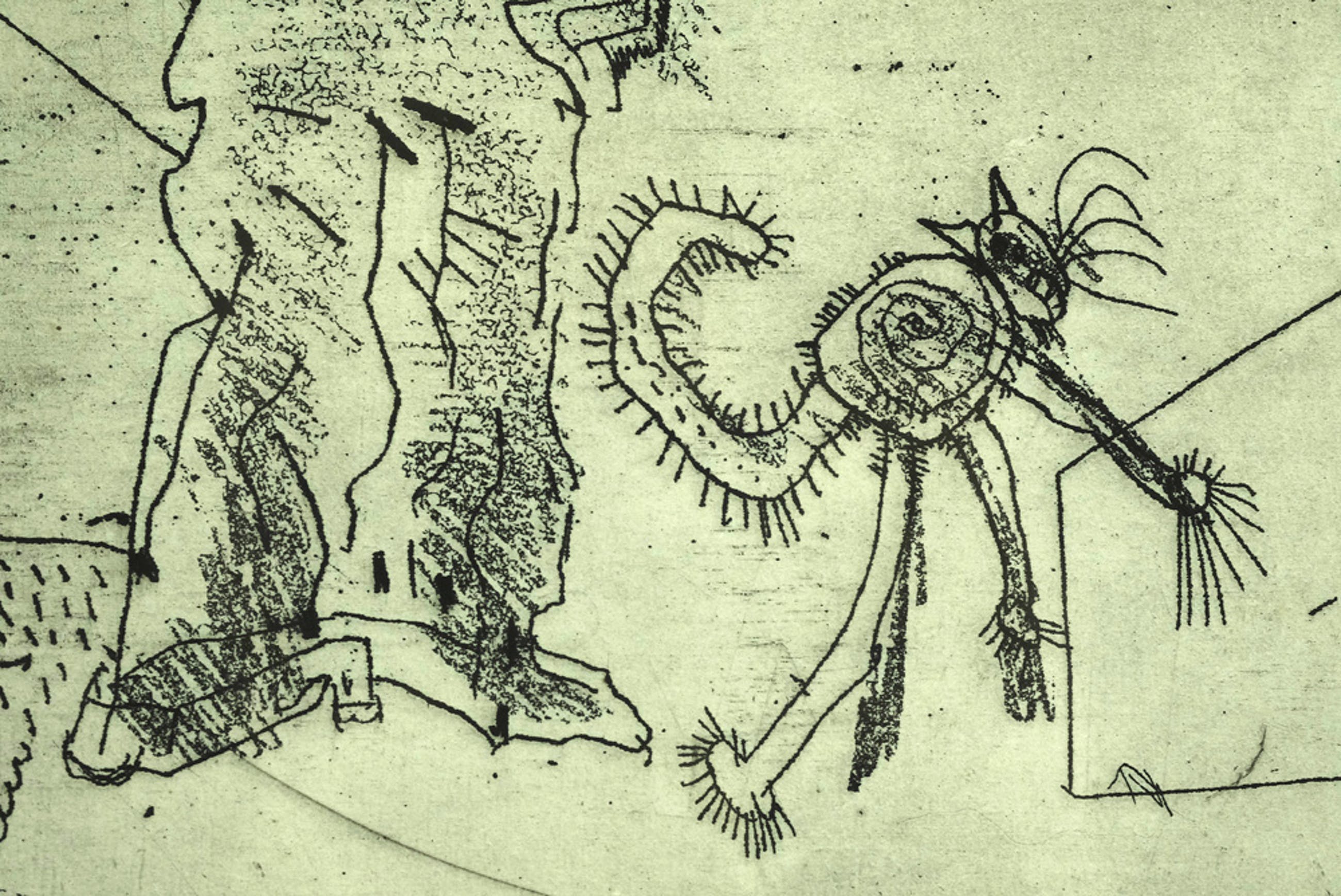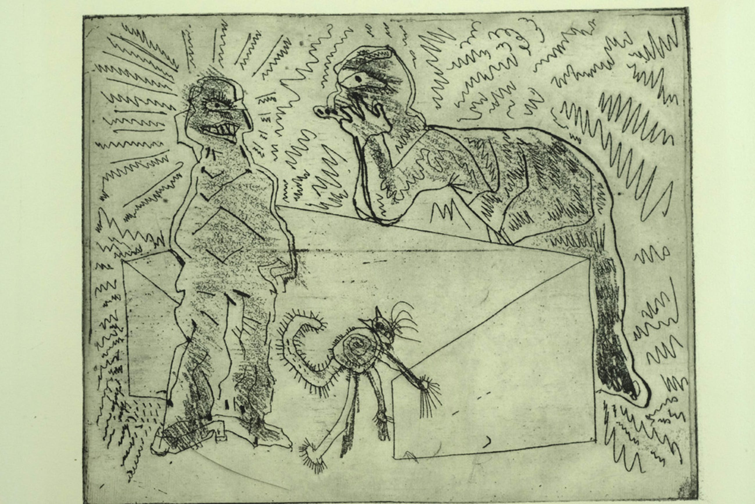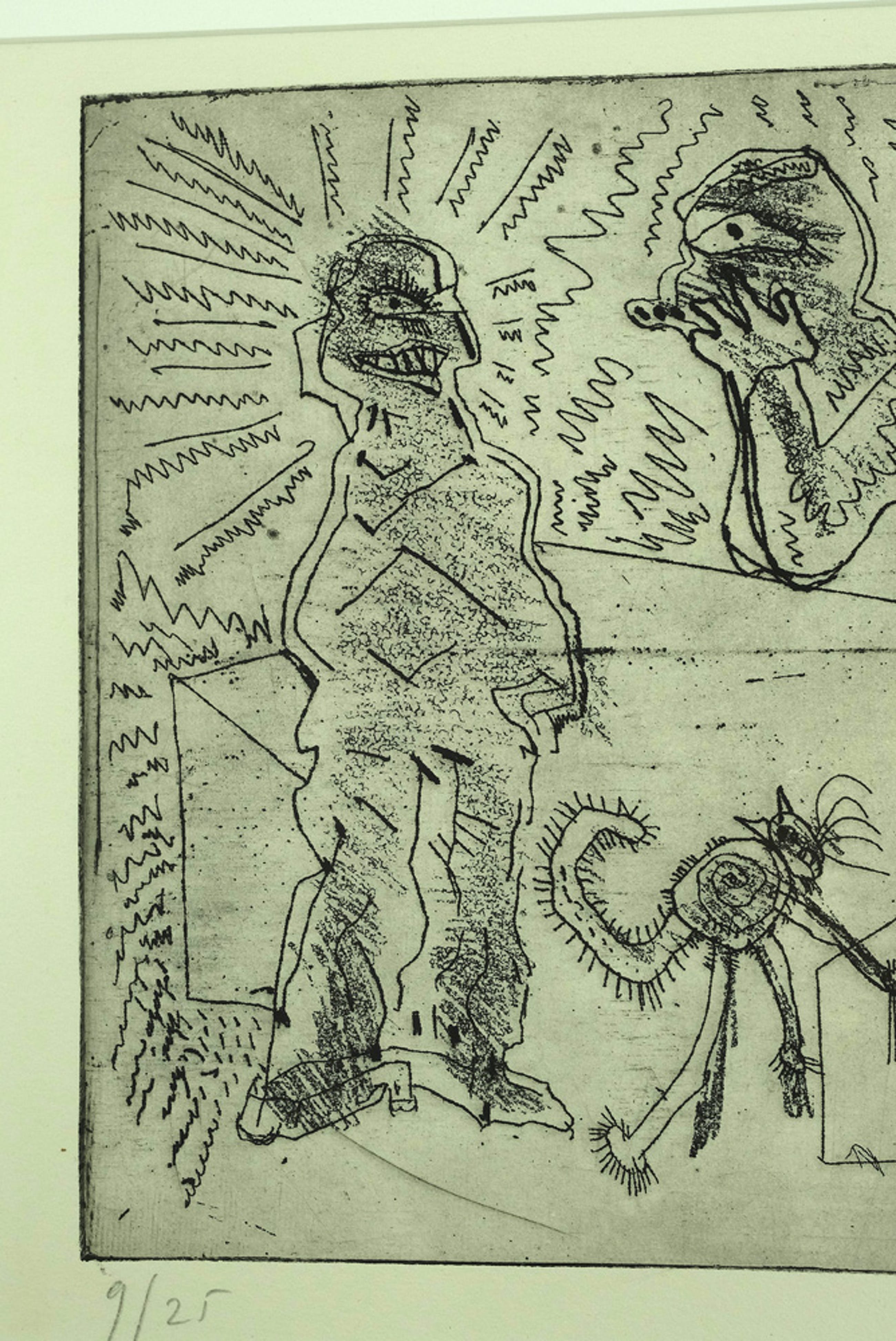 Het werk is op kenmerkende wijze vervaardigd door de bekende Nederlandse kunstenaar Lucebert (1924-1994) (Lubertus Jacobus Swaanswijk).