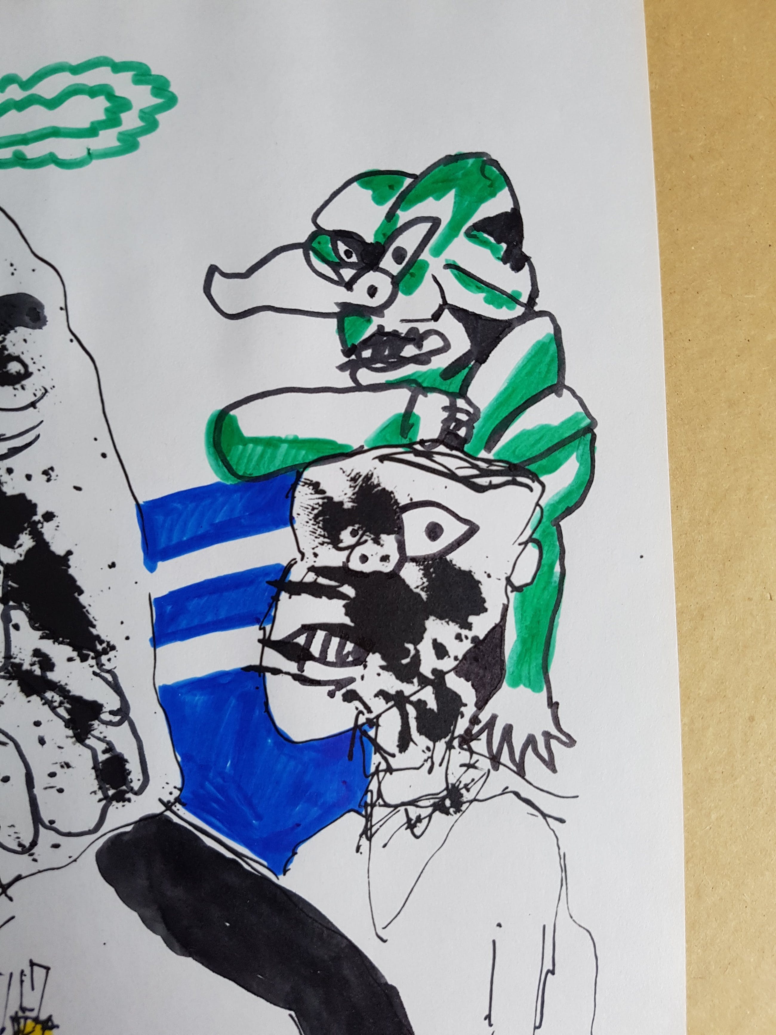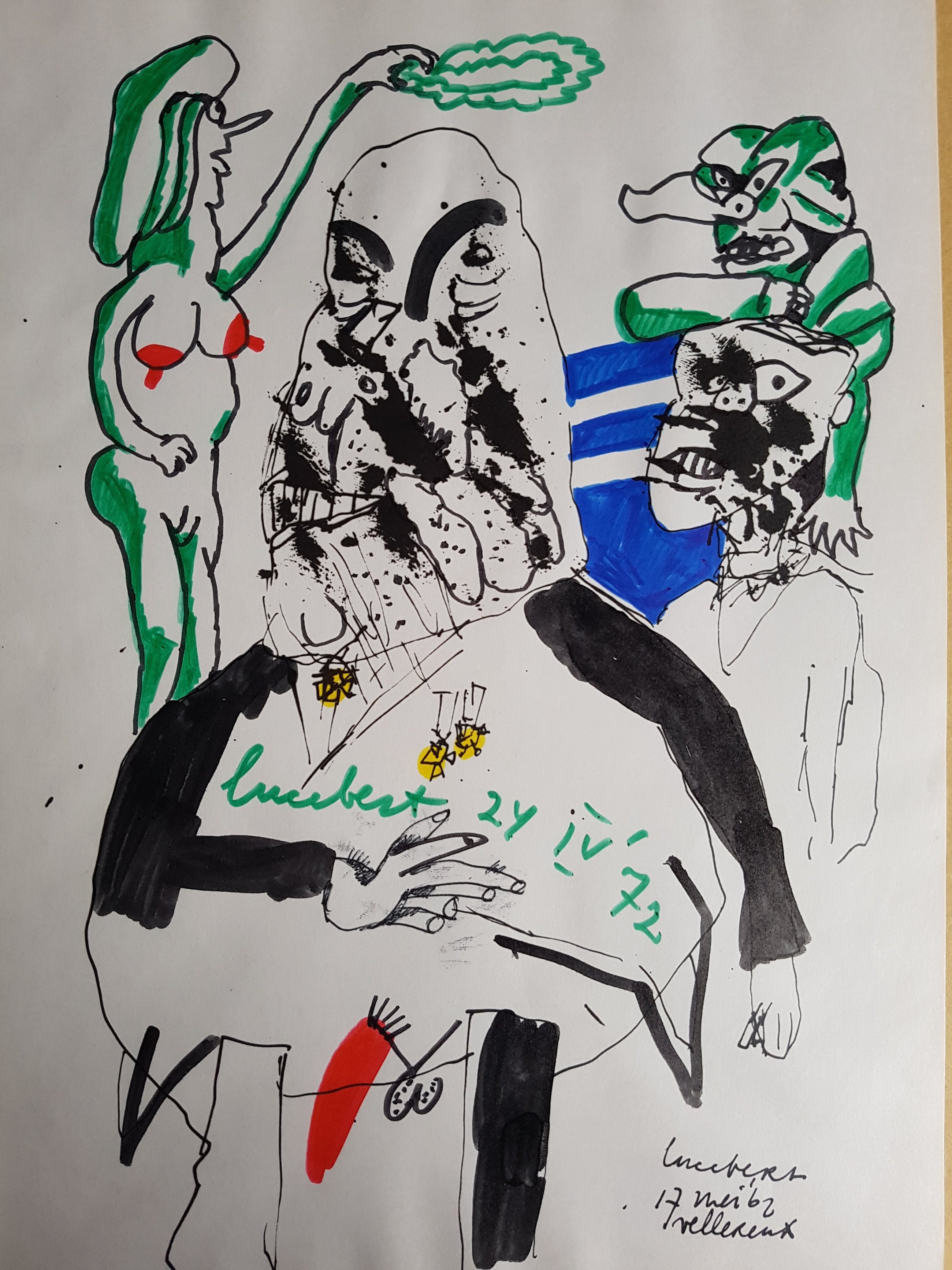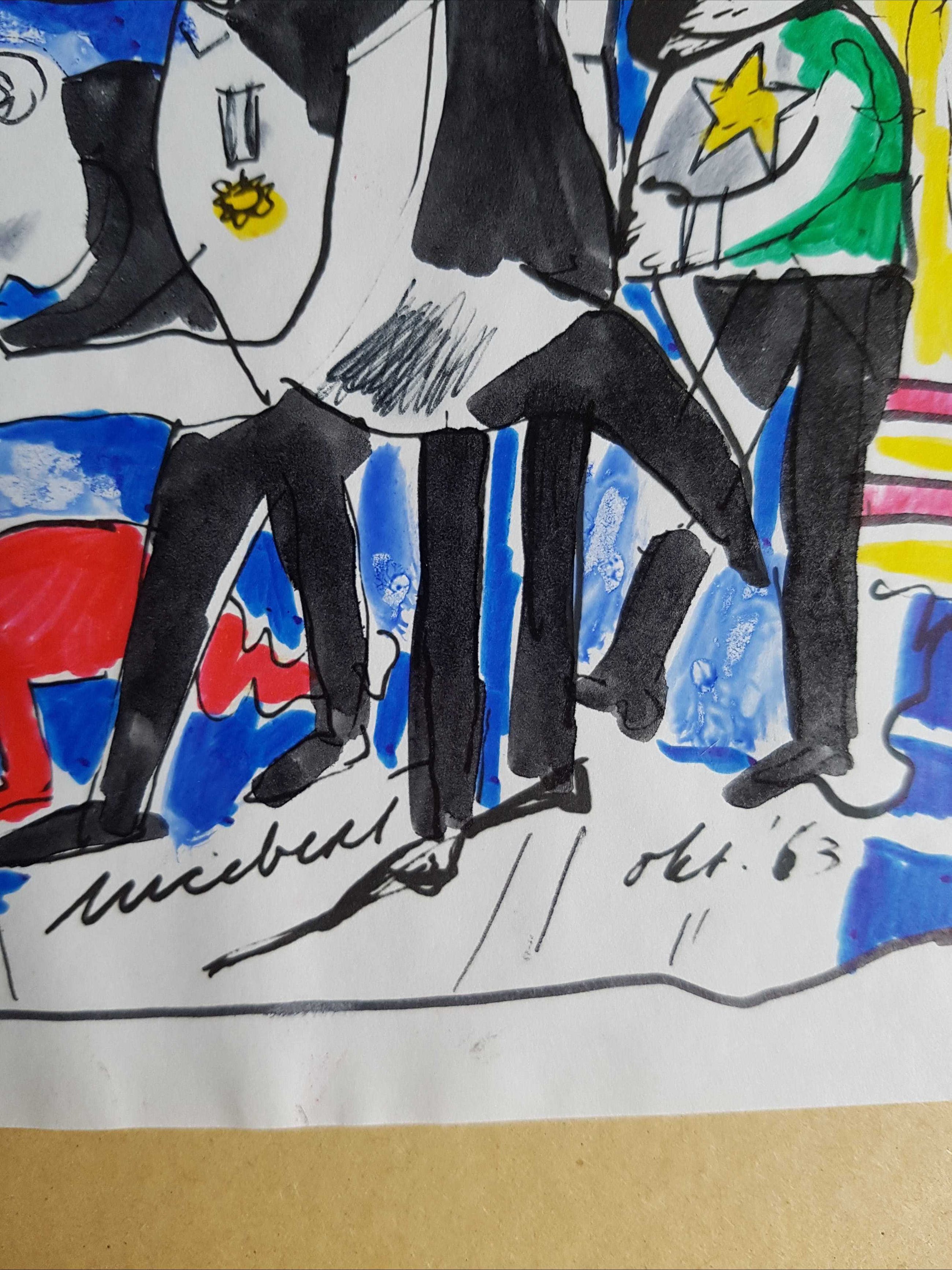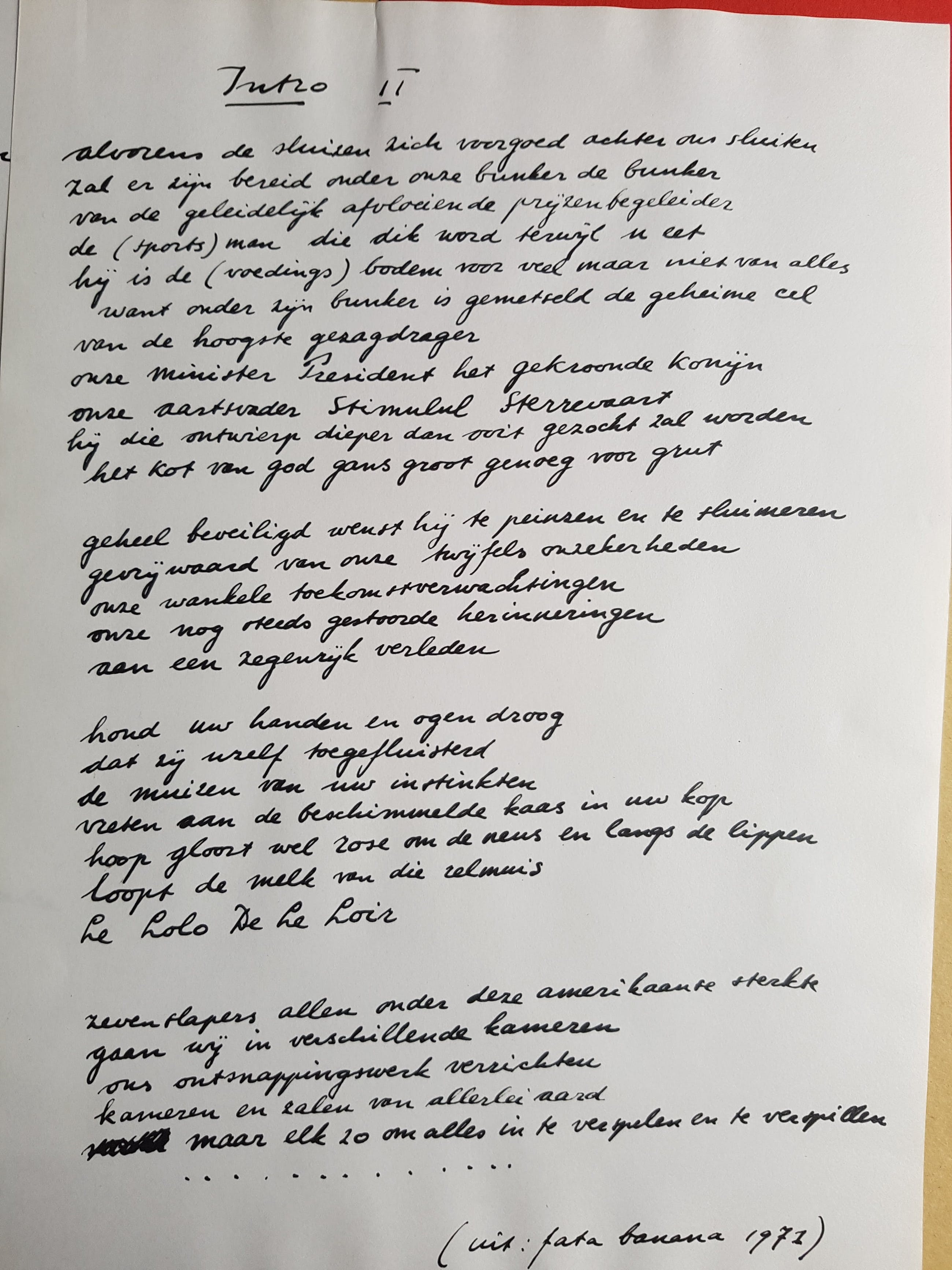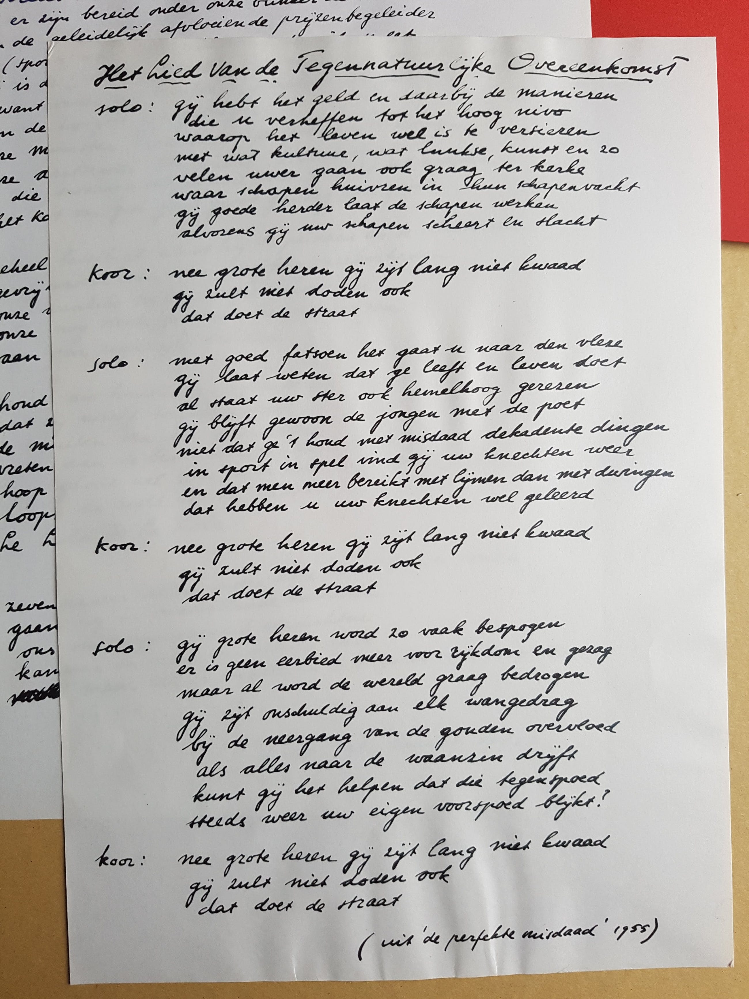 gedichten en 2 tekeningen afgedrukt in 1972 in een oplage van 55 De afgedrukte tekeningen zijn met de hand met viltstift ingekleurd en bijgetekend. Gedateerd 1962 en 1963 in de druk en nogmaals met de hand opnieuw gedateerd en gesigneerd Elk exemplaar is uniek Tekeningen zijn oorspronkelijk gepubliceerd in de bundel Morgen de hele Wereld, blz 76 en