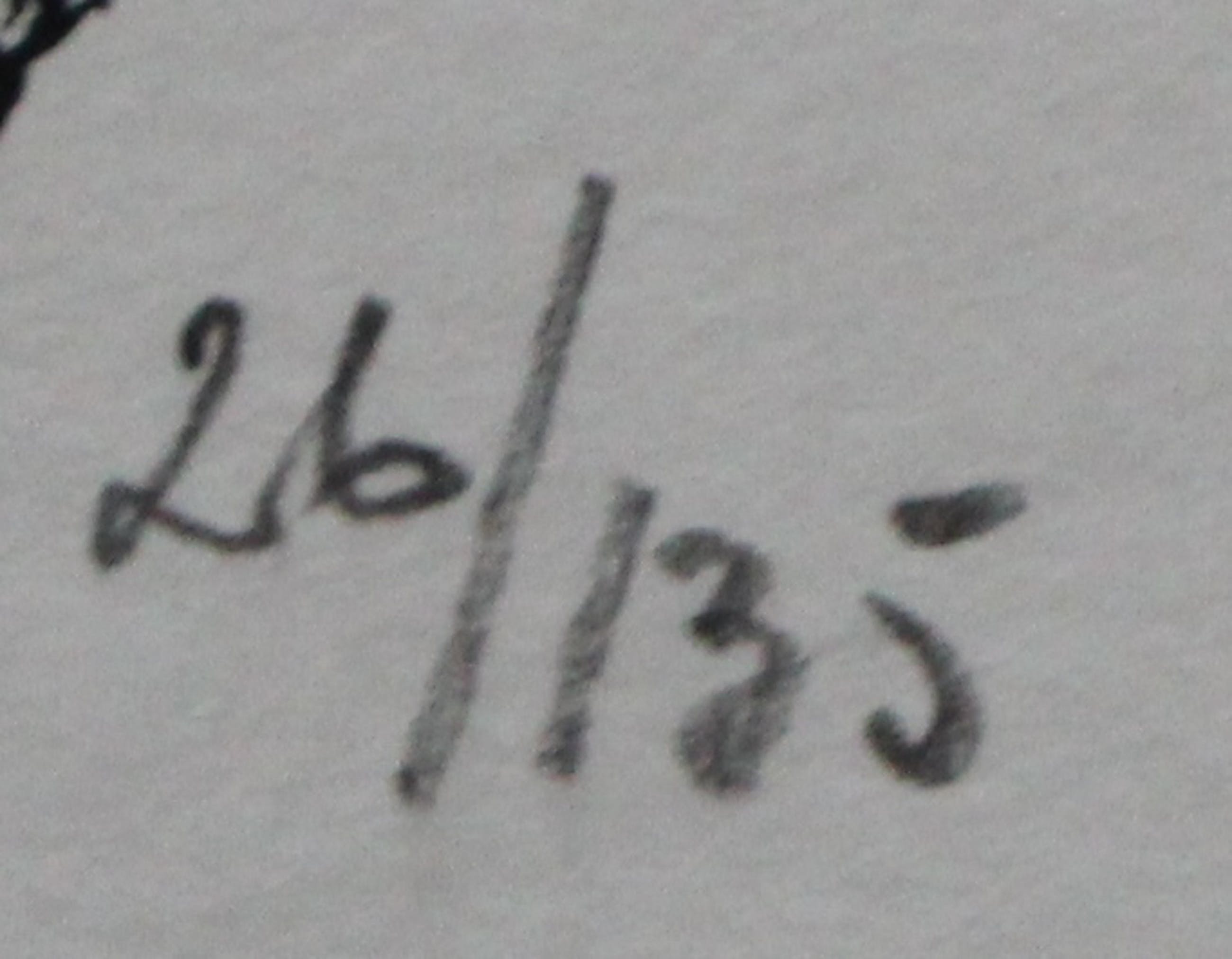 Jaar: 1990. Nummer: 26/135. Afmetingen werk: H32 x b32cm. Afmetingen voorstelling: H27.5 x b28cm. Het werk is rechts onderaan, met potlood, gesigneerd door de kunstenaar. De authenticiteit van het, aangeboden, werk wordt volledig gegarandeerd. Een certificaat van echtheid kan, op aanvraag, worden gemaild.