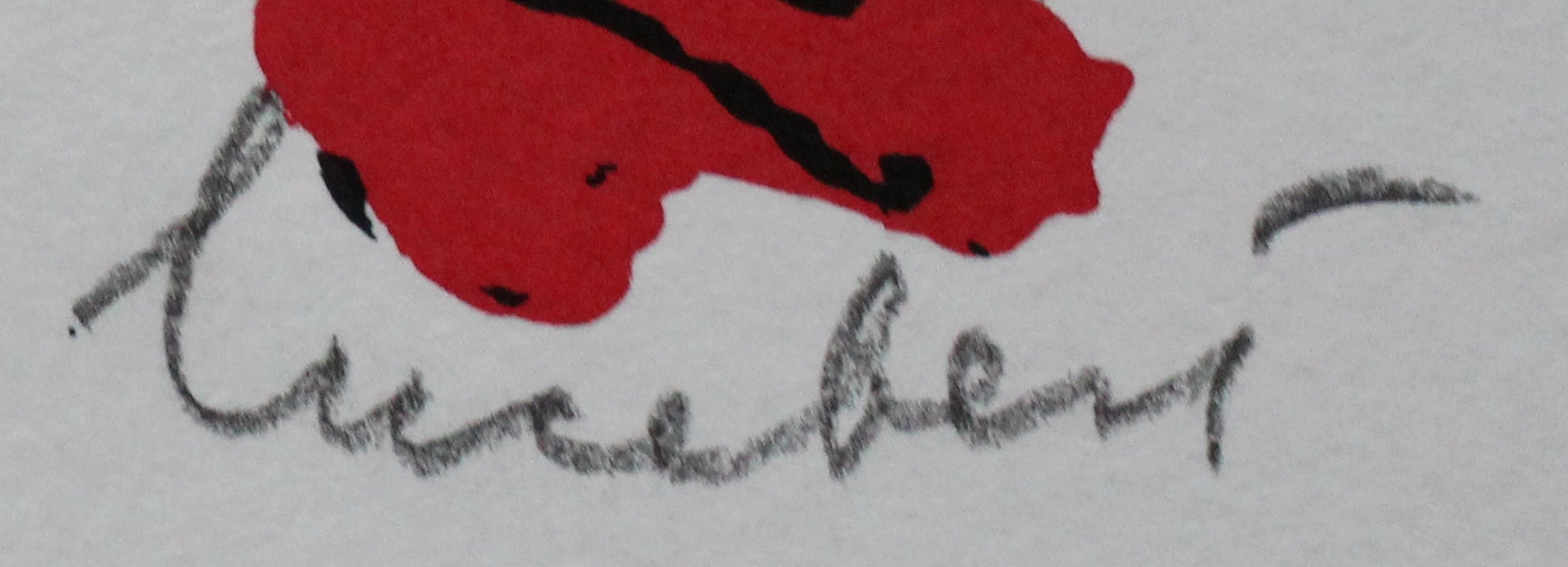 Zeefdruk van Lucebert. Met een gedicht van Remco Campert: Lof van de schilders. Zo worden ze zelden aangeboden, incl gedicht!