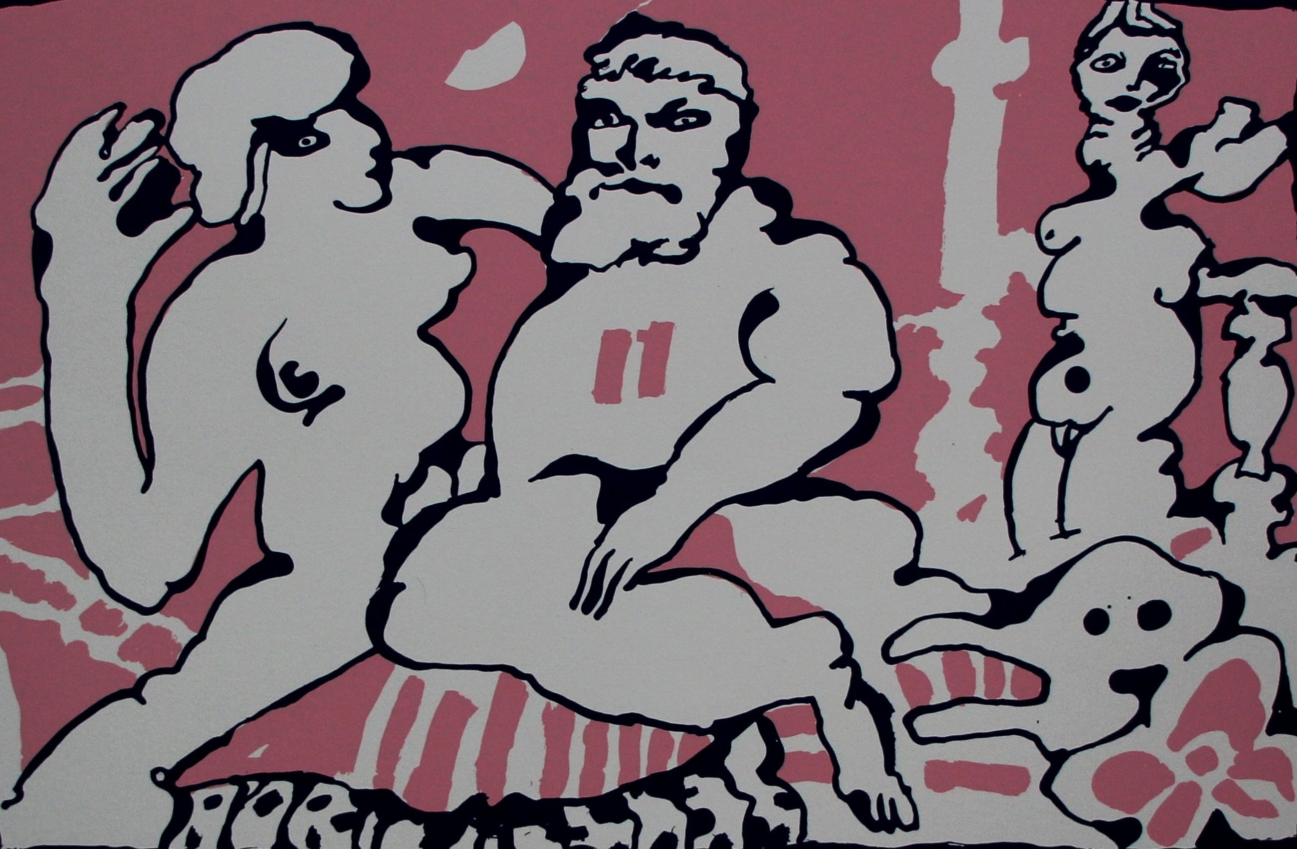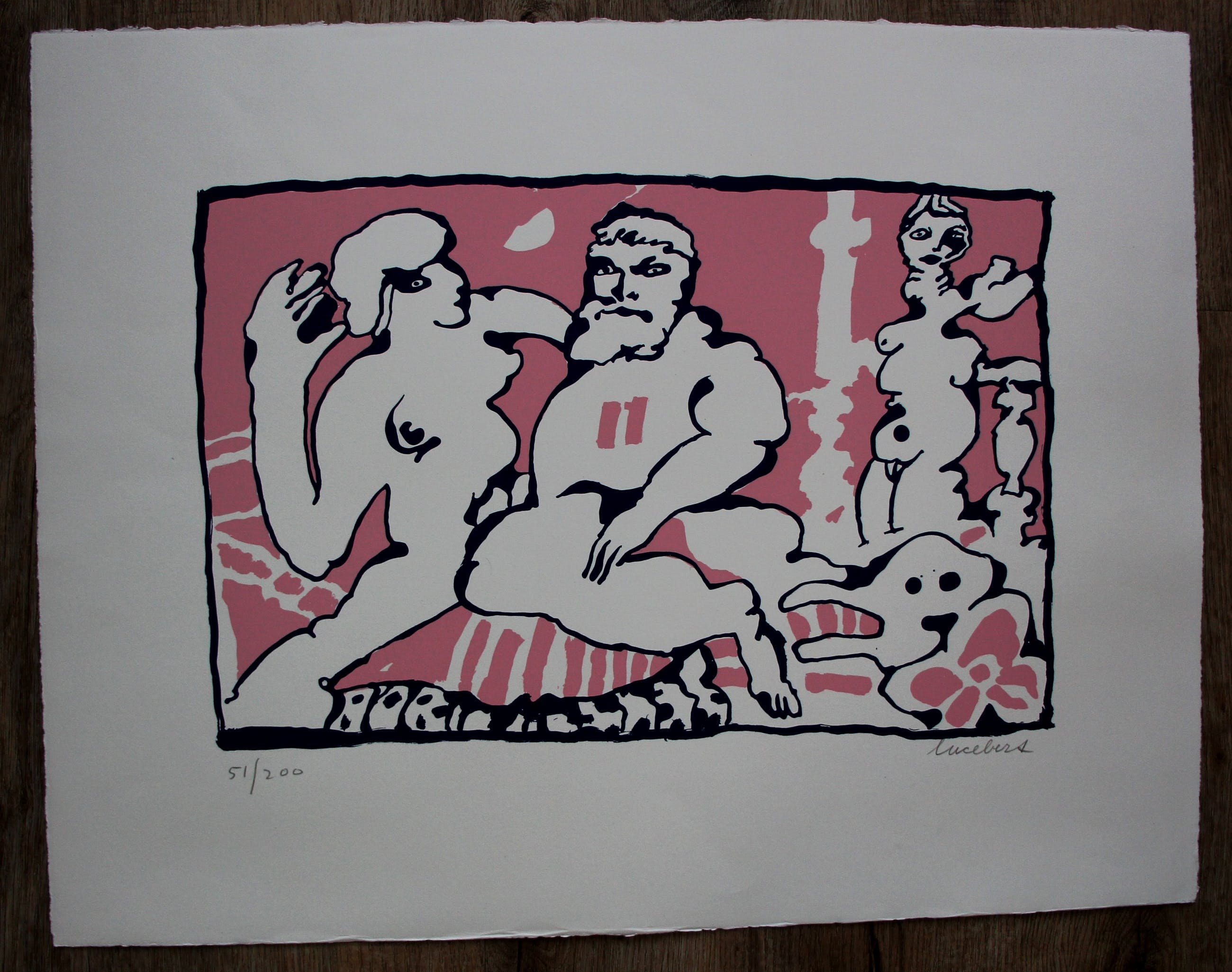 Zeefdruk van Lucebert. Nummer: 51/200. Afmetingen blad: H50.5 x b66cm. Afmetingen voorstelling: H31.5 x b48cm. Het werk is rechts onderin, met potlood, gesigneerd door de kunstenaar. De authenticiteit van het werk wordt volledig gegarandeerd. Een certificaat van echtheid kan, op aanvraag, worden gemaild.