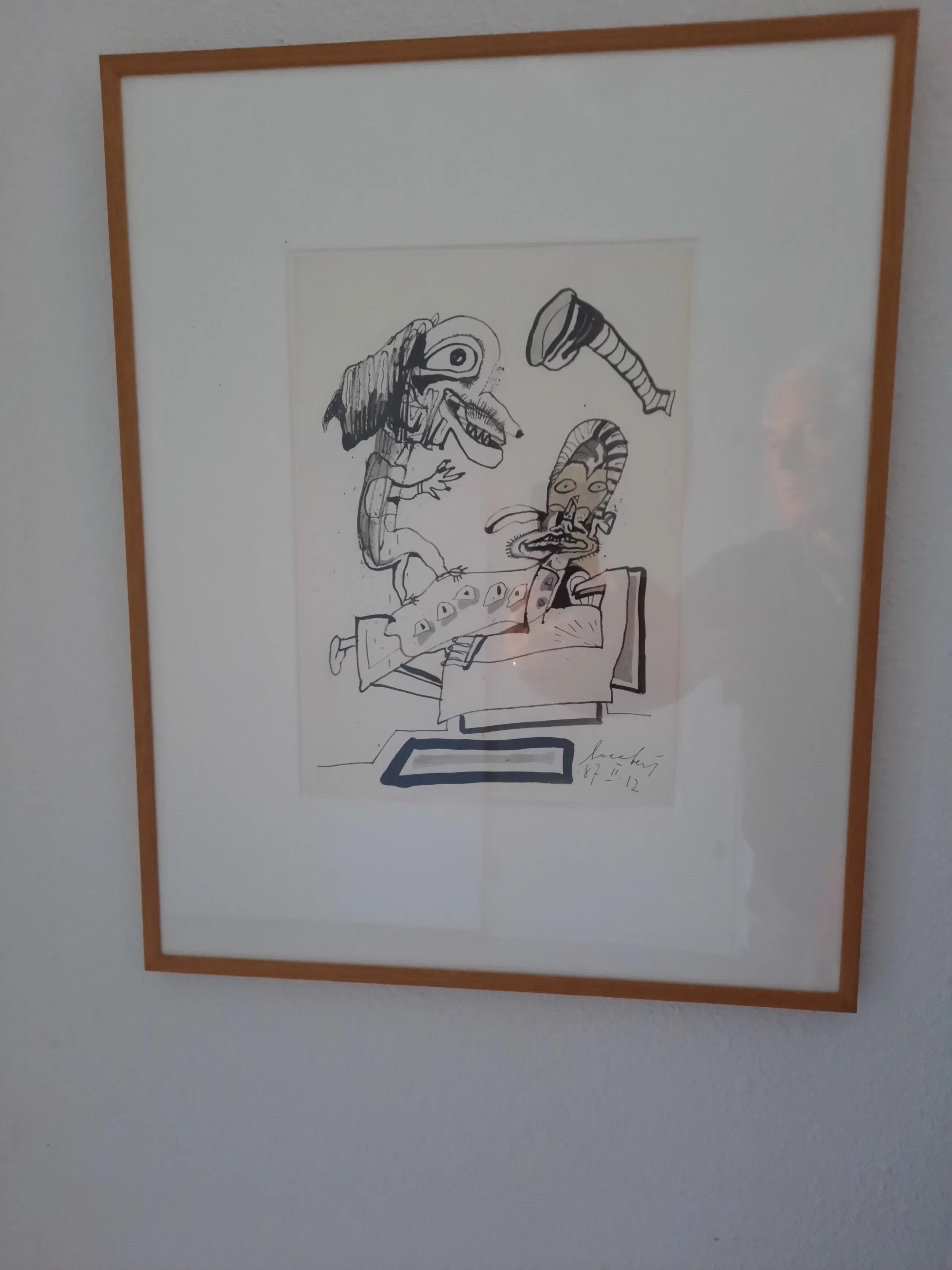 Gemengde techniek ( inkt & collage) van Lucebert. Zeer goede staat. Keurig ingelijst in zwarte lijst . Ooit gekocht bij Nouvelles Images in Den Haag. Een échte Lucebert v.w.b. de voorstelling.