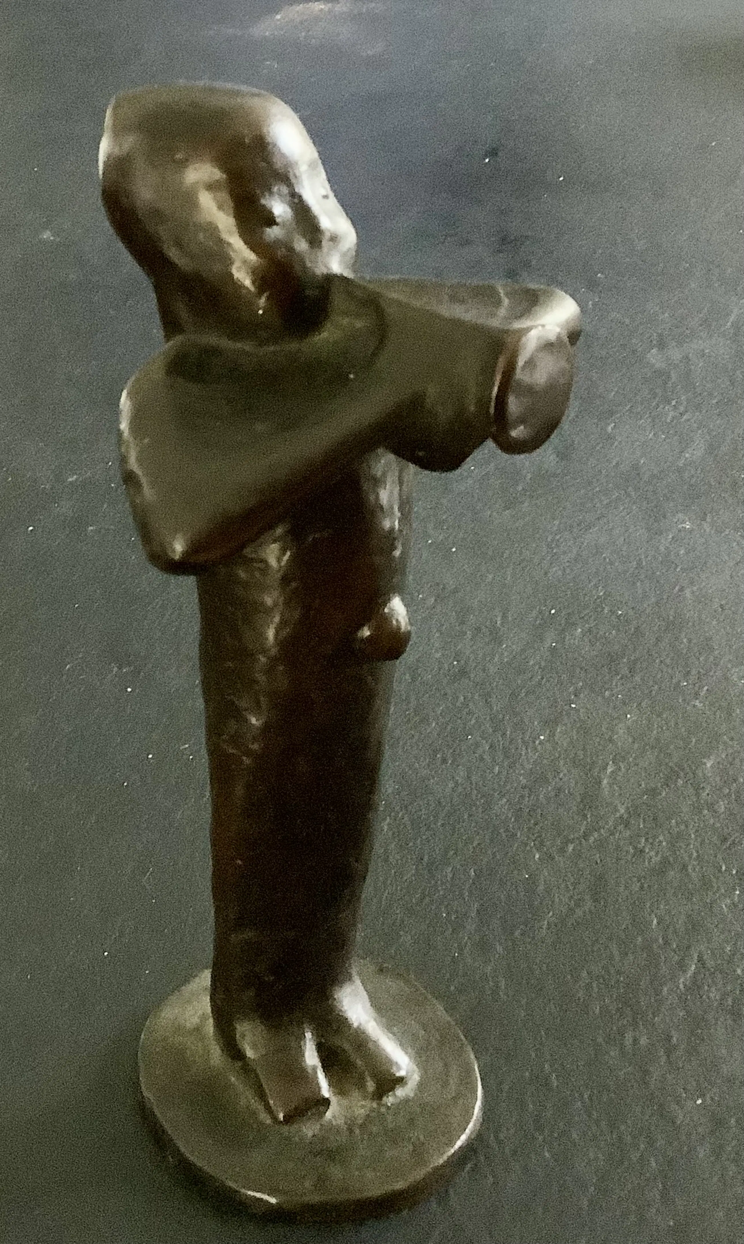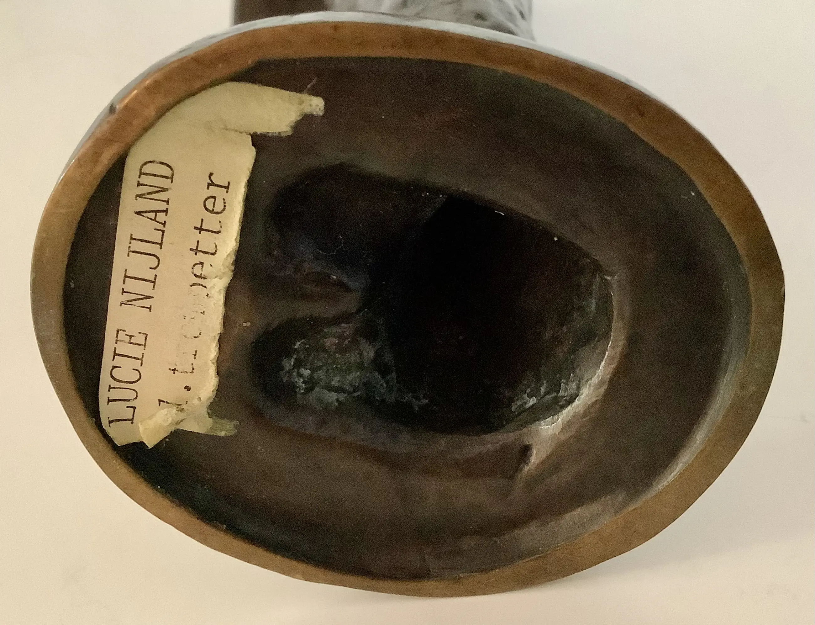 Aantrekkelijk bronzen sculptuur van Lucie Nijland. Mooie huid en kwalitatief gietsel.