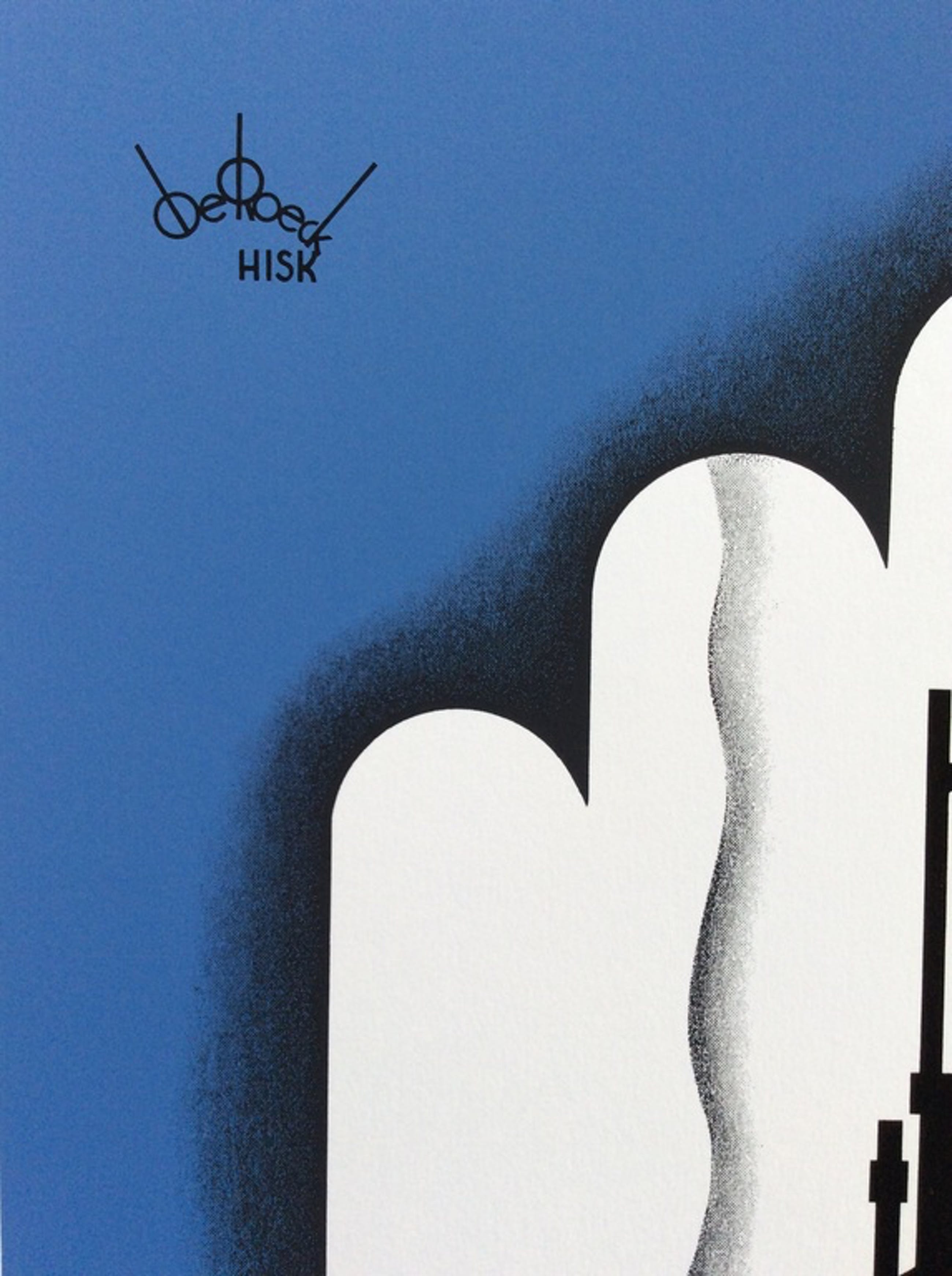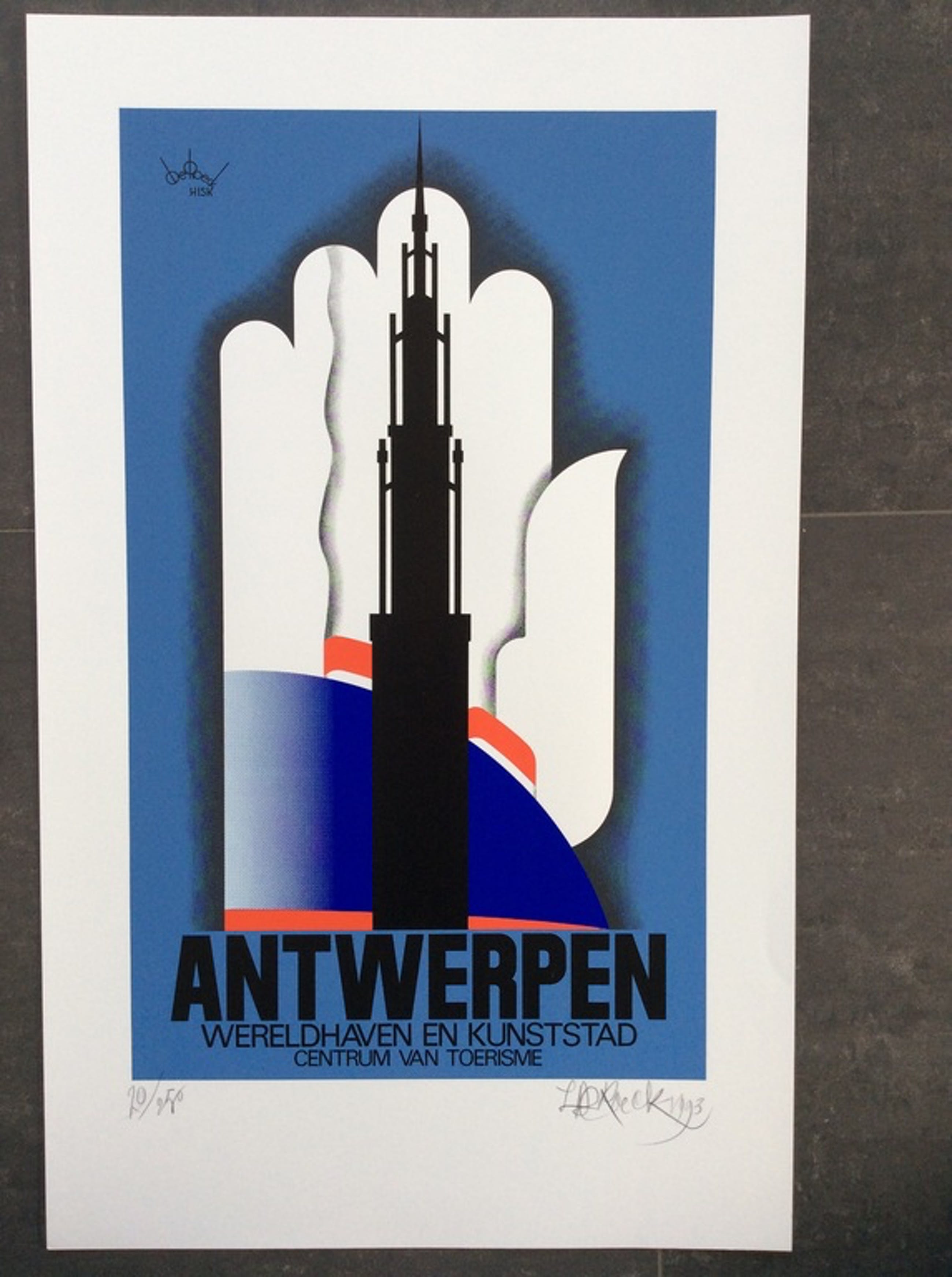 Originele zeefdruk,gesigneerd en genummerd met potlood 20/250.In de druk bovenaan links 'De Roeck' /HISK (Hoger Instituut voor Schone Kunsten).Beperkte genummerde oplage van 250 exemplaren.Gedrukt in 1993.In perfecte nieuwe staat.AFMETINGEN:blad:70 hoog x 43 breed - afbeelding:55 hoog x 33 breed.Dik papier.Niet ingelijst