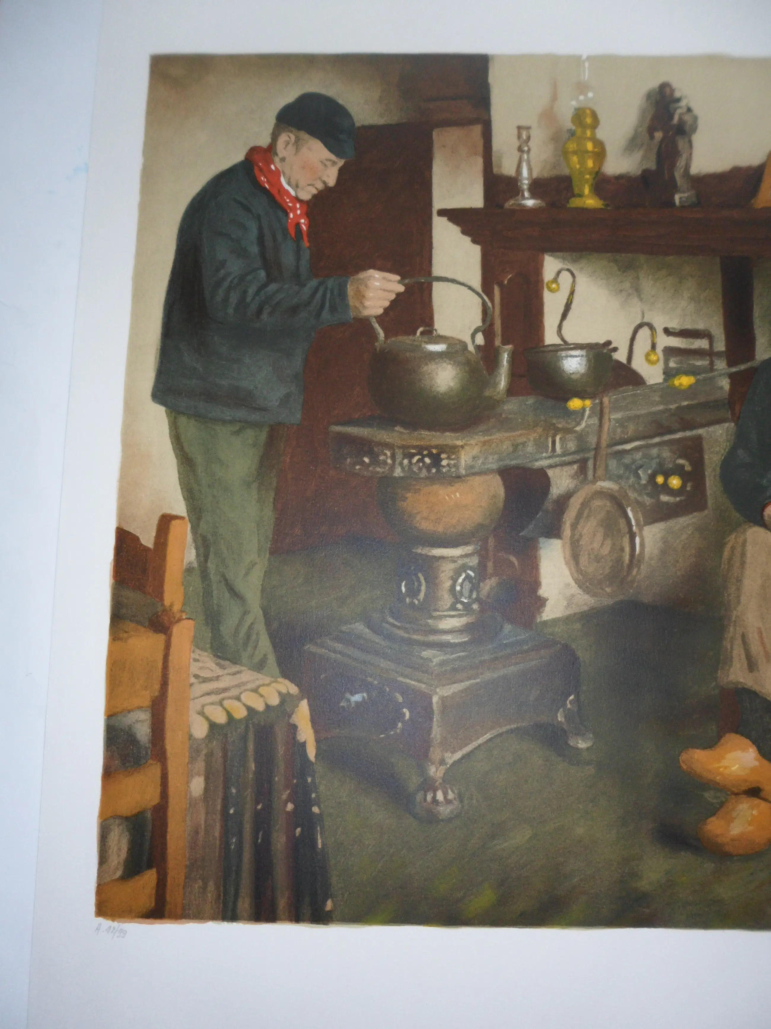 Lucien Van de Velde - Litho, Titel, "Interieur te Bokrijk ".