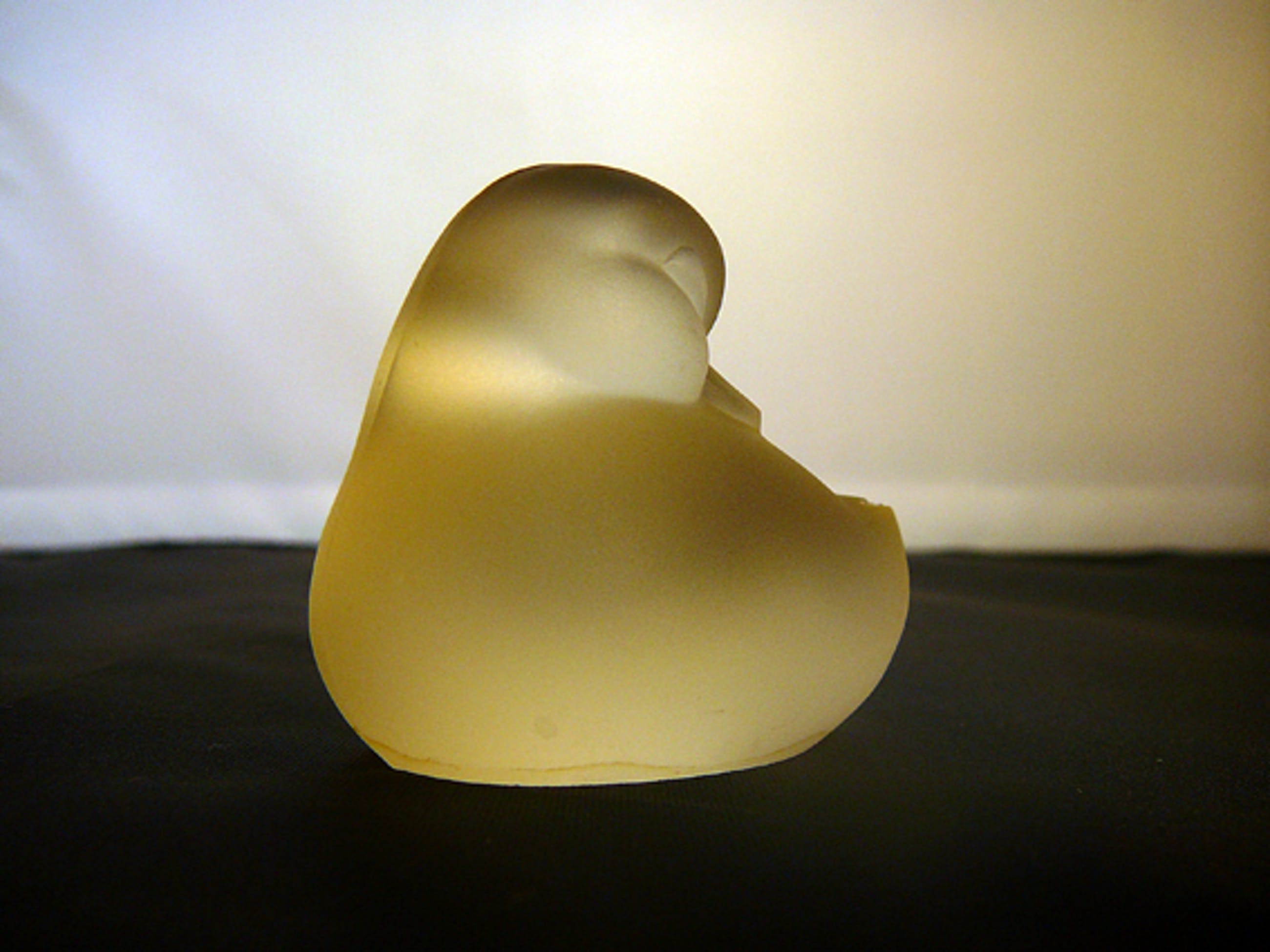 Gematteerd geperst glazen eendje uit de jaren '40 van de vorige eeuw. In prima conditie behoudens een klein chipje aan de punt van de staart.