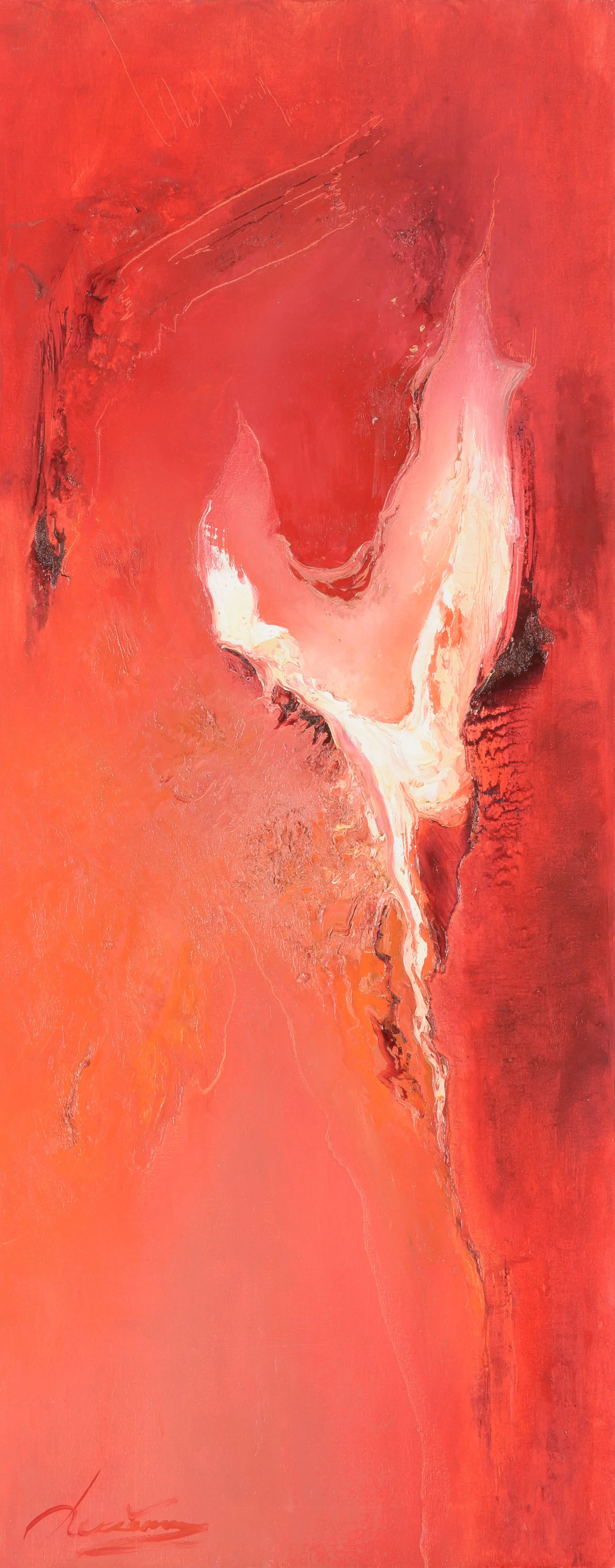 De grootsheid van de natuur en het universum vormen haar belangrijkste inspiratiebronnen. Ze vertaalt niet wat ze ziet, maar wat ze voelt: haar werk is een intuïtieve reflectie in kleur, structuur en beweging. Subtiele details en krachtige elementen gaan daarbij hand in hand.