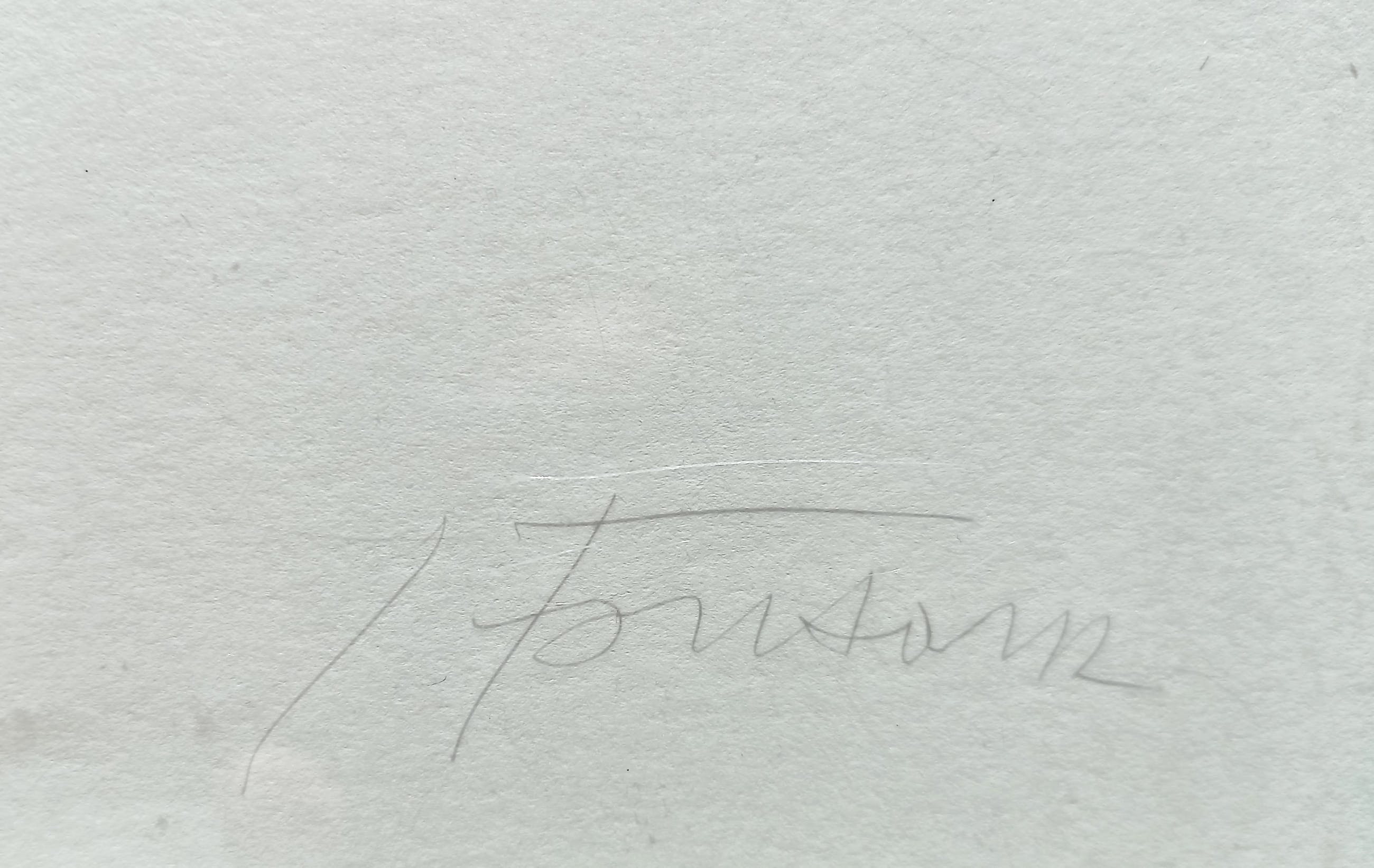 Internationaal wordt dit werk de laatste jaren regelmatig boven de 5000 euro geveild, in 2018 werd het zelfs voor meer dan 20.000 euro geveild bij Christie’s. Een exemplaar van deze kwaliteit vind je bijna niet meer en zal in de loop der jaren alleen maar meer waard worden (Centrale banken jagen de inflatie moedwillig aan en Fontana’s kunnen niet bijgedrukt worden).
