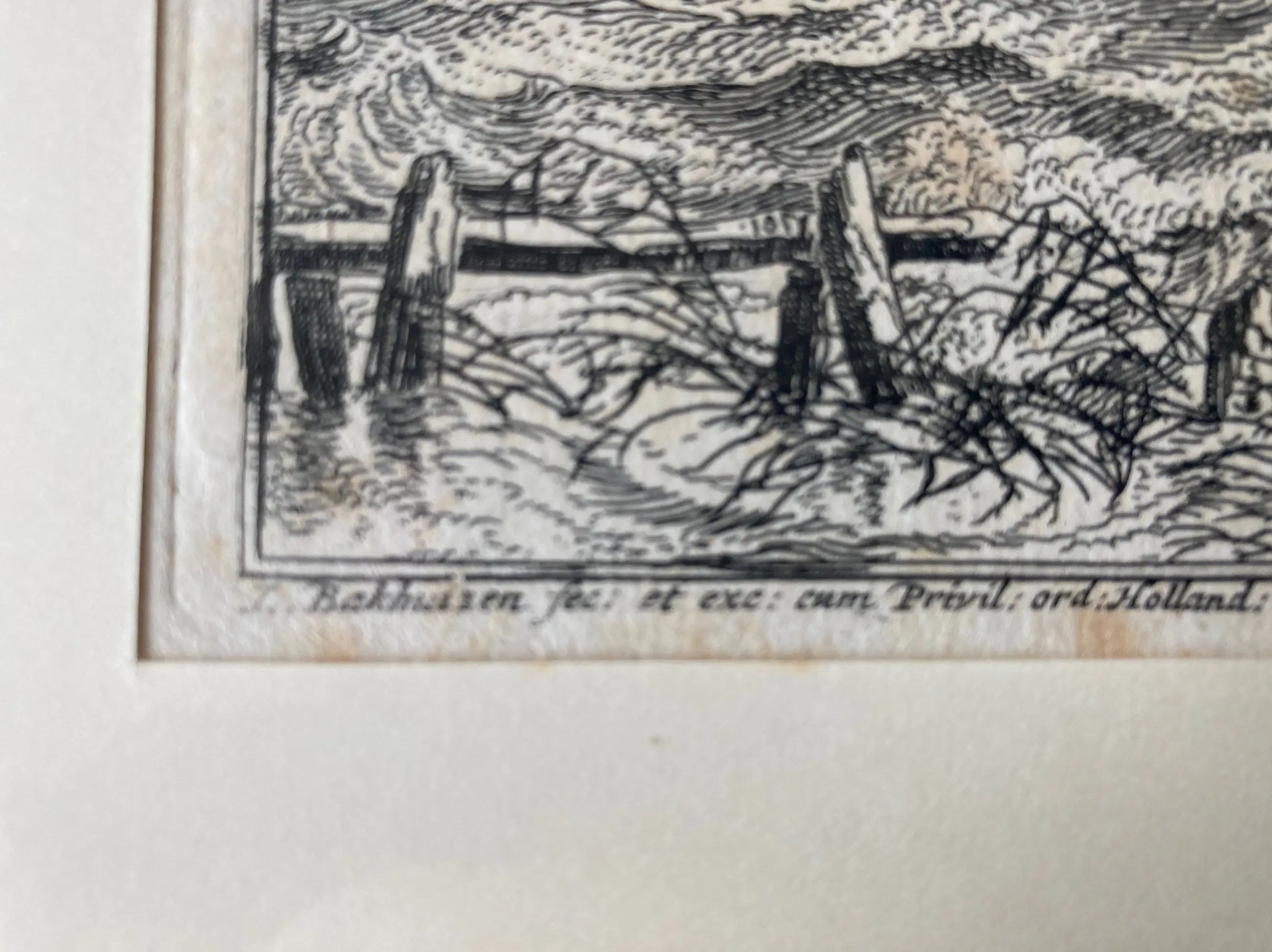 Originele ets van Ludolf Bakhuizen. Nr 18 van 250. Eenzelfde exemplaar bevindt zich in het depot van Museum Boijmans van Beuningen.