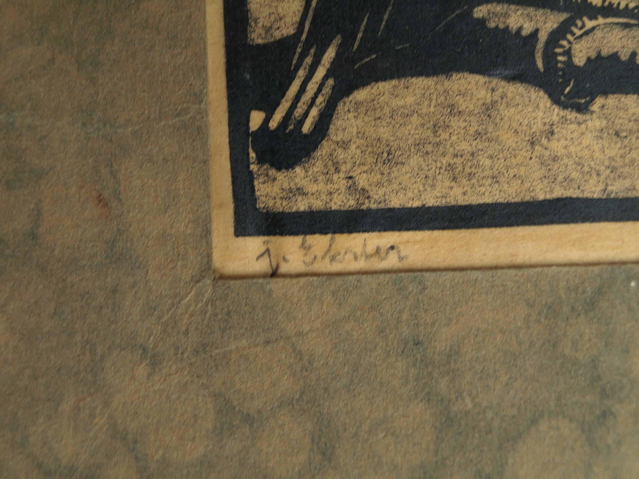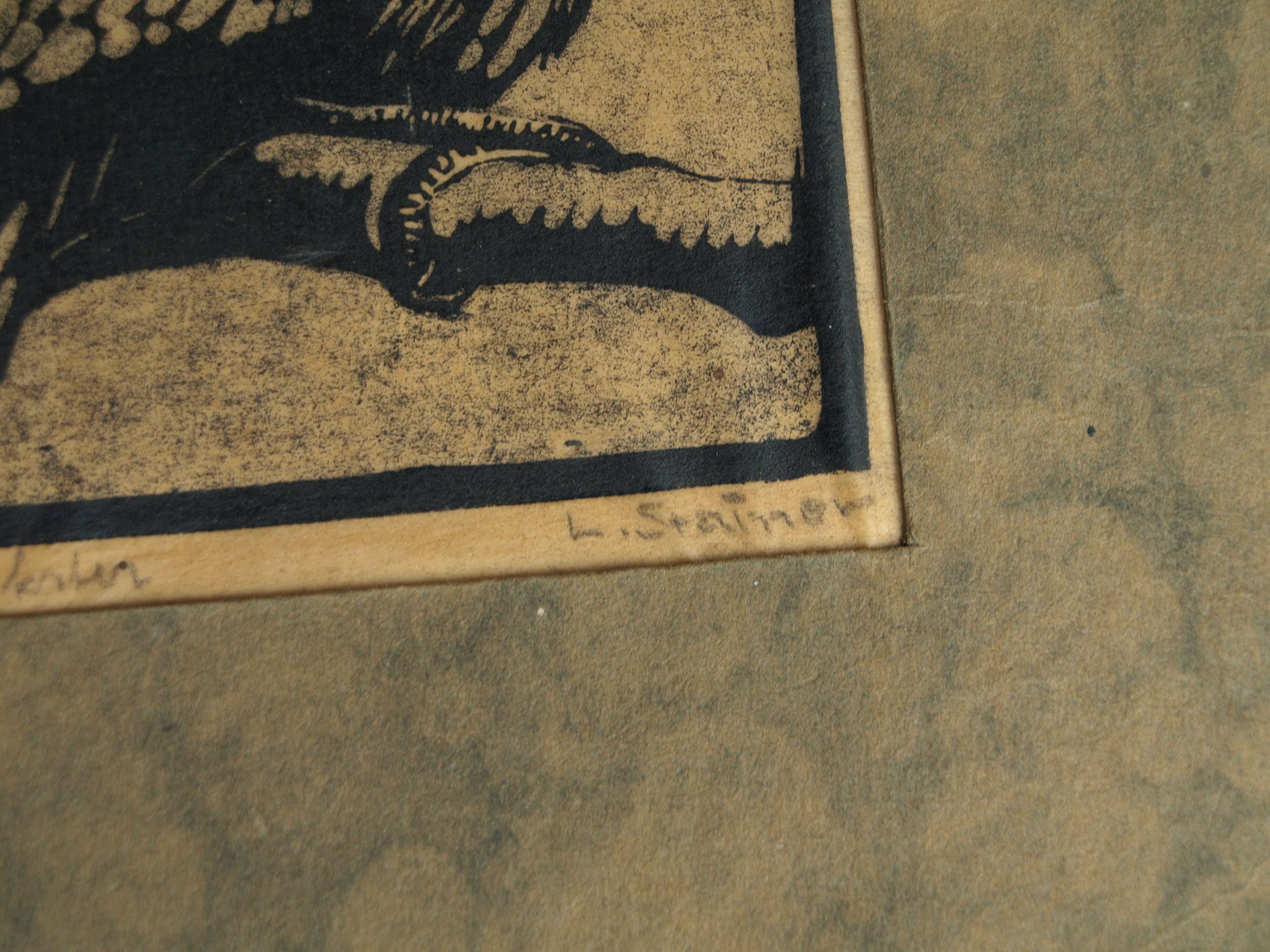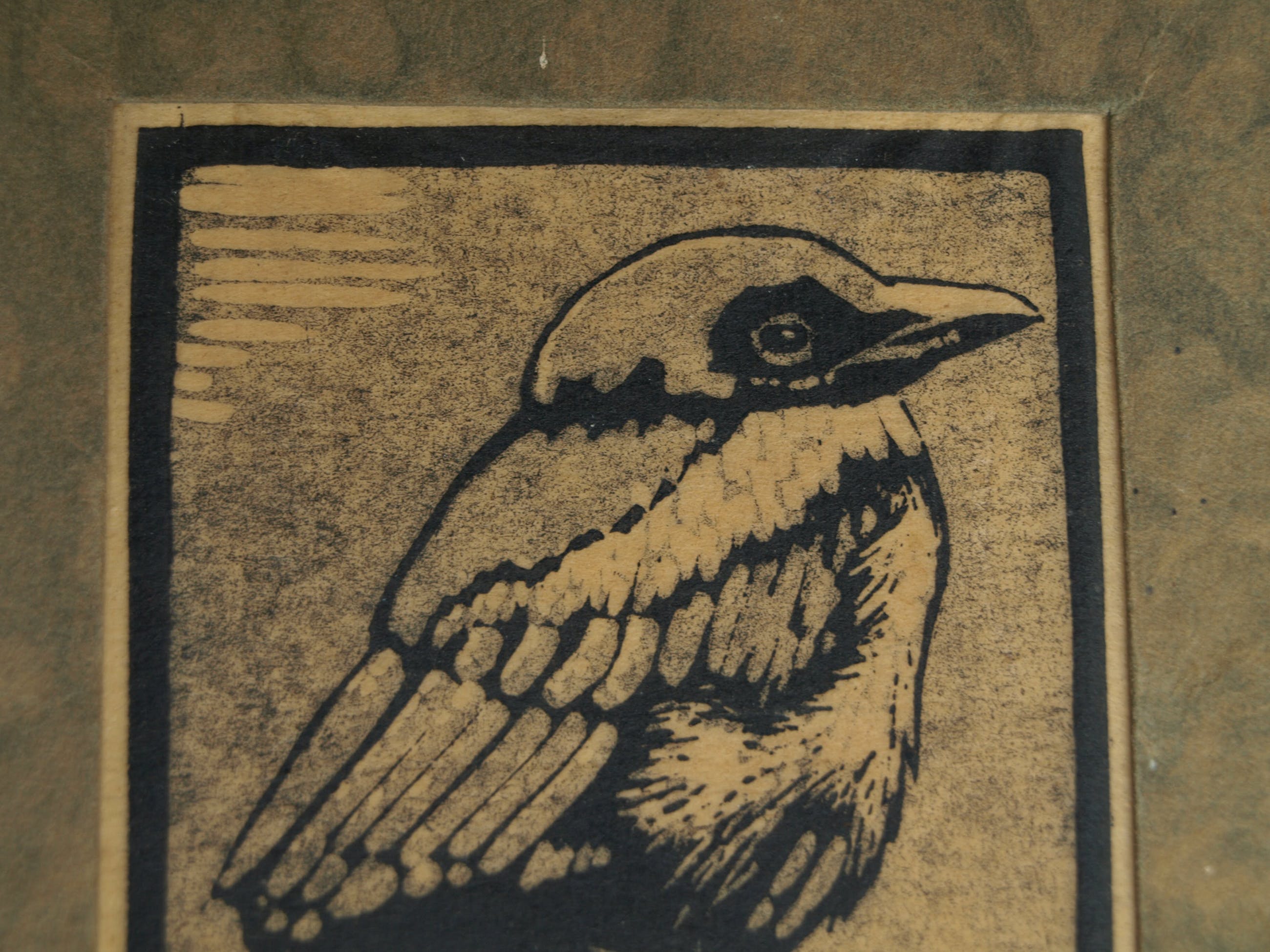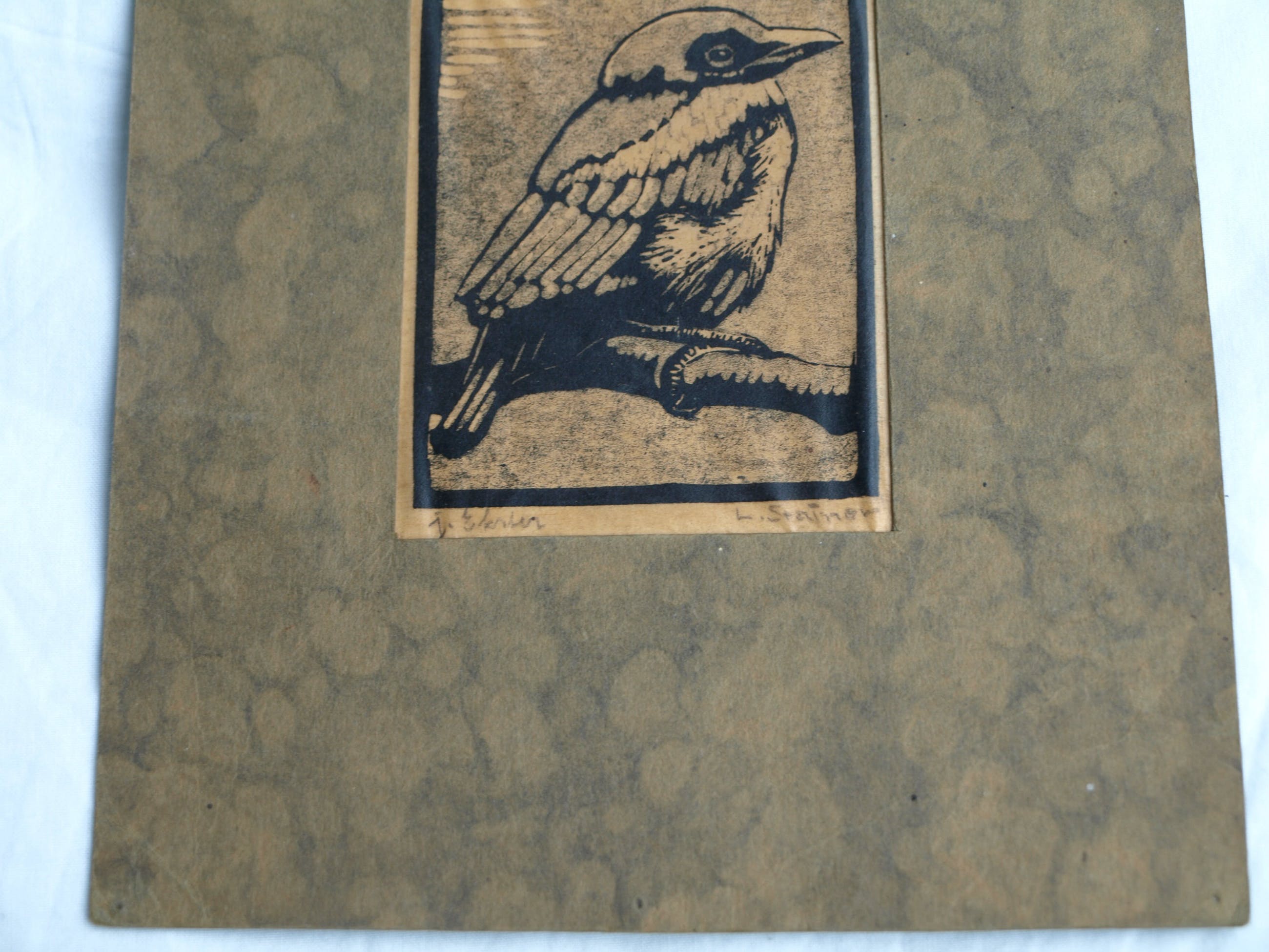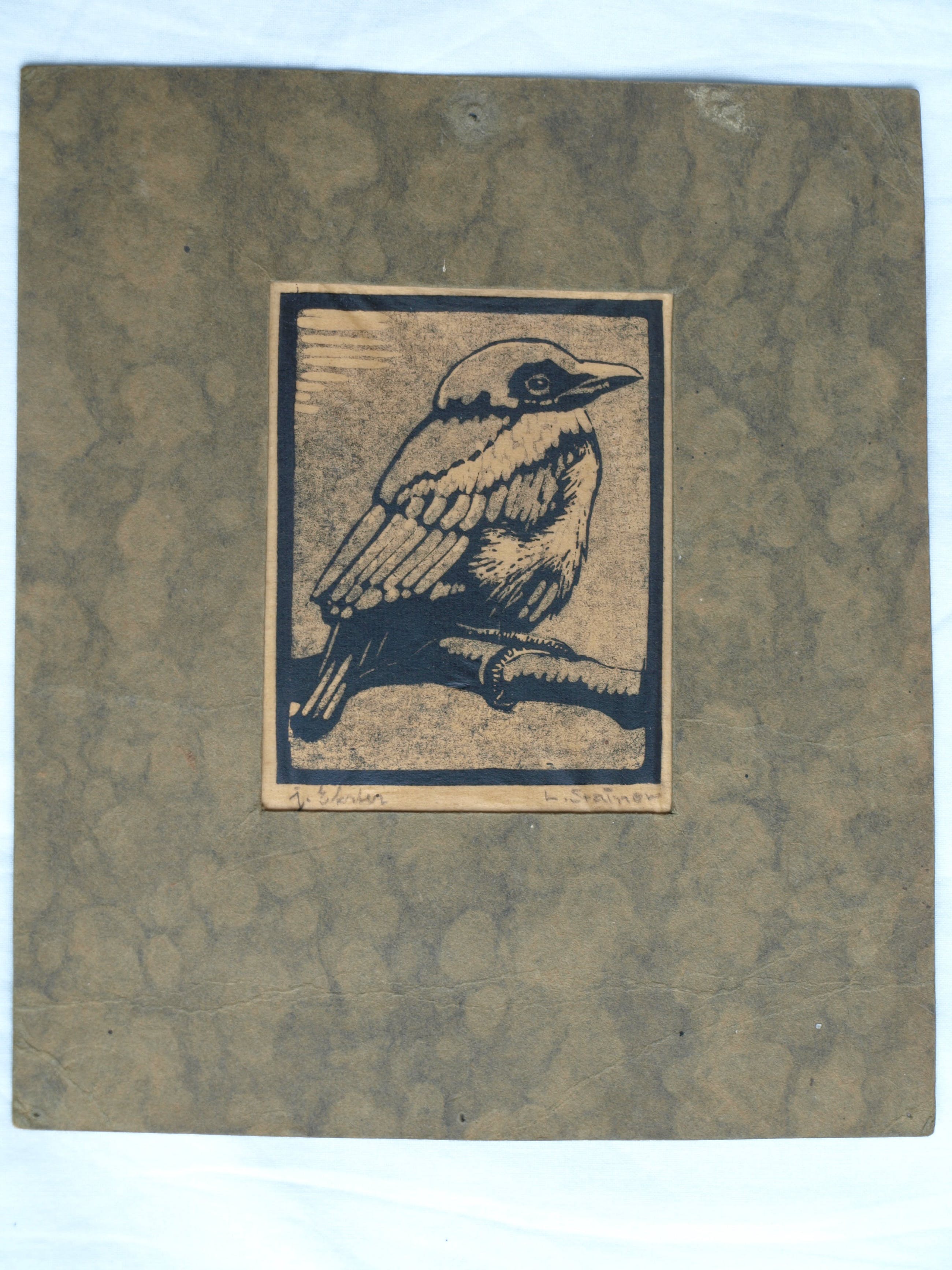 Een ets van de Nederlandse kunstenaar Ludwig Stainer (1903) met een voorstelling van een jonge ekster. Afgedrukt op dun, Japans, papier.