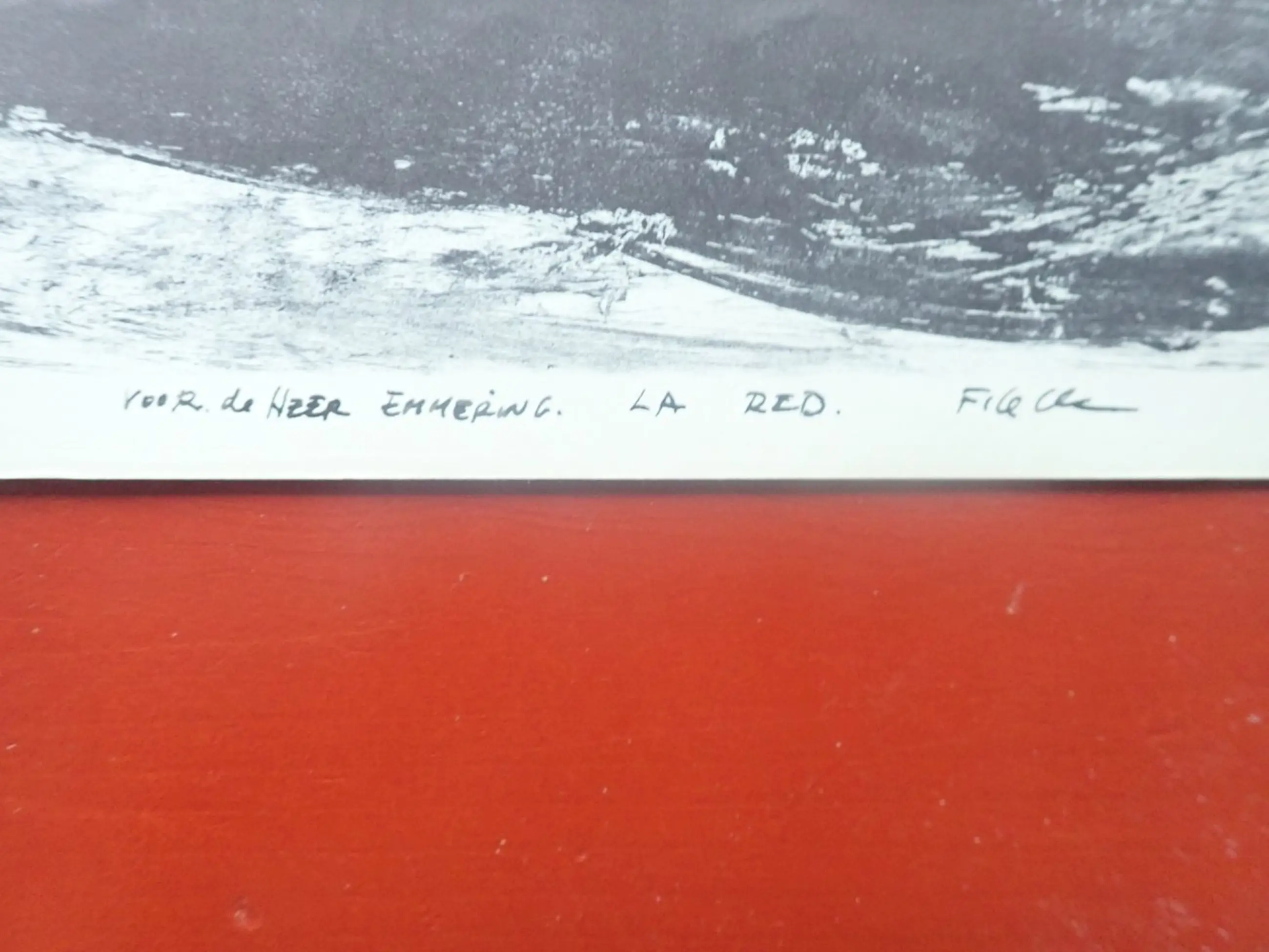 Het is met de hand gesigneerd en er staat een tekst op: "Voor de heer Emmering L.A. Red"