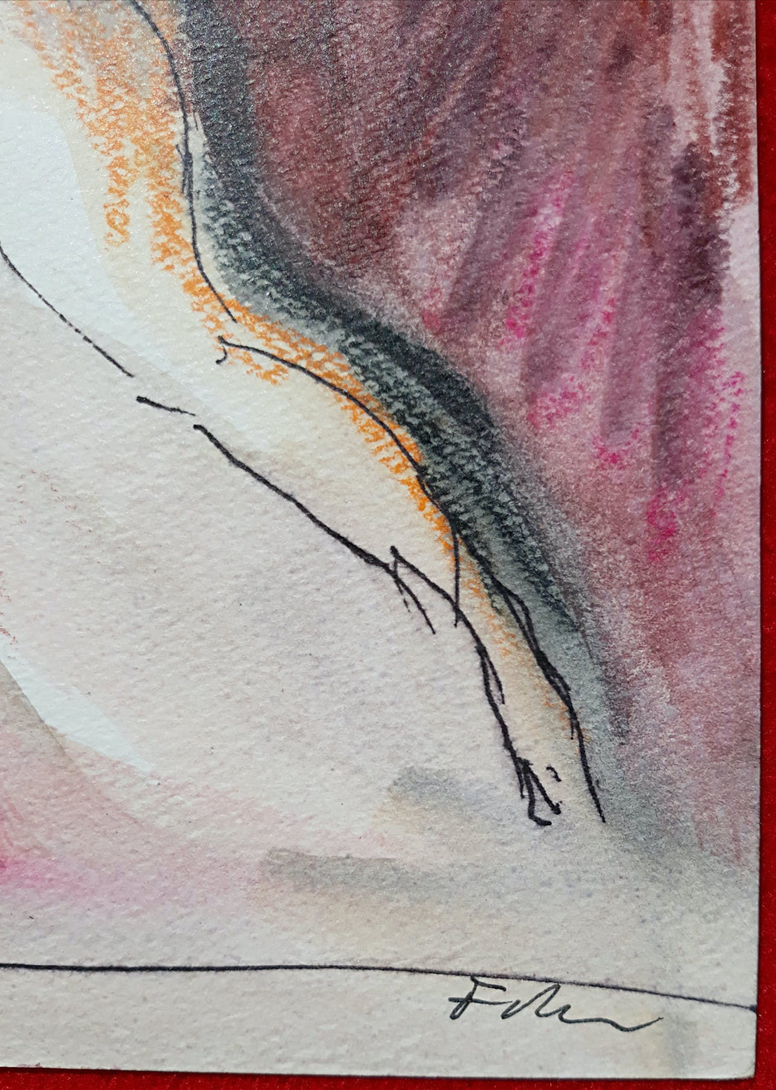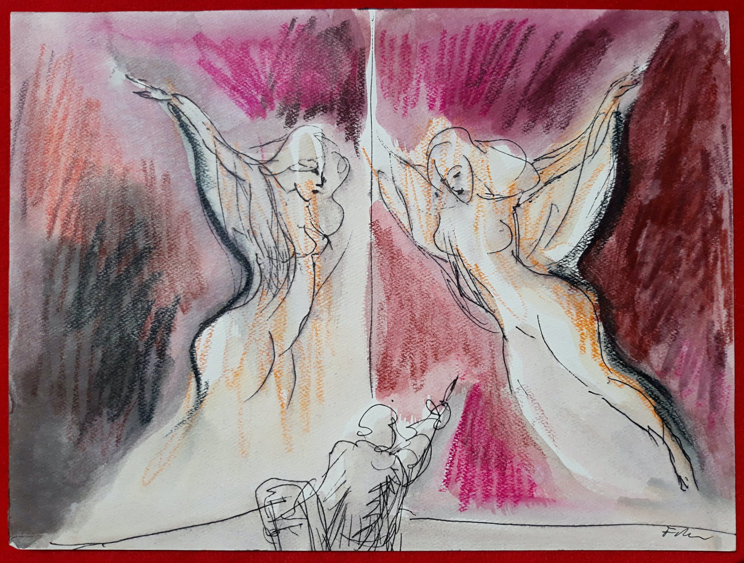 Zeer mooi, karakteristiek werk van Luis Filcer. Gemengde techniek (pastelkrijt, pen, aquarelverf) op papier, gesigneerd rechtsonder en in verso voorzien van titel en een prijs in ouderwets harde guldens (fl. 2800,-). In zeer goede conditie.