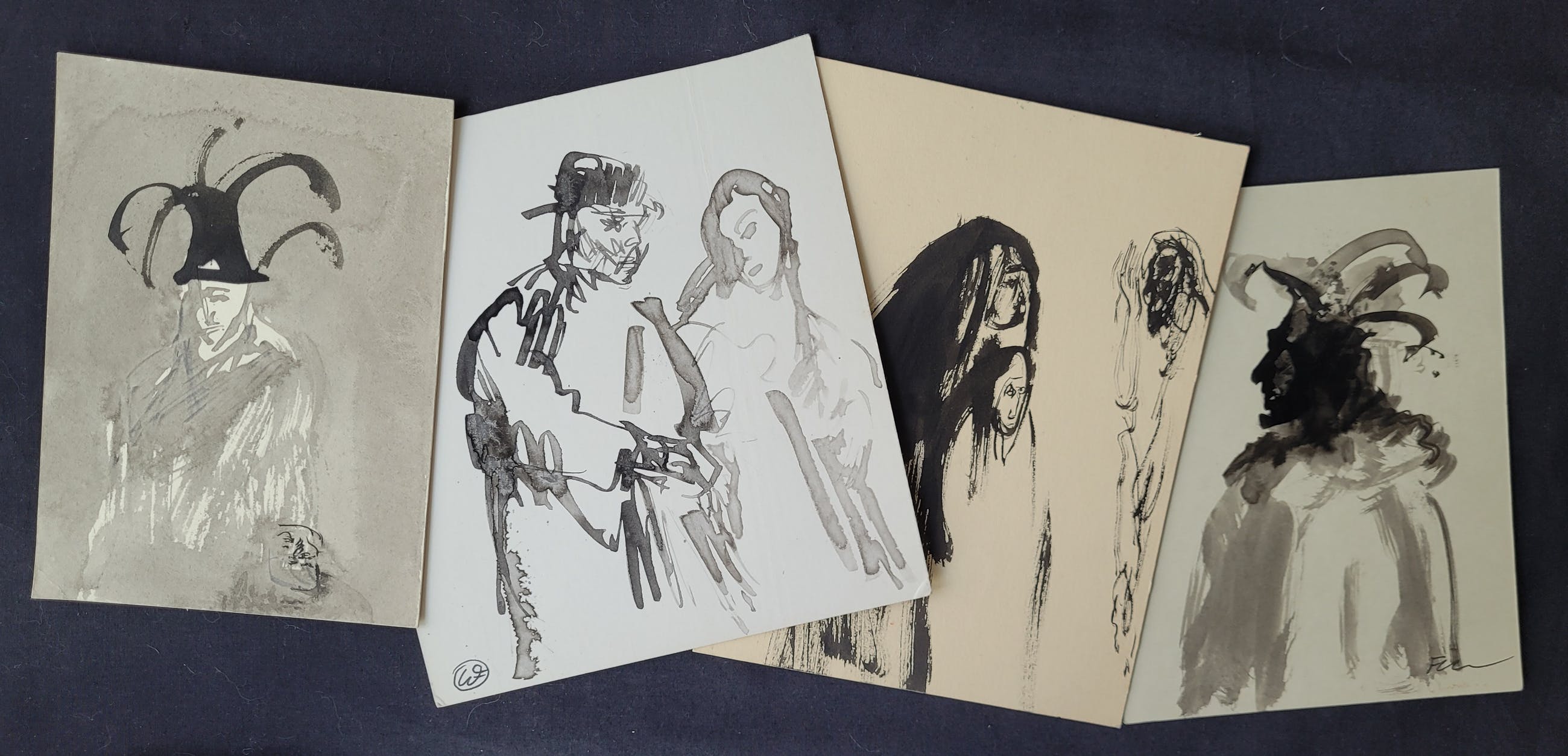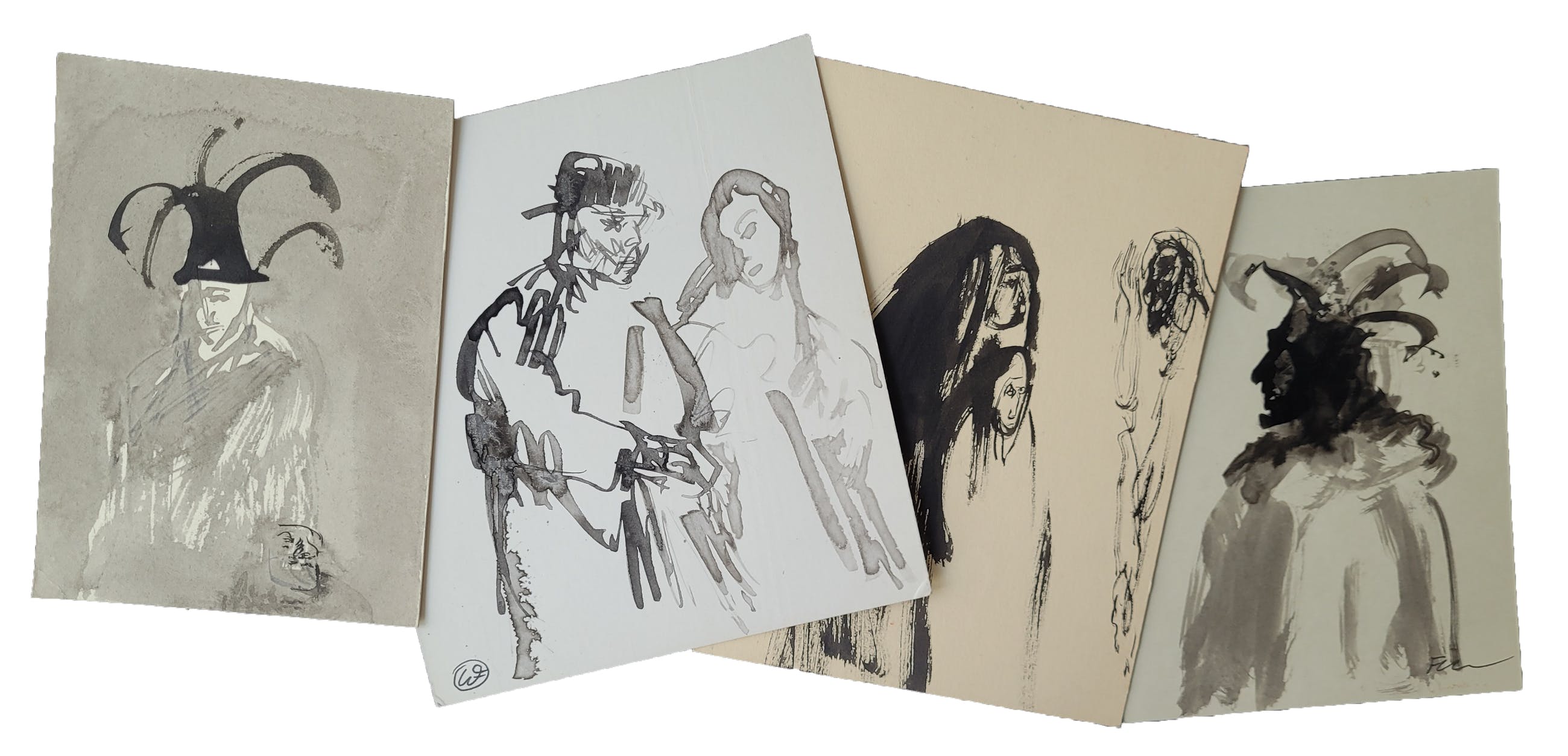 | De tekeningen zijn gemaakt op restjes papier of karton. Hierdoor kunnen de tekeningen kleine beschadigingen hebben aan de randen en hoeken (kleine scheurtjes of ezelsoortjes), of hebben ze schade (door bijvoorbeeld plakband), vlekjes of kreukeltjes. Zie hiervoor de foto. | |||||||||||