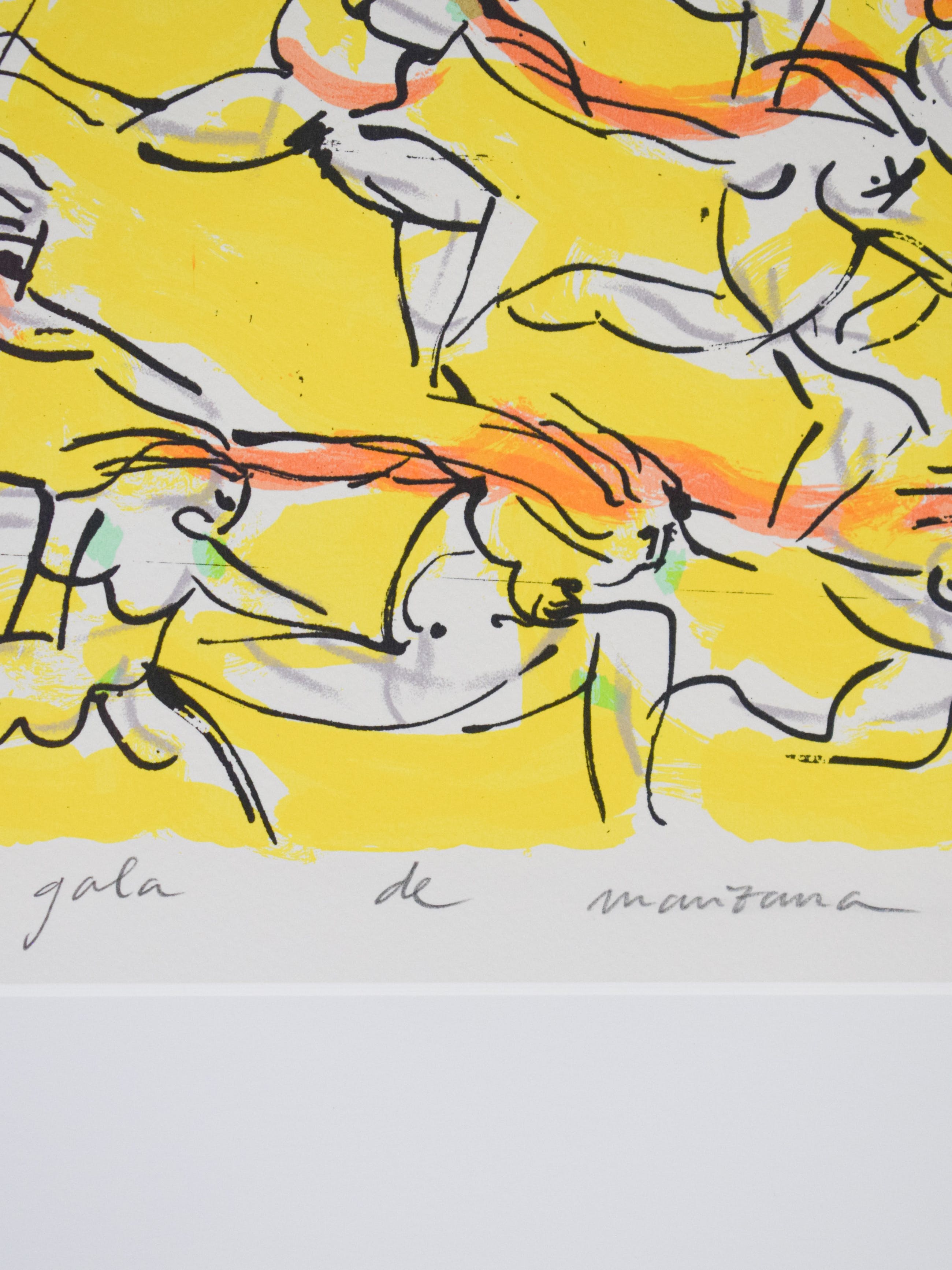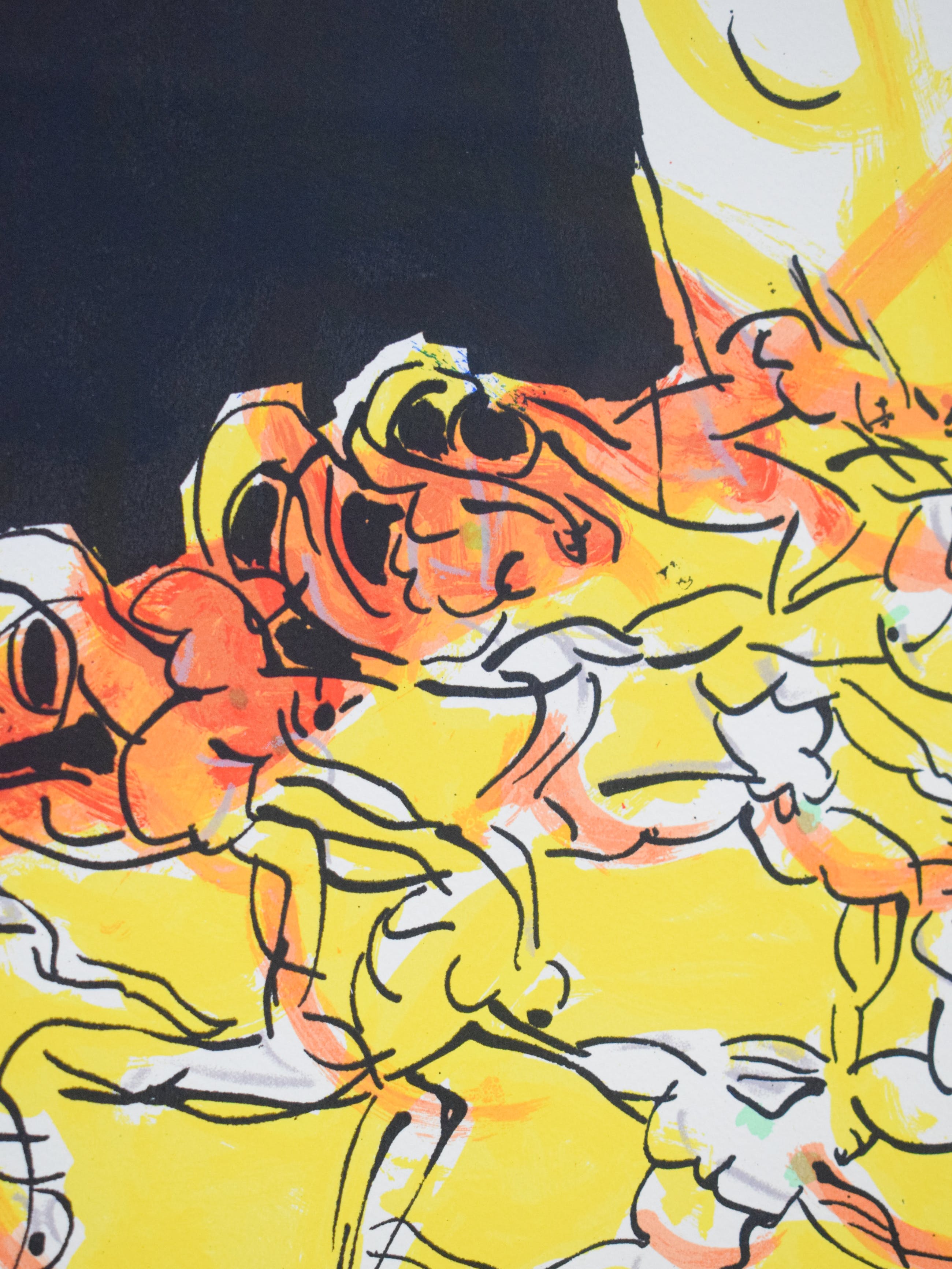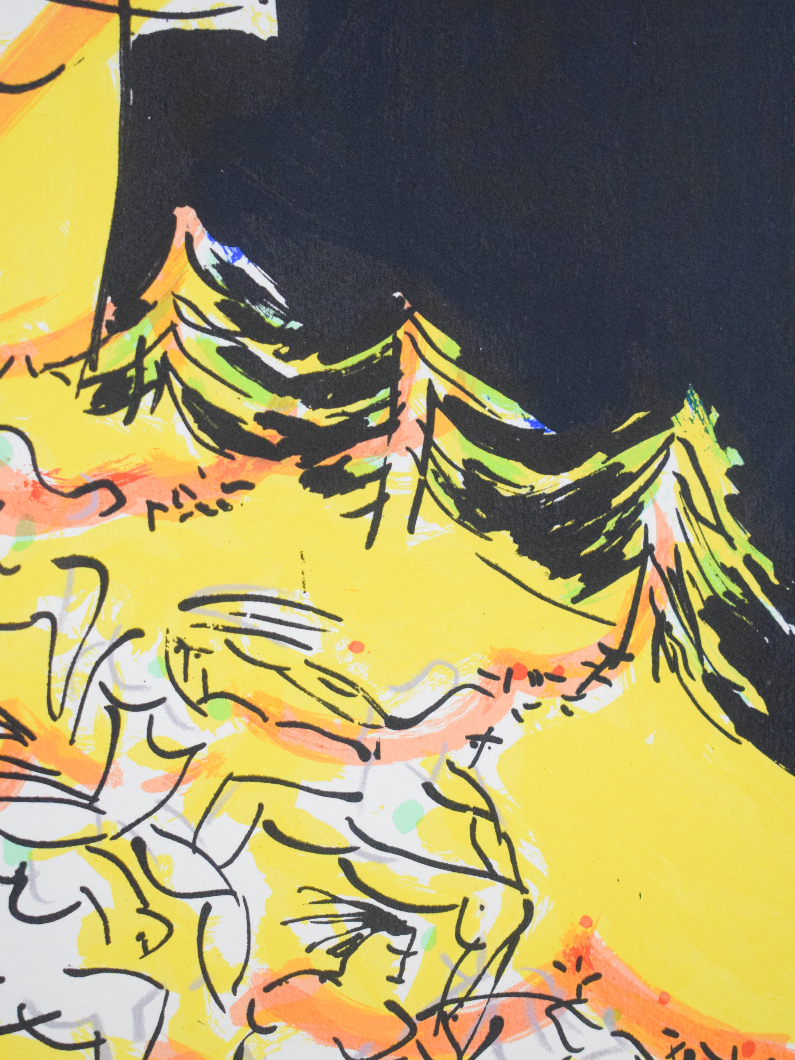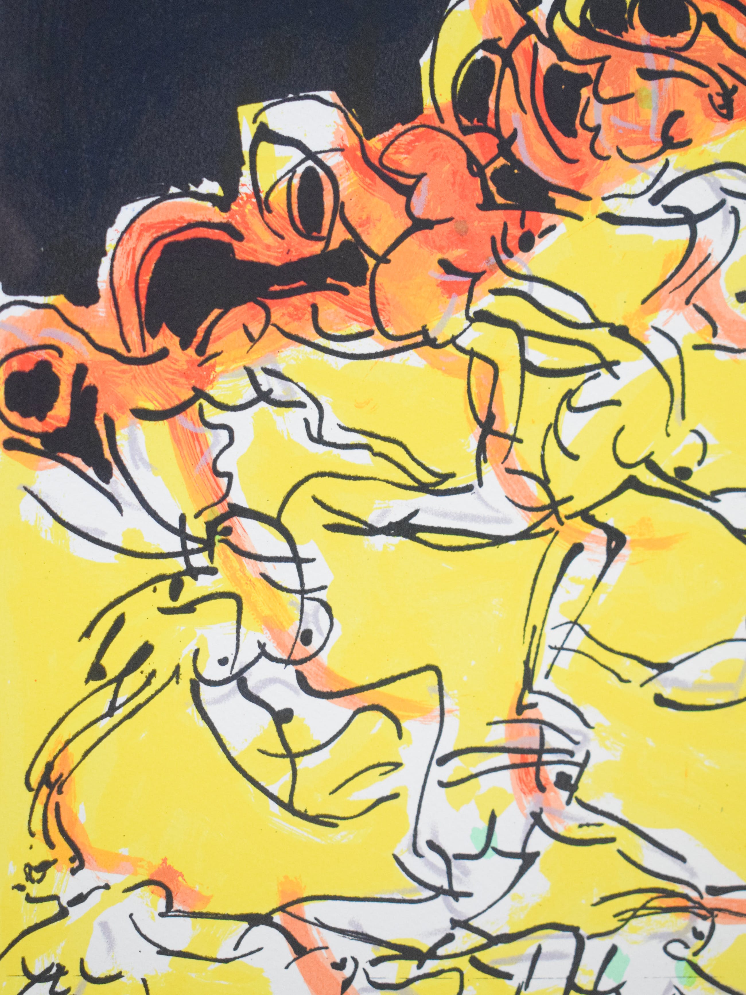 Aangezien het werk uit een bedrijfscollectie komt, kan de lijst wat gebruikssporen overeenkomstig met de leeftijd tonen, deze zijn eenvoudig te verwijderen door de houten lijst licht op te schuren