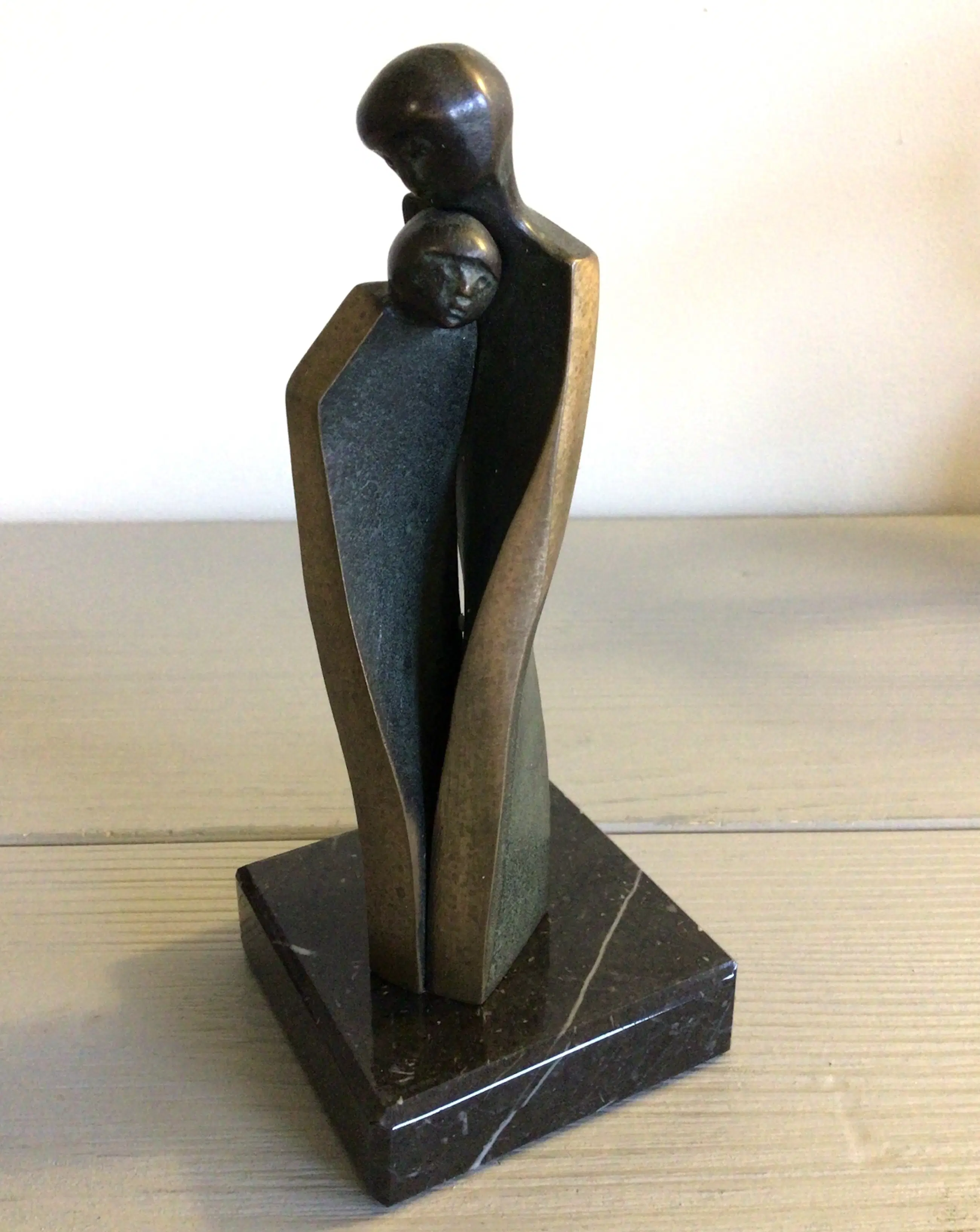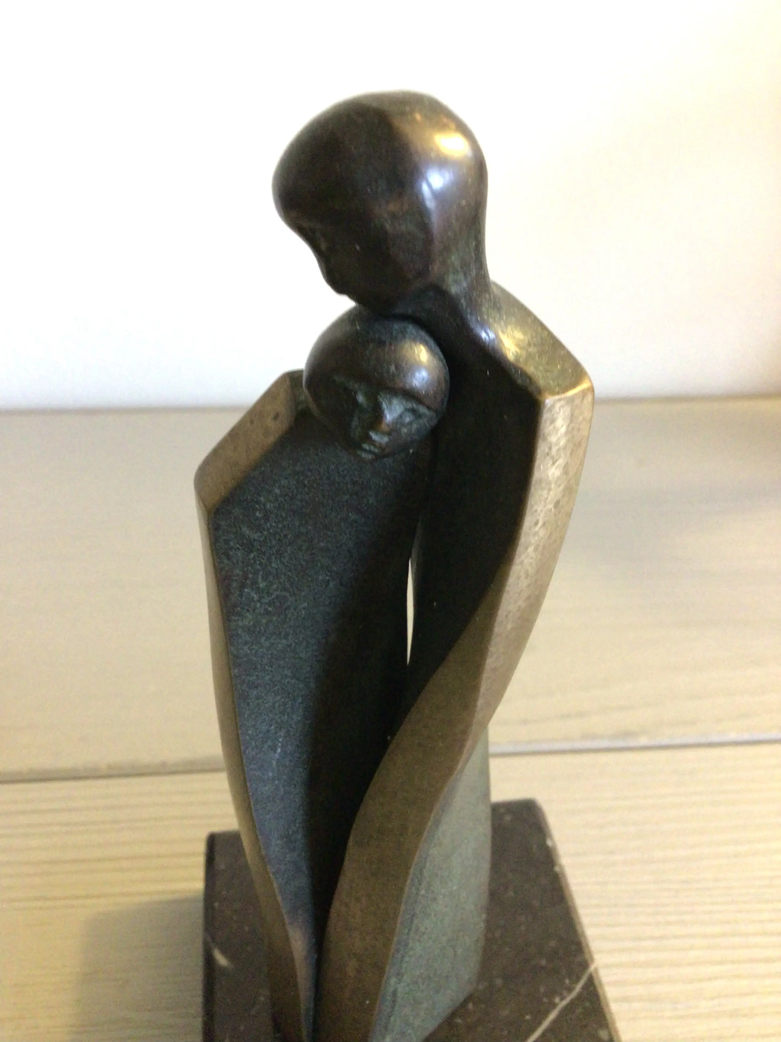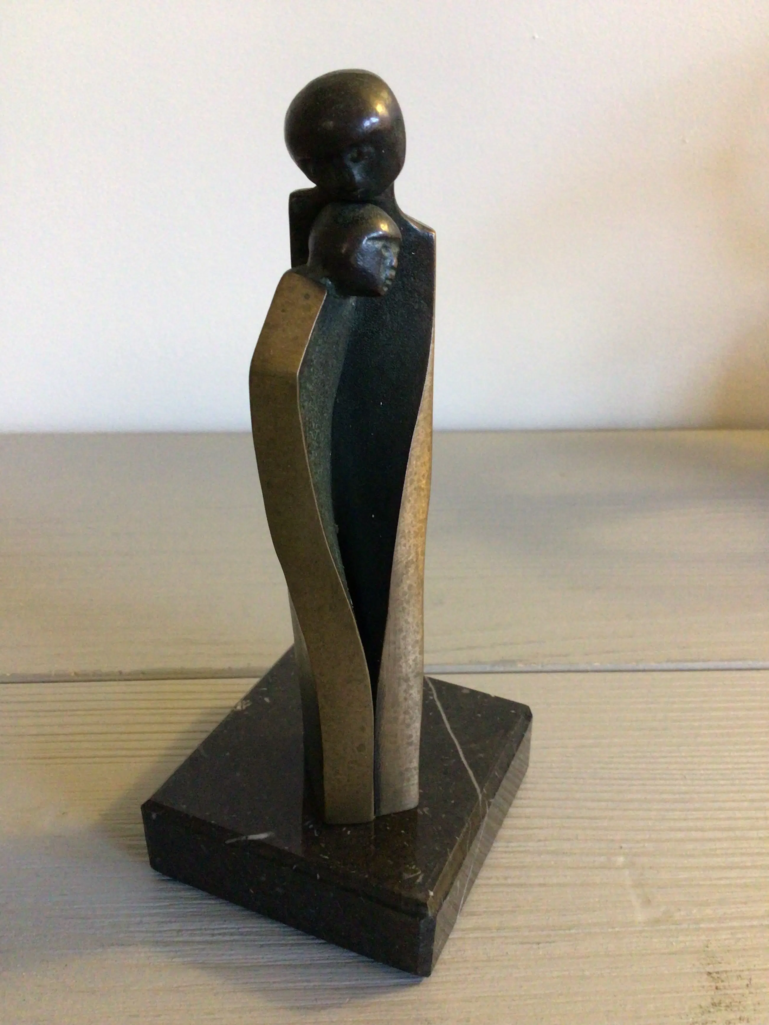 Zeer fraai vormgegeven vertederend sculptuur van twee geliefden . Titel “ Geborgenheid “ Dit schitterende sculptuur is afgewerkt met fraaie goudkleurige belijningen, zoals we die kennen van haar prachtige werk. Materiaal: brons op marmeren sokkel Kunstenares: Luise Kott - Gartner Het beeld staat los op de sokkel zodat u zelf kunt bepalen of u deze wilt gaan gebruiken Het beeld verkeert in zeer goede staat en wordt zorgvuldig verpakt verzonden